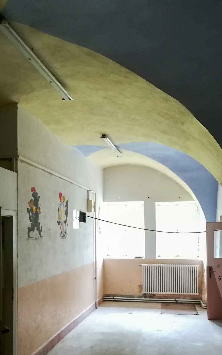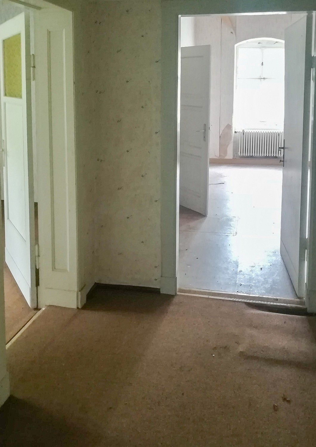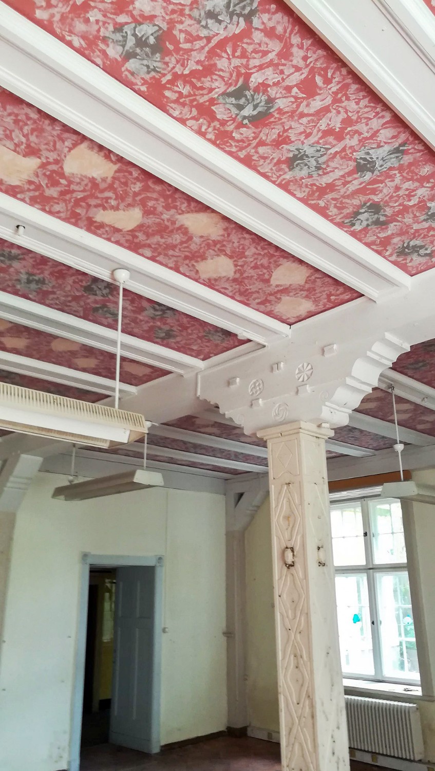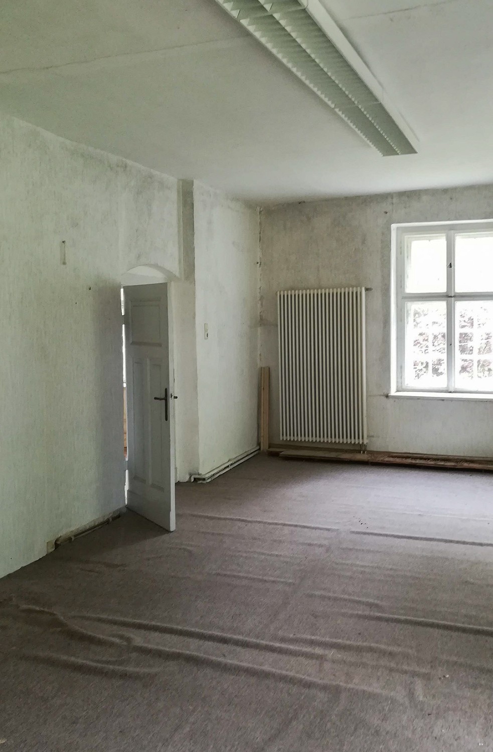 Fino al 2002, il maniero è stato utilizzato come asilo e centro doposcuola; gli interni presentano quindi uno stato di finitura semplice e ormai datato. Per un utilizzo futuro, sarà necessario pianificare lavori di ristrutturazione e modernizzazione estesi. I dettagli architettonici originali, come la scala, i pannelli in legno, le porte e i soffitti in stucco, offrono una solida base per un restauro rispettoso della sostanza storica.