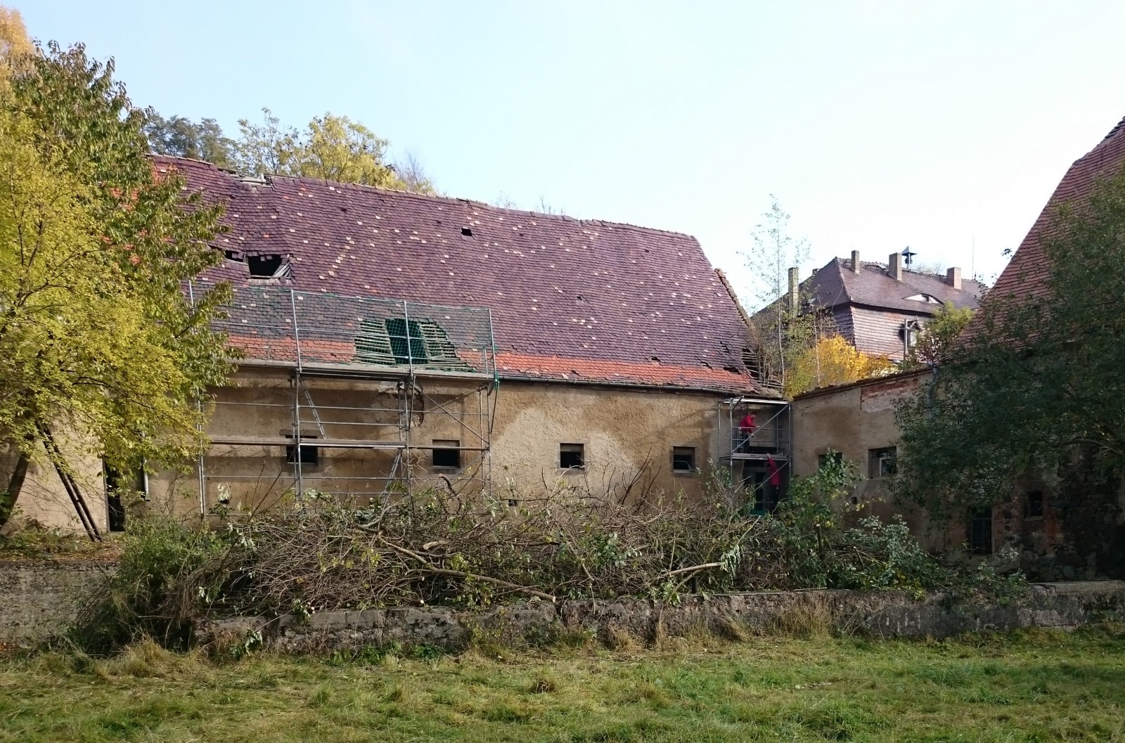 La proprietà comprende inoltre circa 5.000 m² di prato con frutteto tradizionale, così come le antiche stalle (circa 230 m²) con soffitti a volta sostenuti da colonne in granito e un grande solaio. Negli ultimi anni sono stati eseguiti lavori di consolidamento sull’edificio delle stalle: tetto sistemato, travi rinnovate e rinforzate, pavimentazione riparata.
