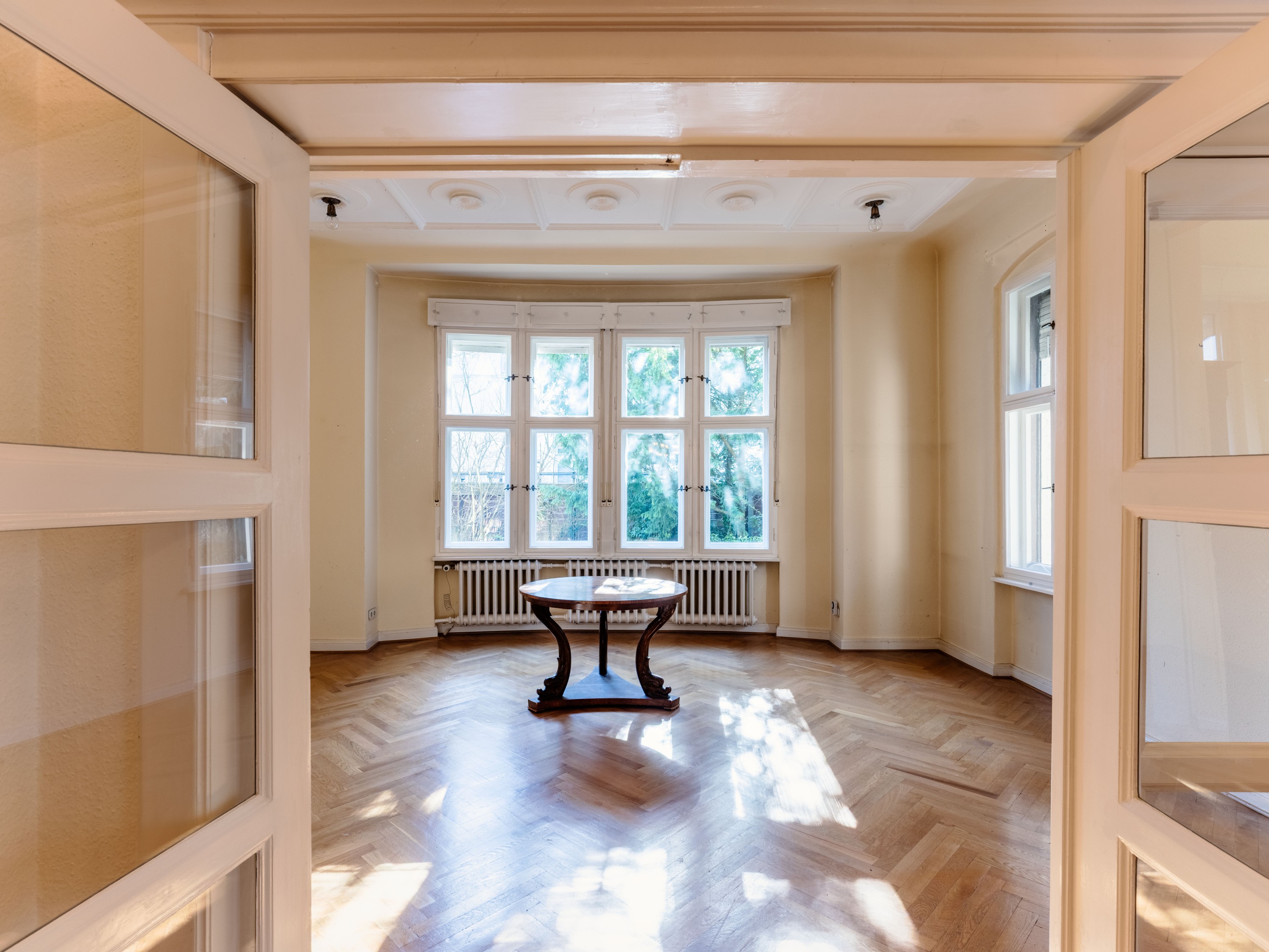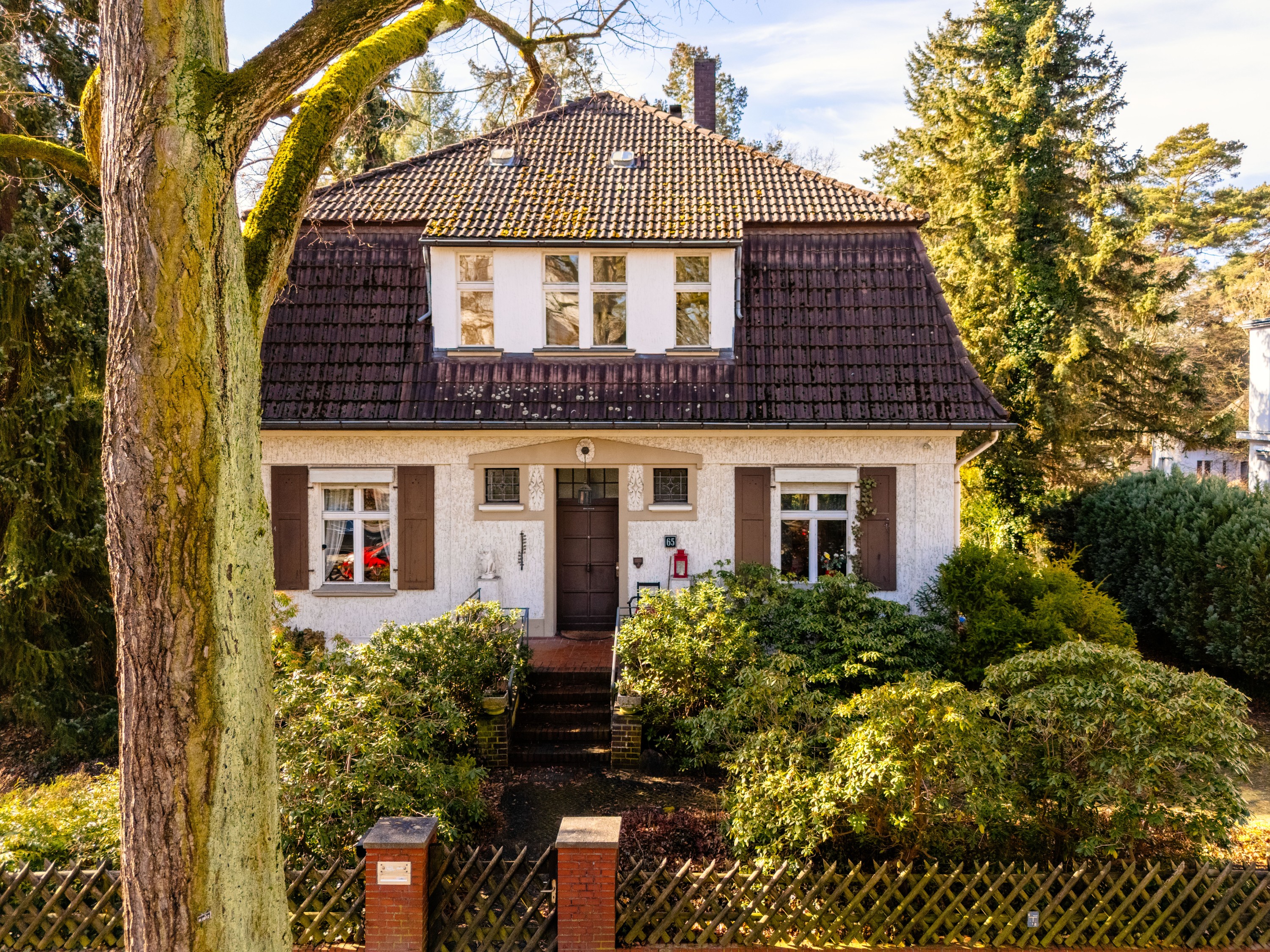 Situata in una delle zone residenziali più ricercate del sud-ovest di Berlino, questa villa classica del 1922 si trova su un ampio terreno esposto a sud-ovest di circa 1.396 m².La casa colpisce per la sua tipica architettura da villa degli anni ’20, le generose proporzioni degli ambienti e gli alti soffitti con dettagli originali in stucco.La villa offre circa 225 m² di superficie abitabile su due piani completi, con ulteriori possibilità di sviluppo nel sottotetto e nel seminterrato.