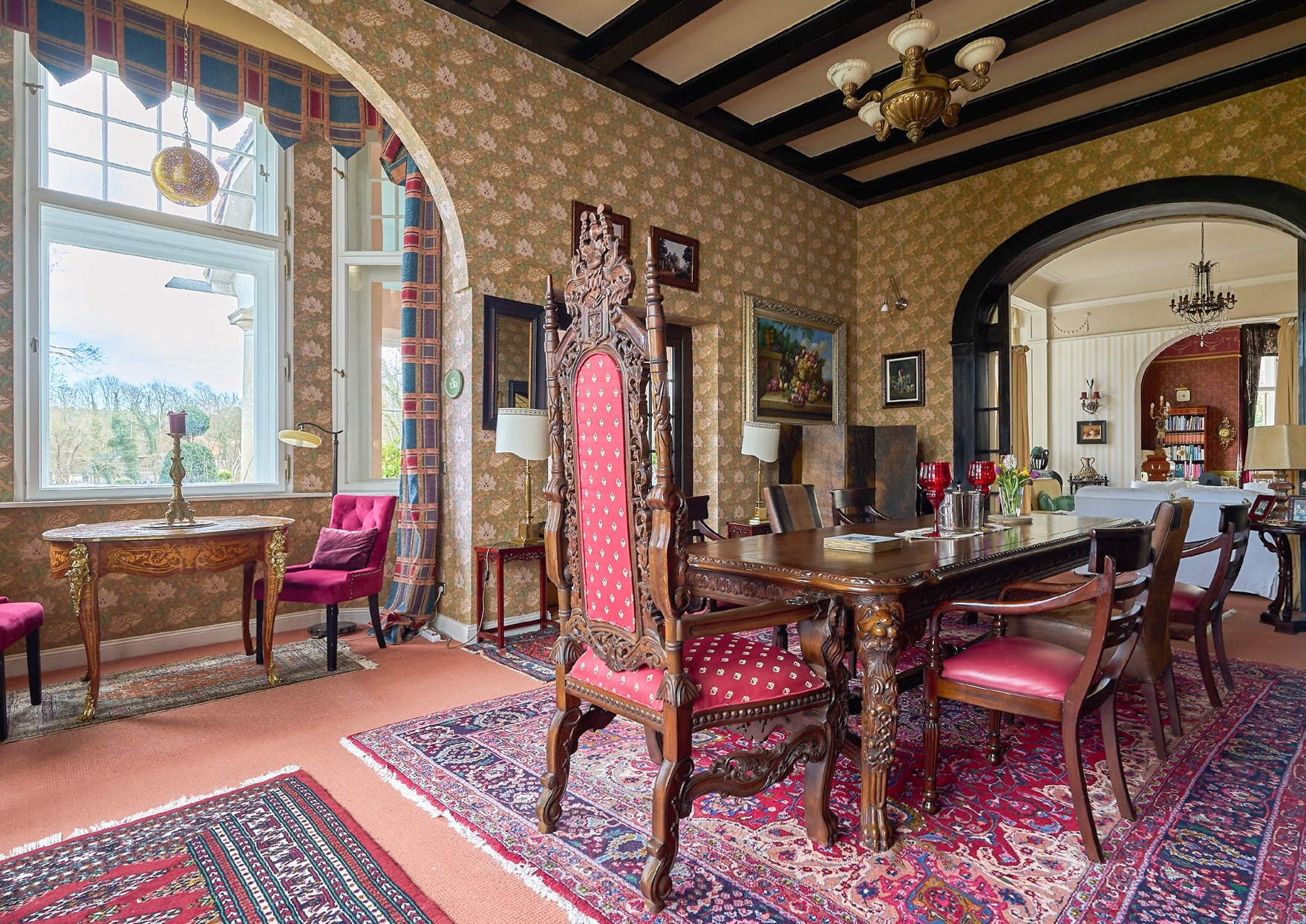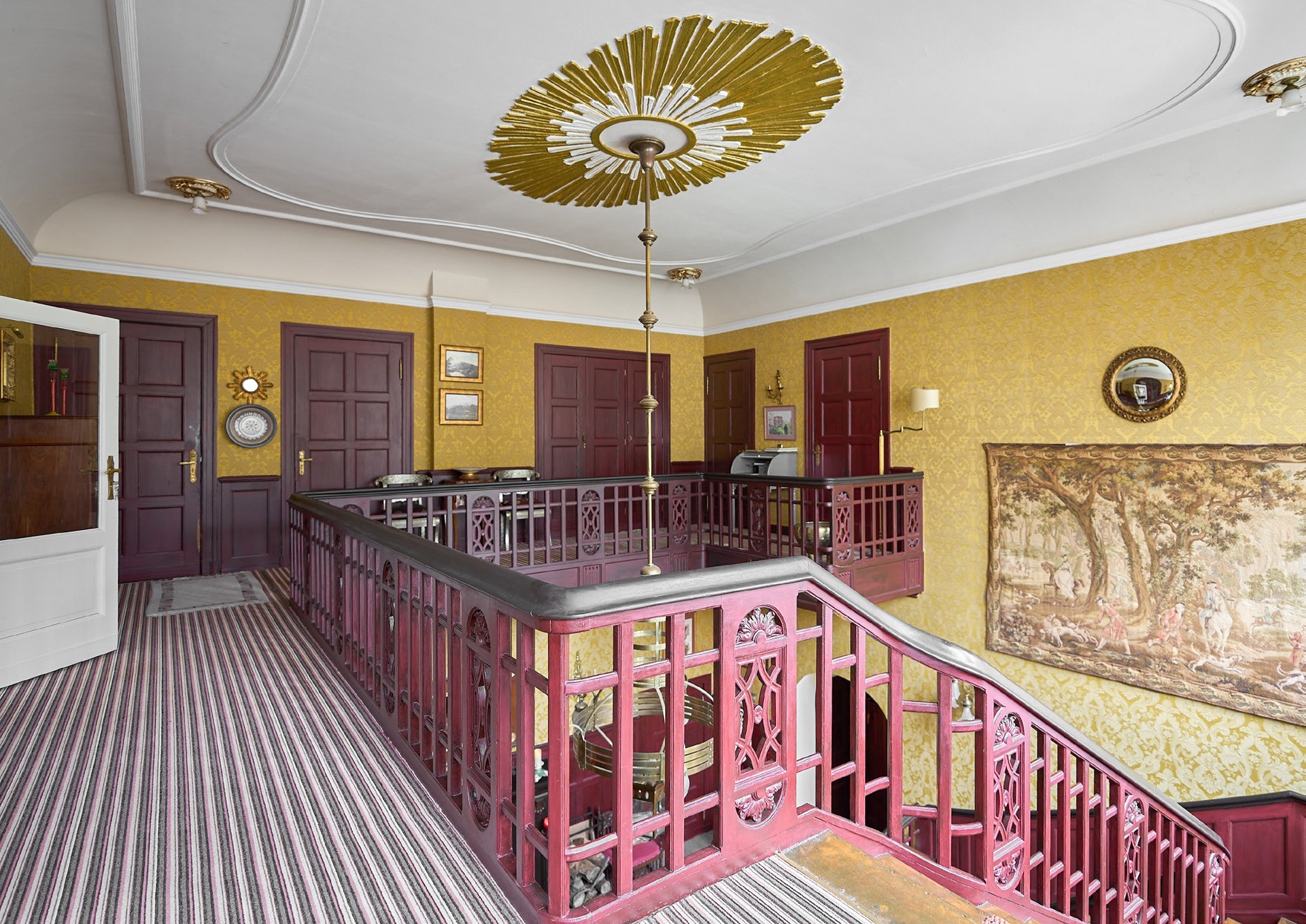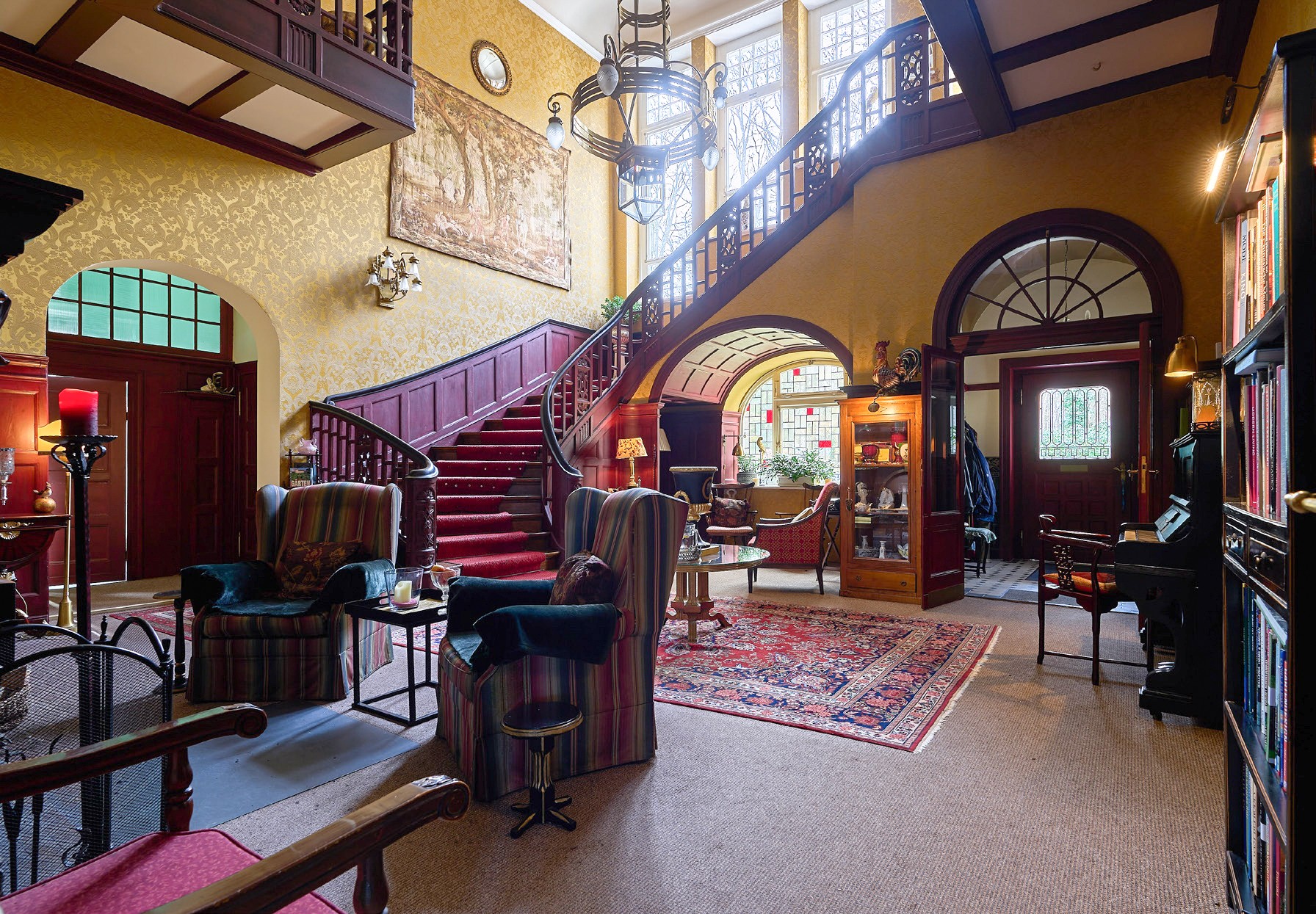 Sala d'ingresso Grande scala Camino Vetrata colorata Torre Balcone Giardino d'inverno Soffitti alti