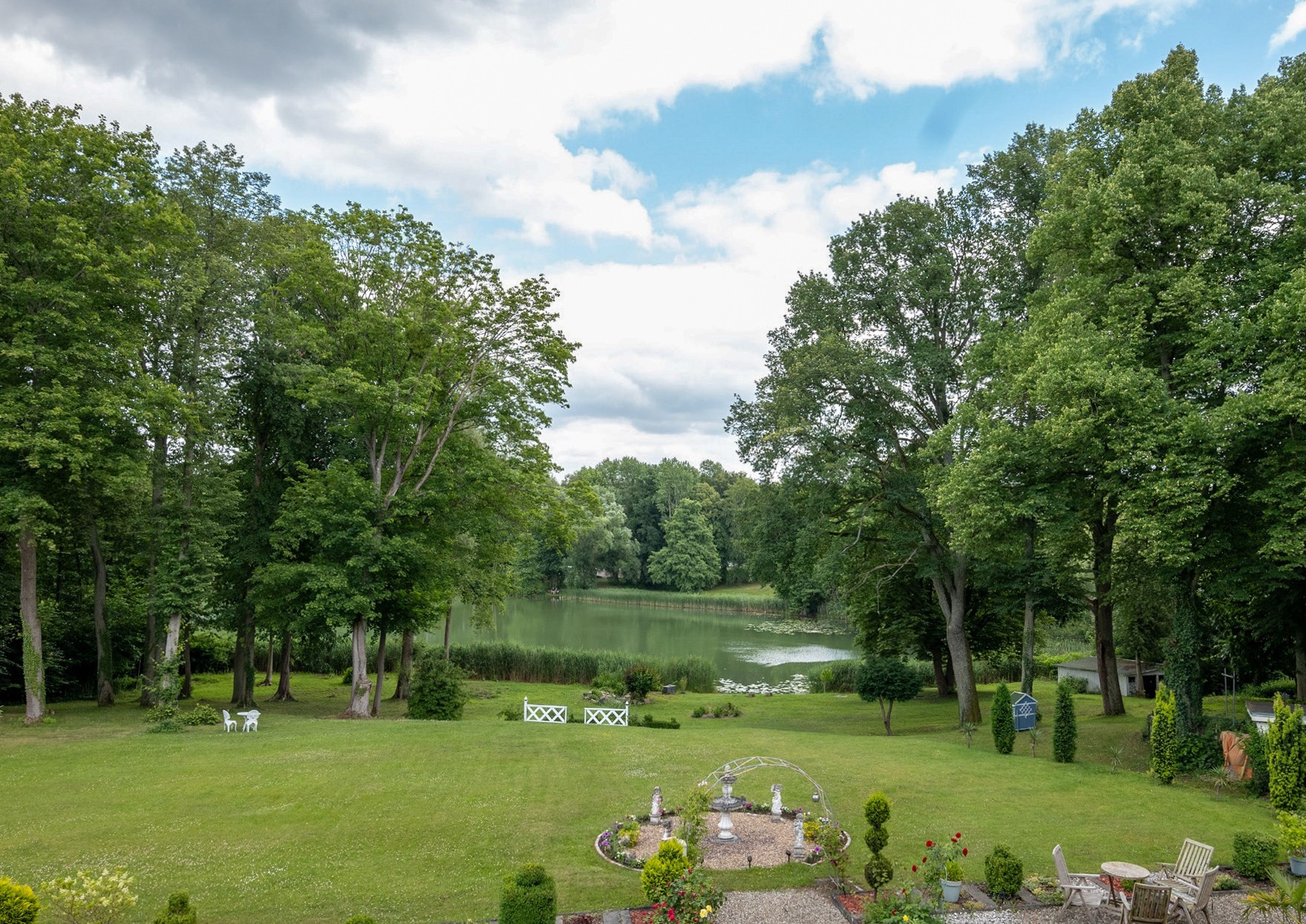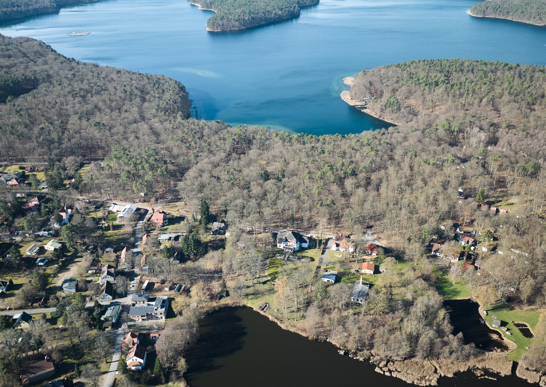 Una proprietà di oltre 9.000 m² in stile parco con giardino curato e alberi secolari tra il lago Dagow e il lago Stechlin Grande rende questa villa con accesso privato al lago (circa 70 m di riva) un luogo ambito nella periferia di Berlino.