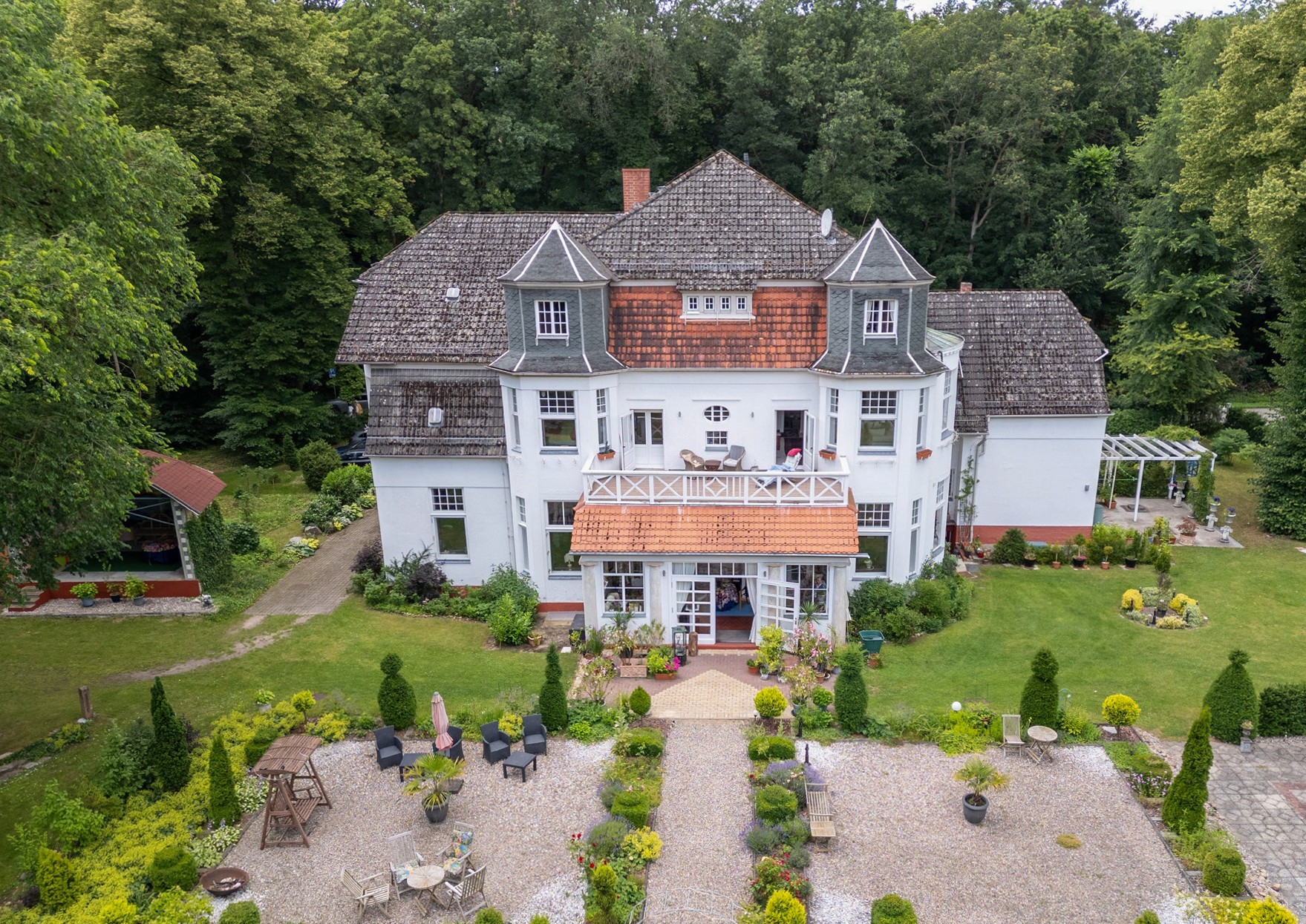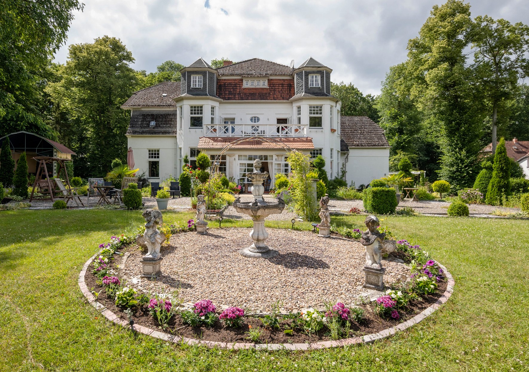 Costruita nel 1907 nella regione dei laghi del Brandeburgo per un mercante di Brema come residenza rappresentativa e di riposo, la villa si distingue per l’eccellente qualità costruttiva in stile cottage inglese con influenze dello Jugendstil nella sua fase più alta. La disposizione originale degli spazi con i dettagli storici trasmette ancora oggi un’immagine autentica dello stile di vita borghese all’inizio del XX secolo.