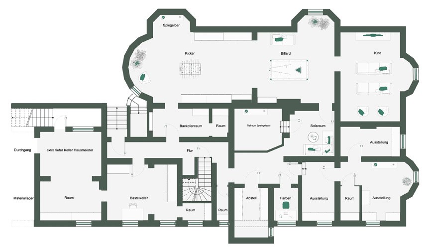 Al piano seminterrato si trovano diverse stanze rifinite, adatte per varie destinazioni d’uso (ad esempio home cinema, fitness, benessere).