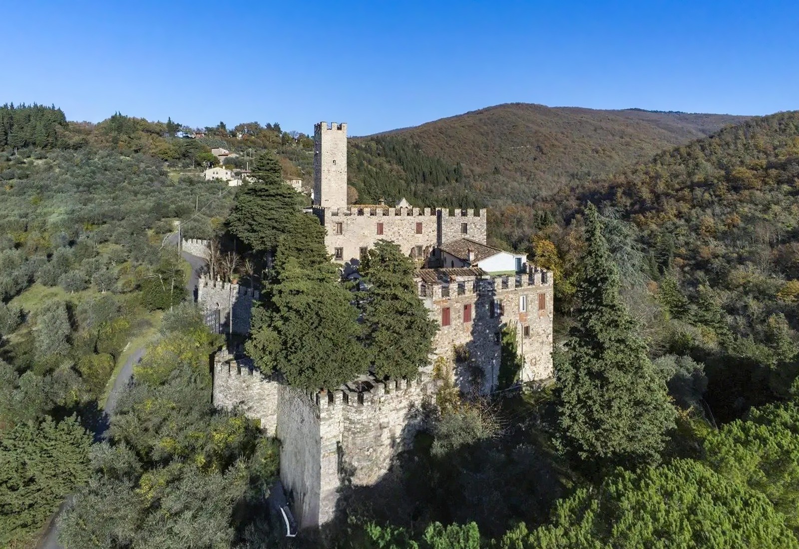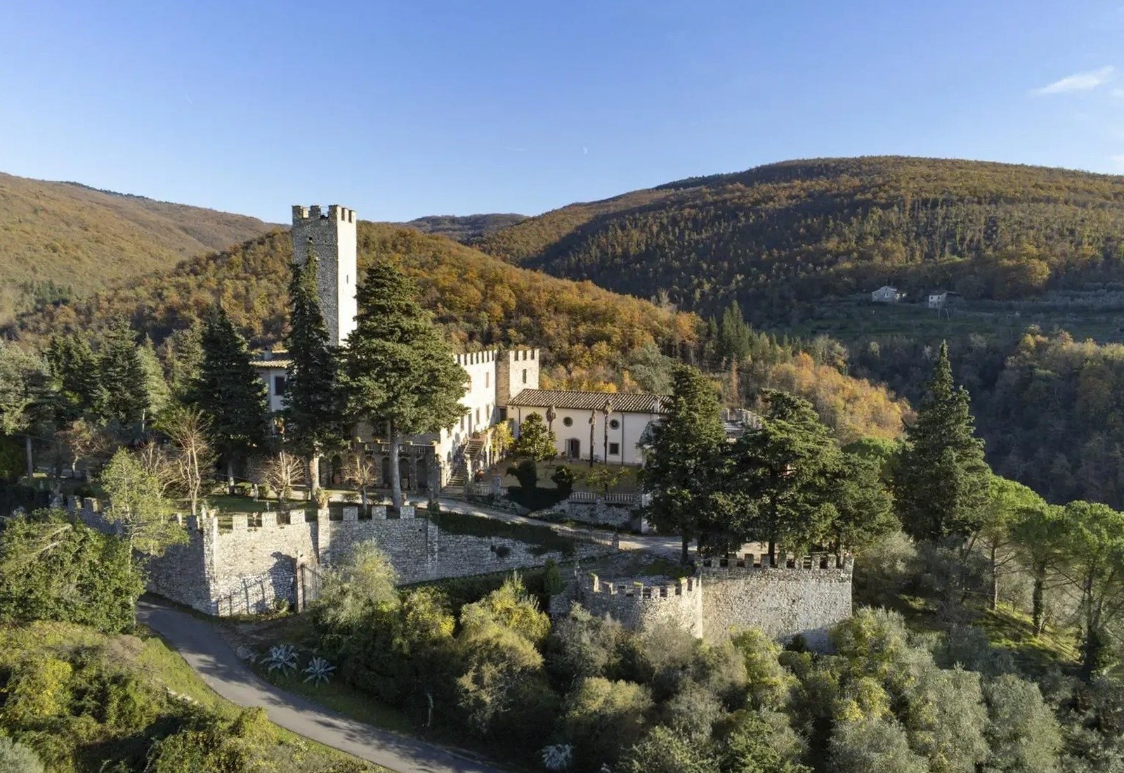 Le origini della proprietà risalgono al XII secolo, quando l’imperatore Federico I Barbarossa ordinò la costruzione di un presidio strategico a tutela della via tra Firenze e il Mugello. Nel corso dei secoli la fortezza si trasformò in residenza di importanti famiglie toscane, tra cui gli Alberti, Guidi e Cavalcanti.