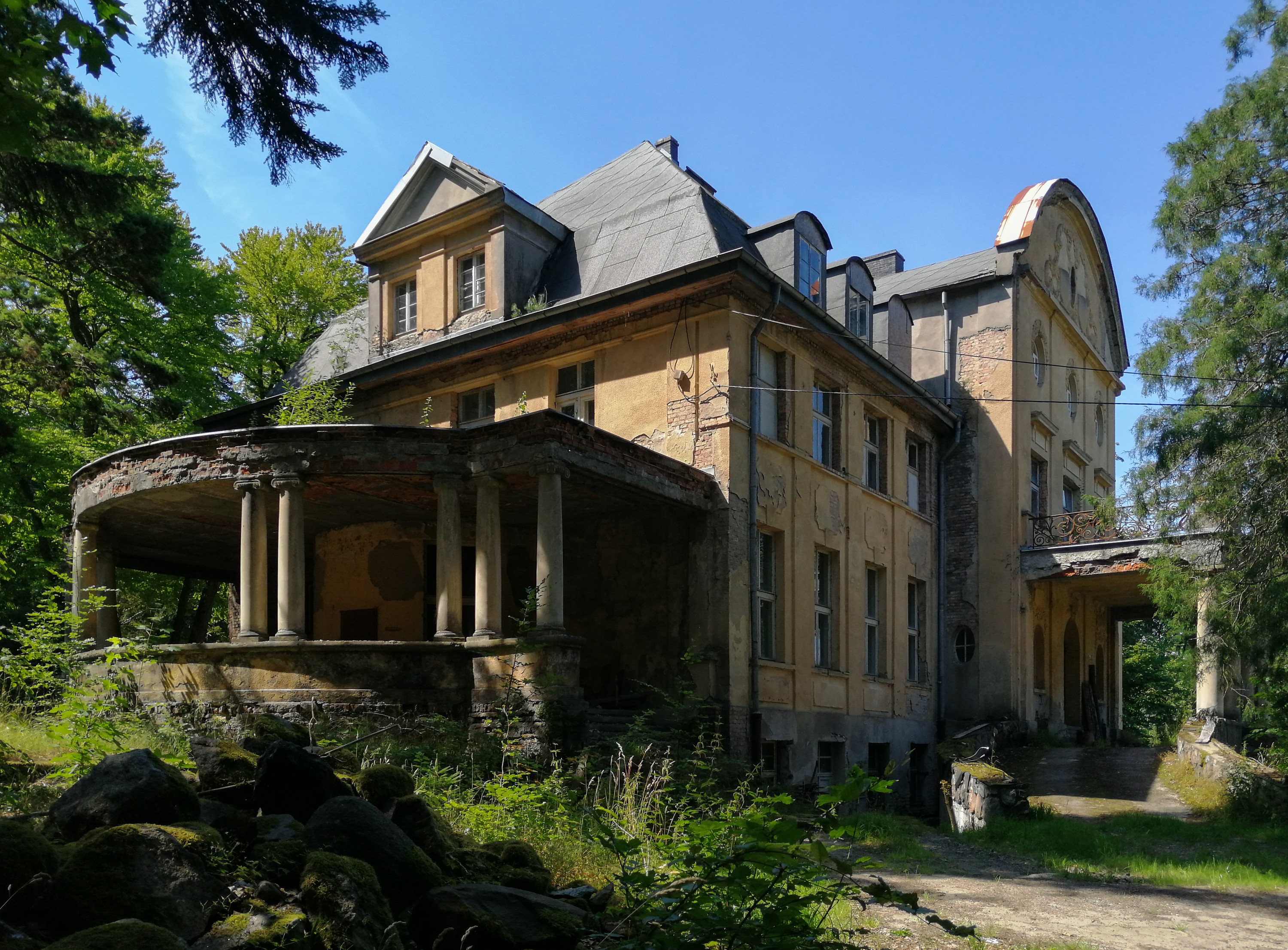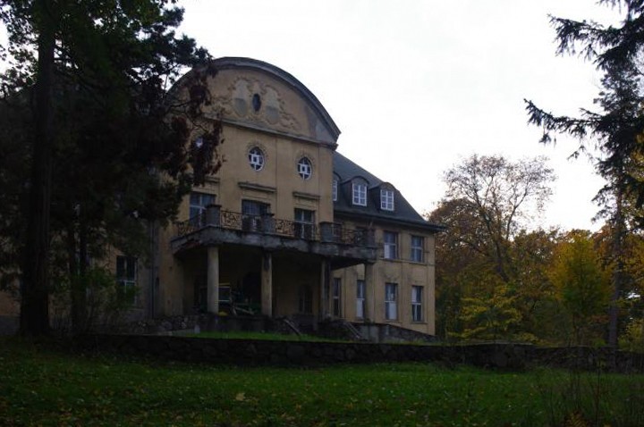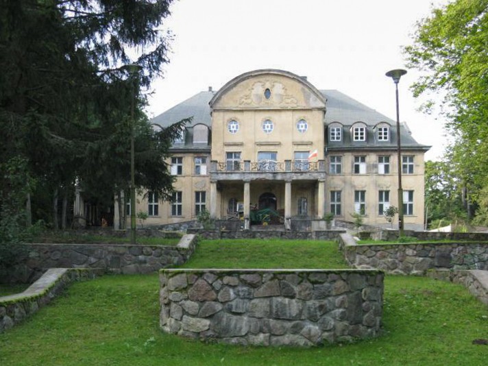 Il castello in vendita a Trzcinno Pałac w Trzcinnie fu costruito per la nota famiglia nobile della Pomerania Massow e fu chiamato "Gut Rohr" (distretto di Rummelsburg in Pomerania) fino al 1945. Dopo un incendio, fu ricostruita nel 1911 nell'attuale stile neobarocco. Un viale rappresentativo conduce alla casa padronale a due piani che si erge su una collina. Il lato del cortile è dominato da una maestosa risalita centrale con timpano ovale e portico. Sui lati sud e ovest si trova un'estensione della terrazza. La terrazza sul lato sud è coperta da colonne decorative.