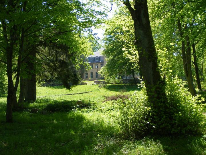 Il castello è circondato da un bellissimo parco di 5 ettari, che degrada verso il lago. Nel parco si trovano un piccolo stagno e molte specie arboree rare. La superficie totale è di 1.700 m². La proprietà è completamente recintata con una recinzione metallica e un muro in pietra. L'accesso avviene attraverso un cancello forgiato.