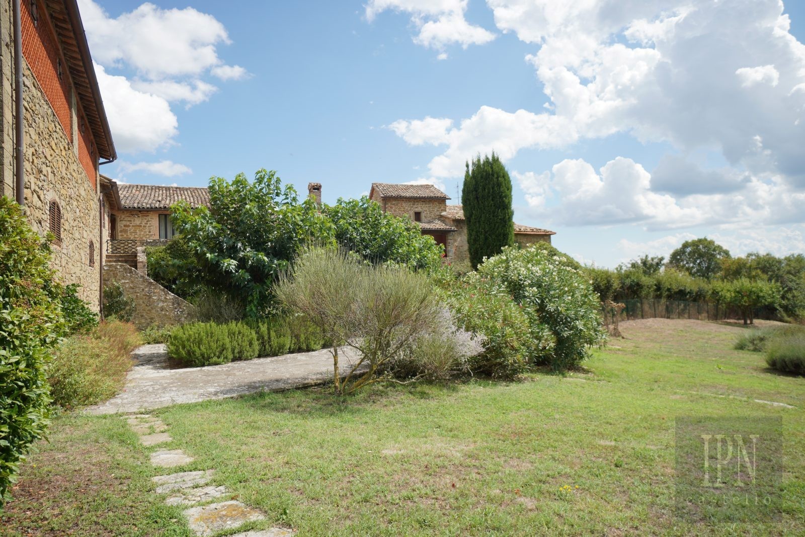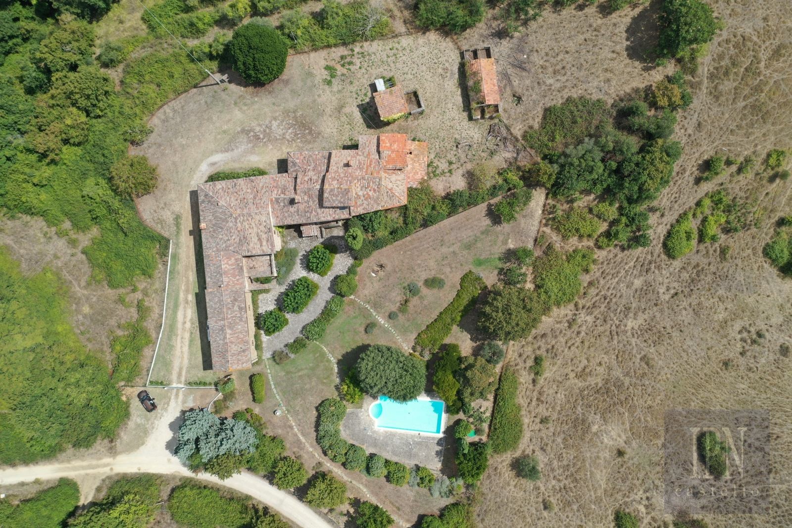 La proprietà comprende vari ripostigli e una cantina, ideale per essere trasformata in una bella cantina. All'esterno, il giardino ben curato si estende per circa 3000 mq, completato da una piscina privata con vista mozzafiato sulla campagna.