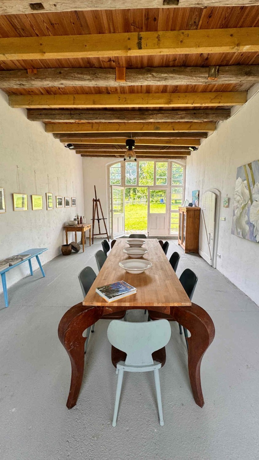 La proprietà offre circa 506 m² di superficie abitabile, circa 738 m² di superficie utile e ulteriori 377 m² da sviluppare, su un terreno di circa 6.900 m². Comprende un edificio residenziale con più unità, atelier adatti ad attività come yoga o danza, officine e spazi di deposito, oltre a diversi annessi, tra cui aree per lo stoccaggio di legname e materiali. Il cortile conserva il suo carattere storico e uno degli appartamenti è stato completamente ristrutturato nel 2025.