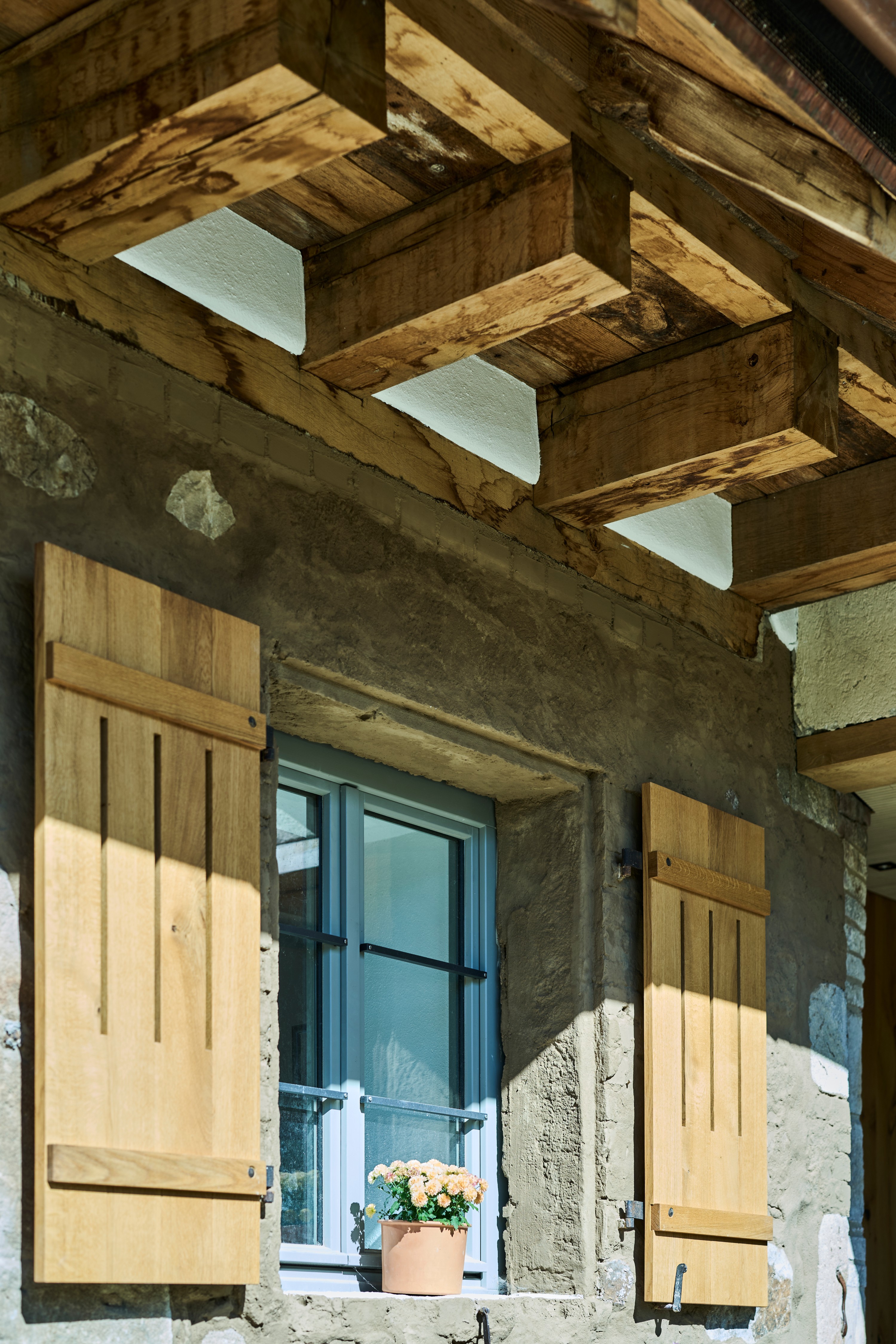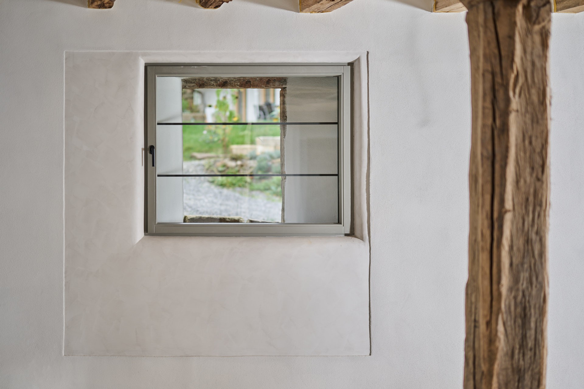 Historische Sprossenfenster wurden liebevoll restauriert und um eine Kastenfensteranlage ergänzt, um optimale Dämmwerte zu gewährleisten. Das imposante Holztor, das den Eingang bildet, wurde fachgerecht überarbeitet und führt zur eigentlichen Haustüranlage, die ebenfalls aus massivem Eichenholz gefertigt ist.