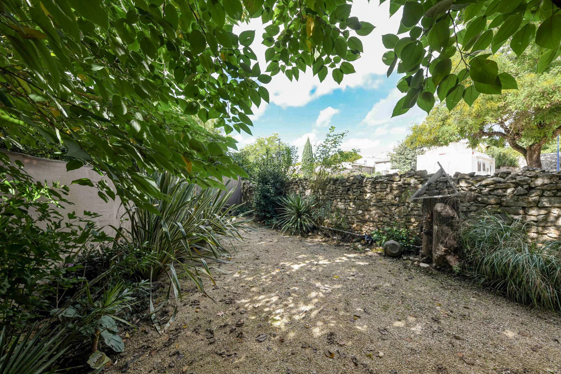 Il giardino di 110 m², ombreggiato da alberi secolari, offre un rifugio tranquillo, ideale per godersi l’estate in totale relax.