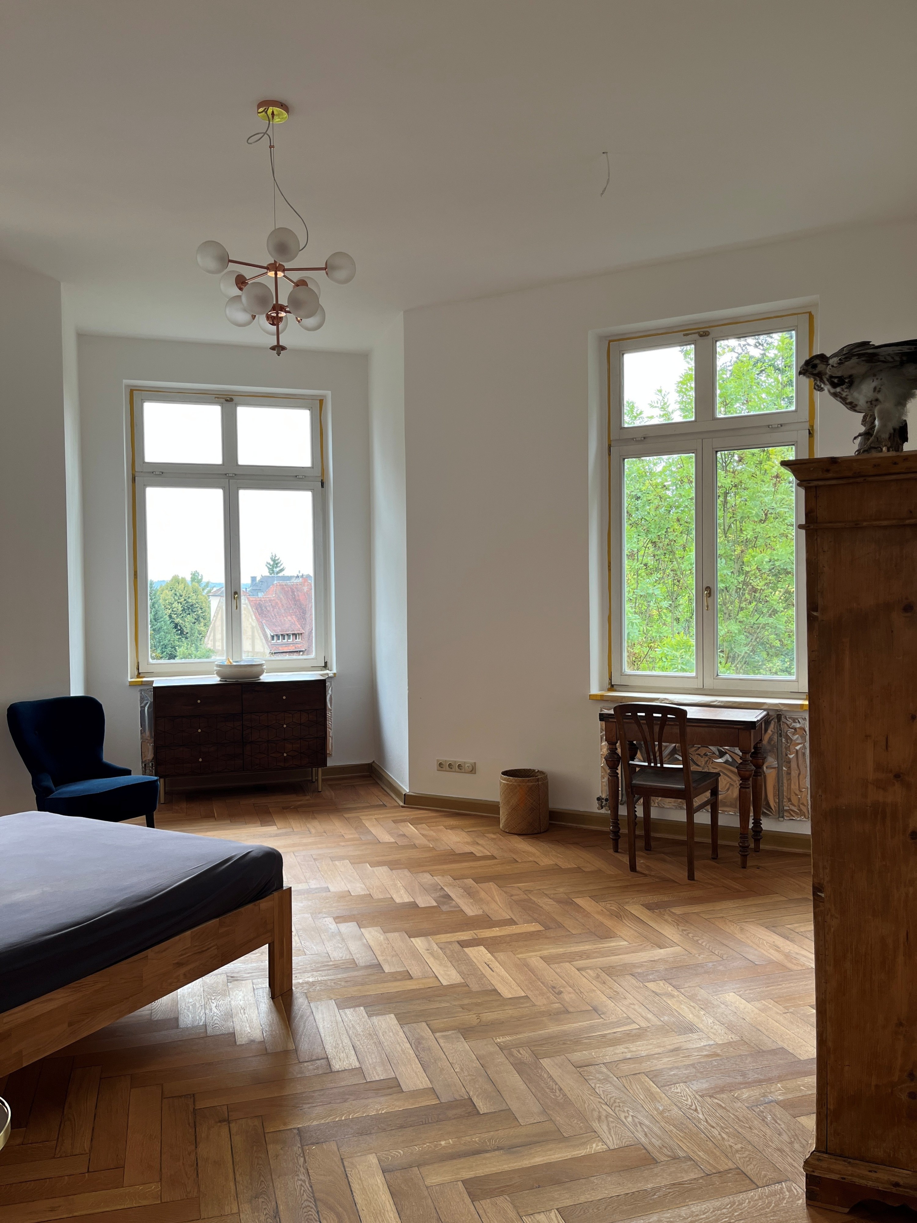 Villa Brehme si trova nel ricercato quartiere di Debschwitz, circondata da altre importanti ville storiche e nelle immediate vicinanze della città-giardino di Heinrichsgrün. Il centro città, l’ospedale, la stazione ferroviaria, scuole, asili e negozi sono raggiungibili a piedi. I collegamenti ferroviari regionali consentono di raggiungere facilmente Jena, Erfurt e Lipsia, mentre le vicine autostrade A4 e A9 garantiscono ottimi collegamenti regionali e nazionali.