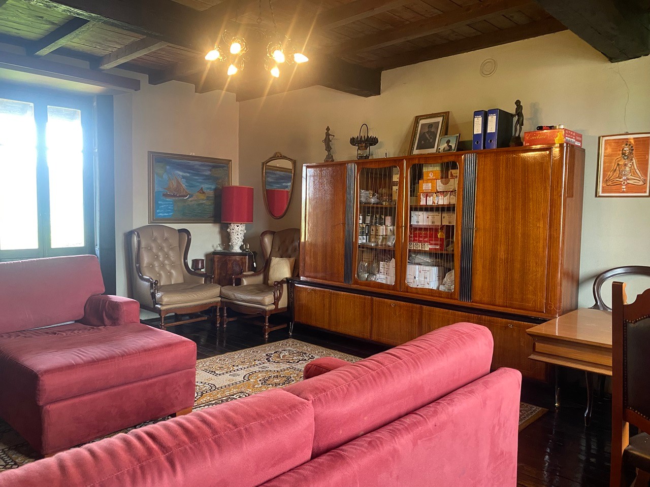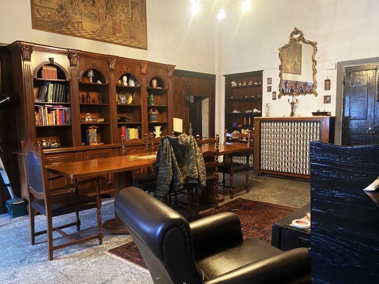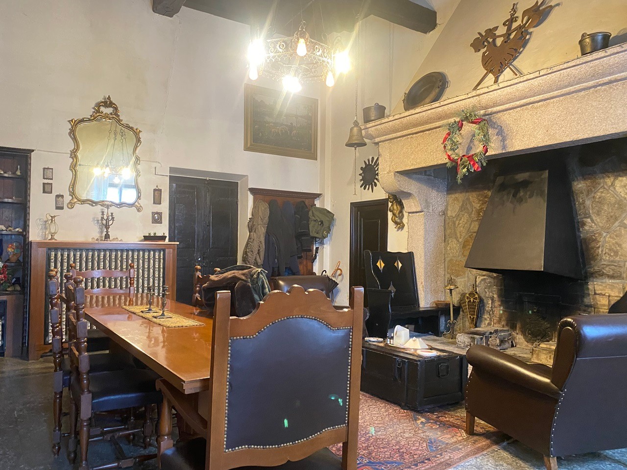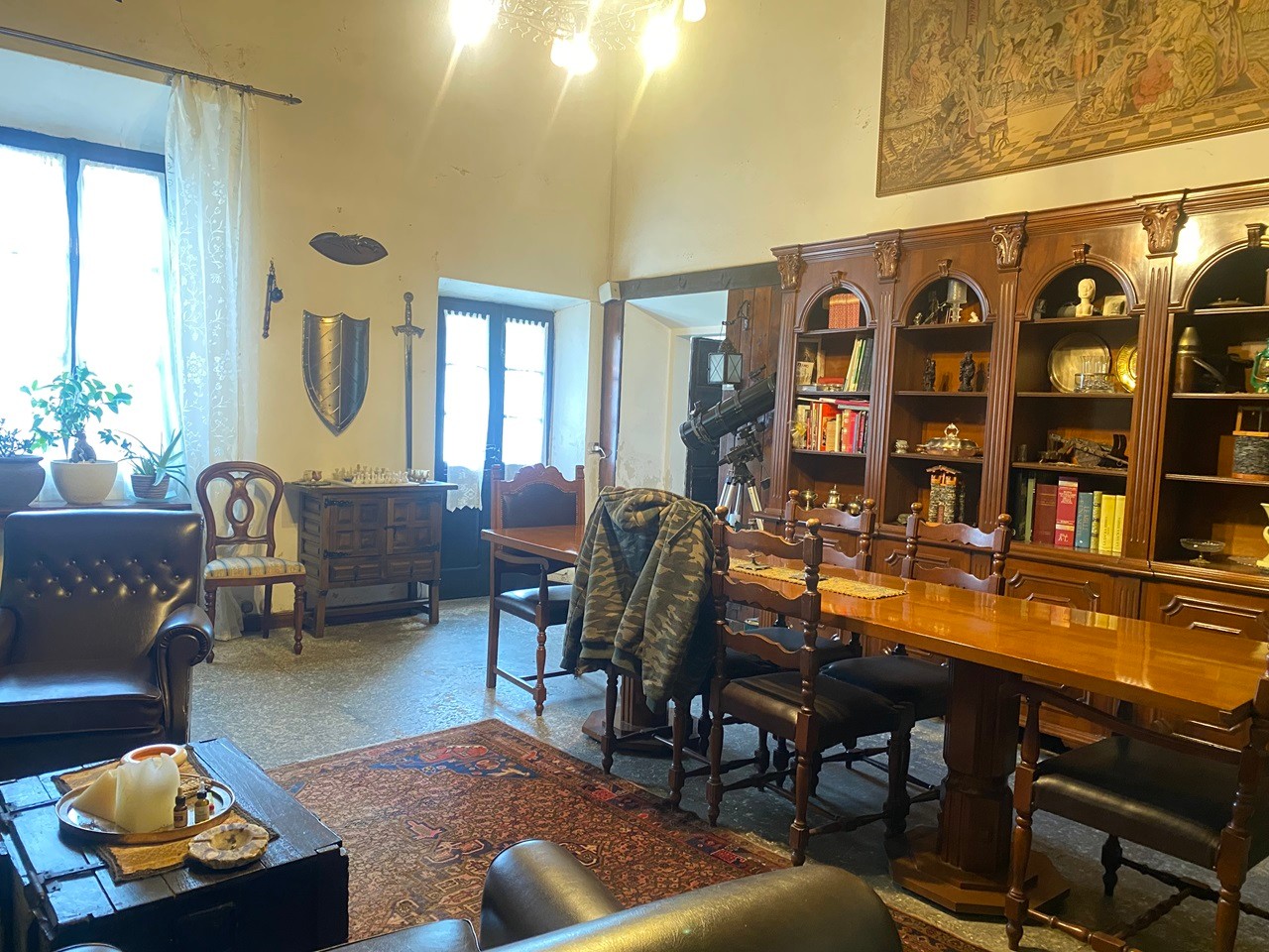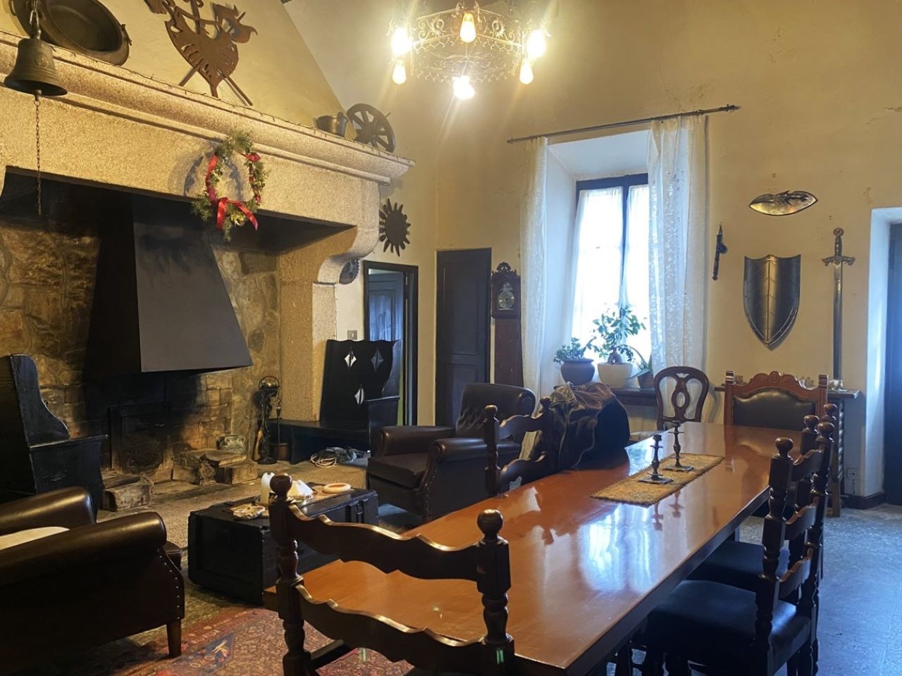 All'ingresso, veniamo accolti in un'atmosfera di prestigio e storia da un ampio soggiorno con un imponente camino. La cucina abitabile e il bagno offrono comfort e funzionalità al piano terra, completati da un pratico ripostiglio.