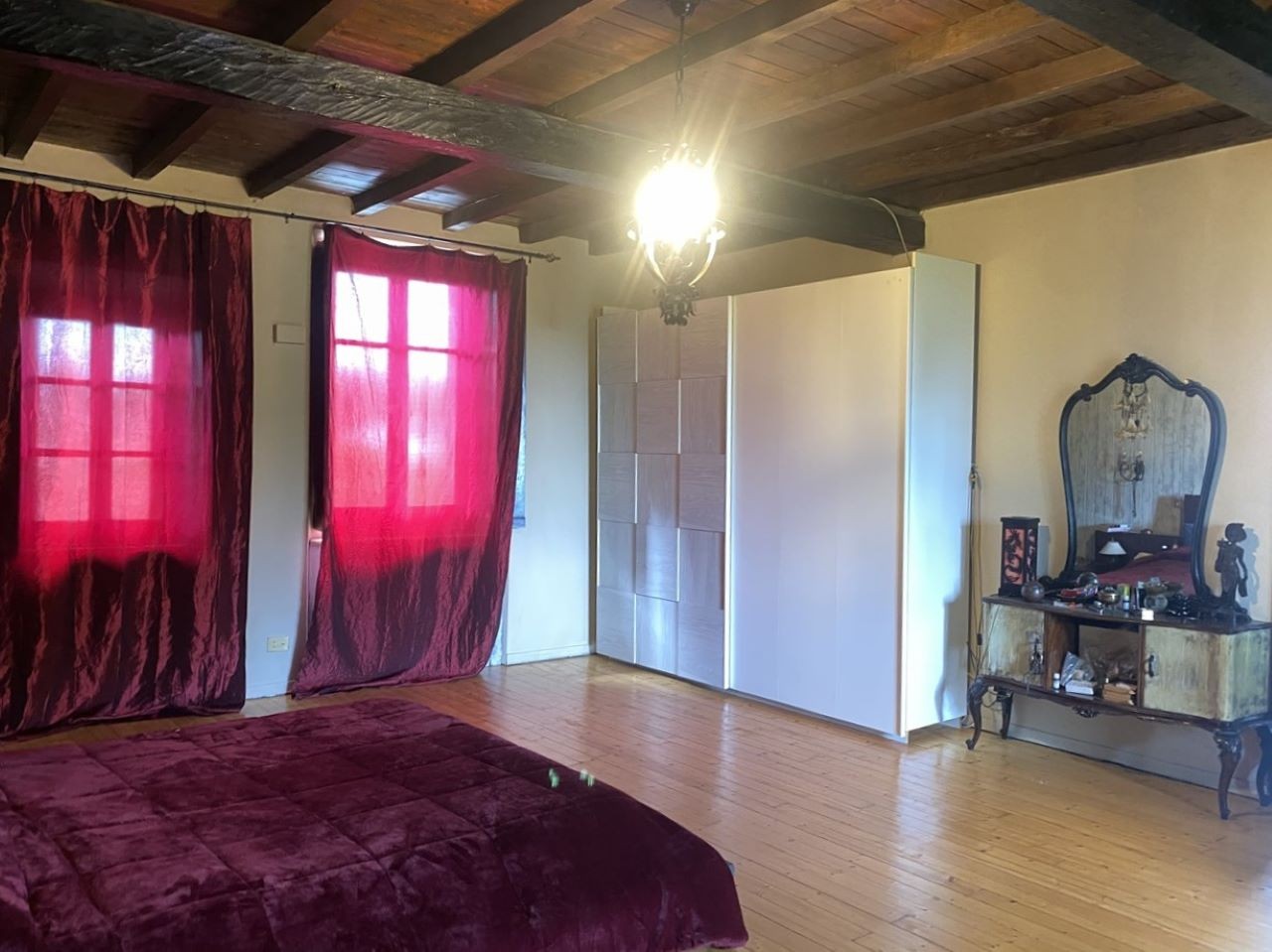 Originariamente una vasta proprietà, oggi è divisa in due parti, con la parte in vendita che occupa il lato sud-est, garantendo così indipendenza e privacy. La superficie abitabile si estende su tre piani, di cui uno è una mansarda, e dispone di stanze spaziose e ben distribuite.