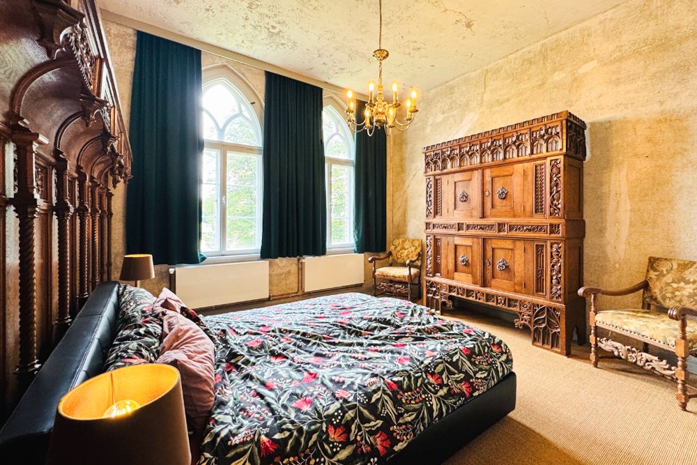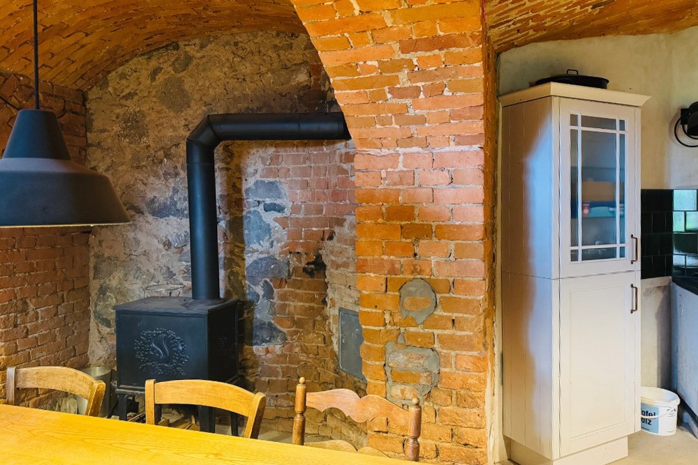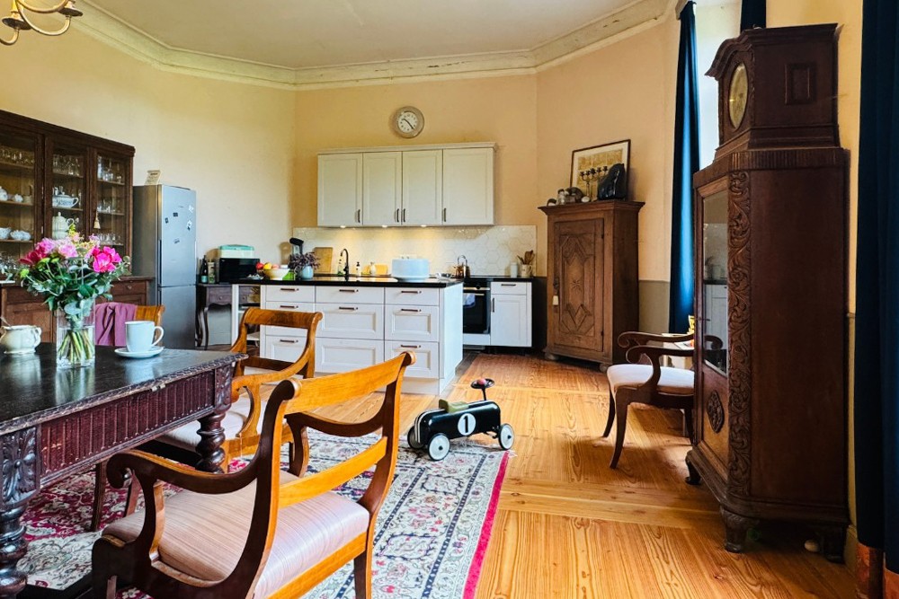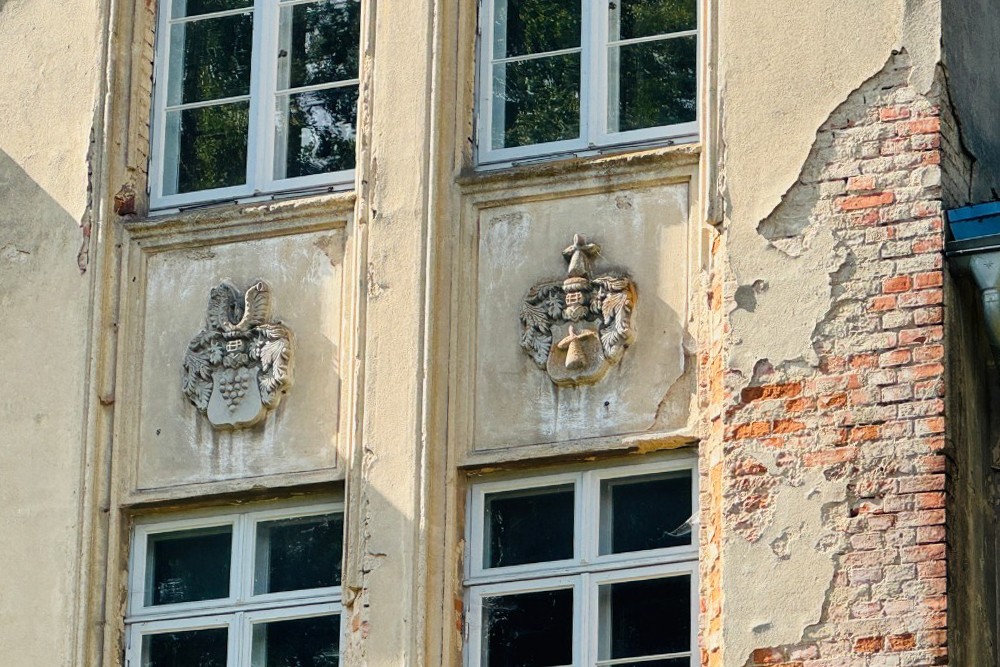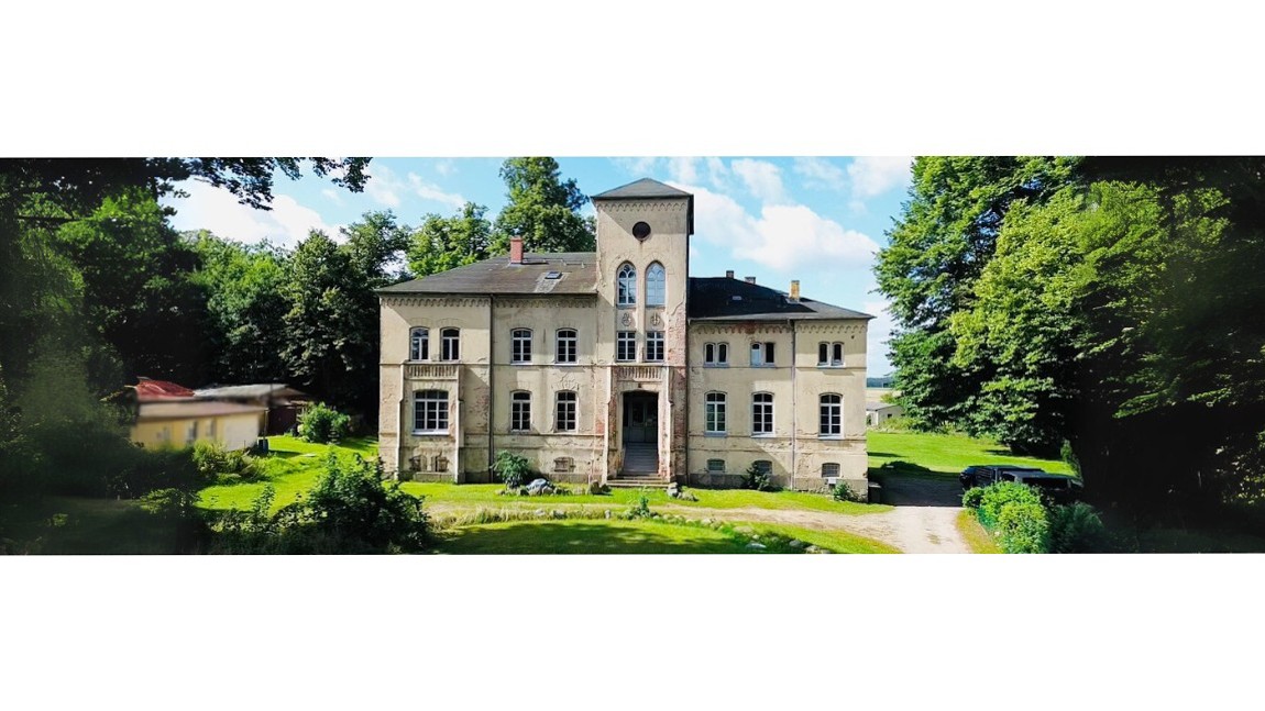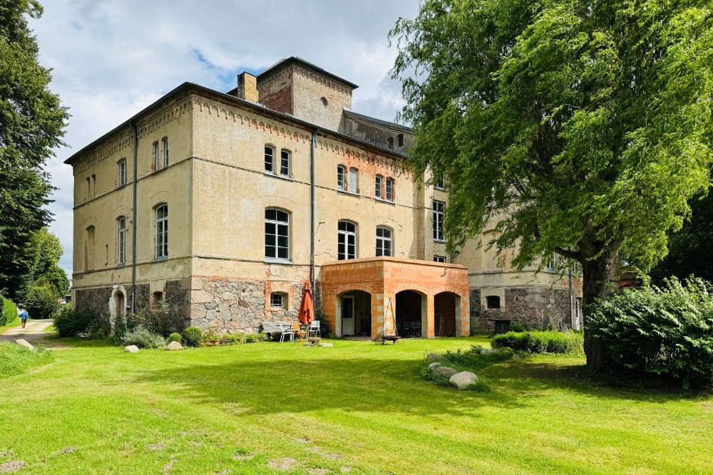 Sotto il velo rossastro della sua lunga storia, la villa di Kobrow mantiene ancora il suo fascino – un edificio di due piani su un alto seminterrato, costruito intorno al 1860 in stile neogotico. Una torre rettangolare di tre piani con tetto a tenda e orologio si erge leggermente fuori dall’asse della facciata. Sopra l’ingresso, due stemmi nobiliari – uno della famiglia von Bülow e l’altro della famiglia von Zeppelin – testimoniano una lunga successione di proprietari dal XVII secolo fino alla riforma fondiaria dopo il 1932.