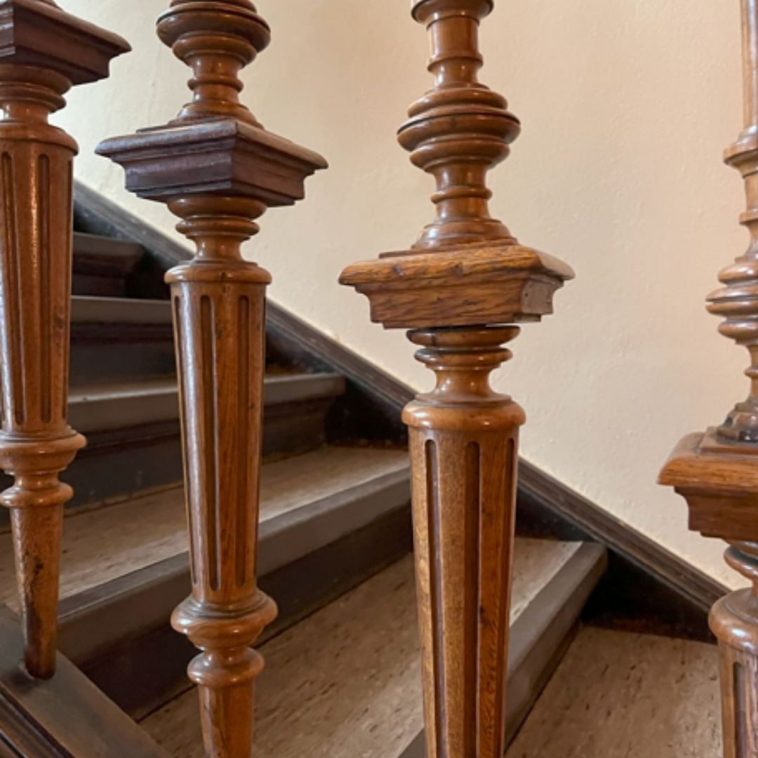 Anche gli interni conservano dettagli originali di pregio: un portale con arco e finestratura superiore, una scala in legno d’epoca, finestre con vetri dipinti a mano e una loggia rivolta verso il giardino ne evidenziano l’autenticità.