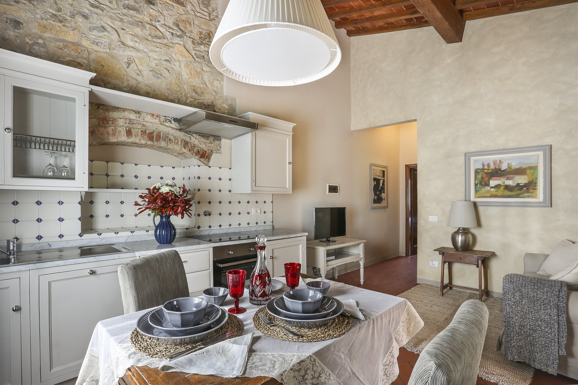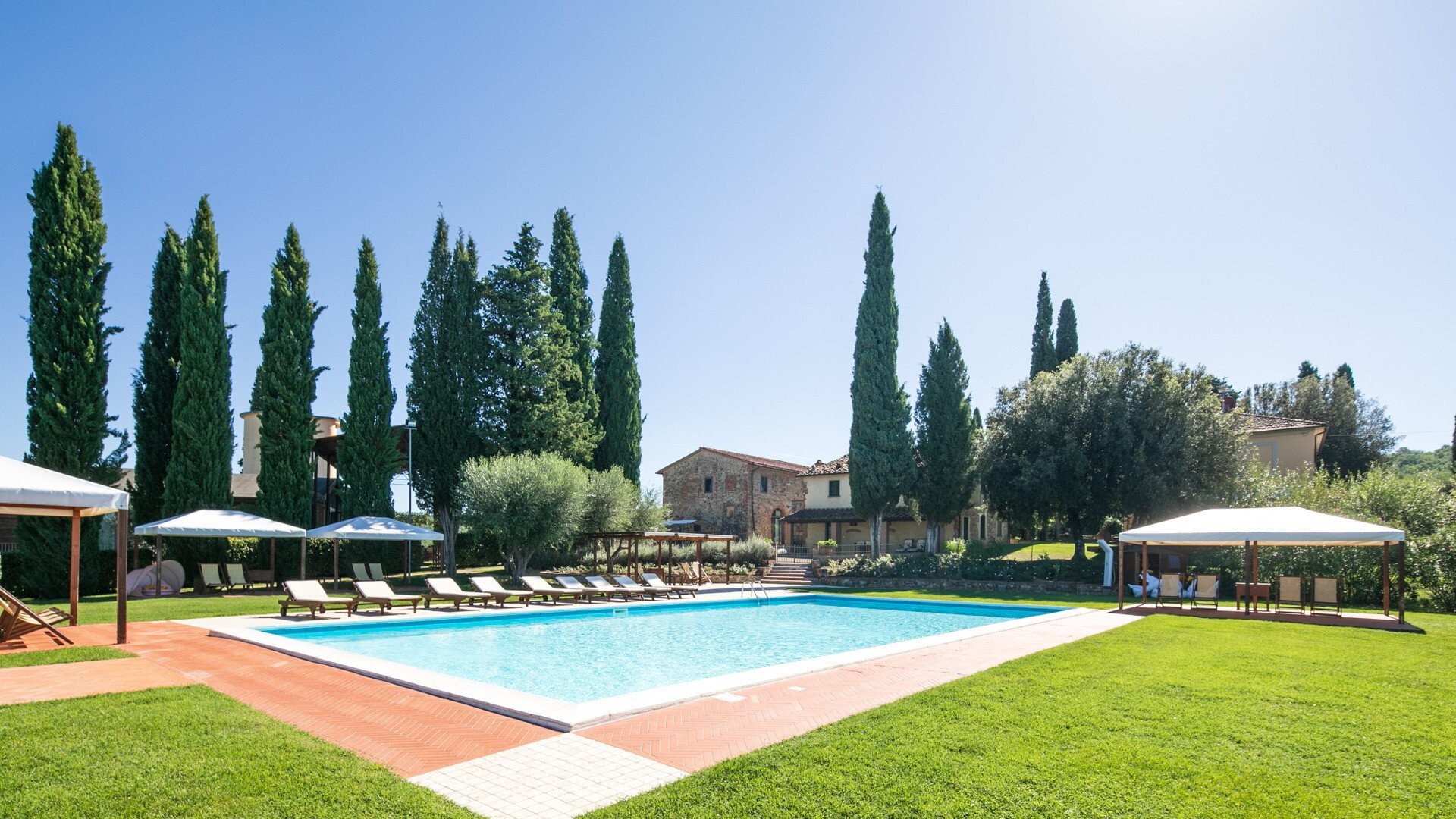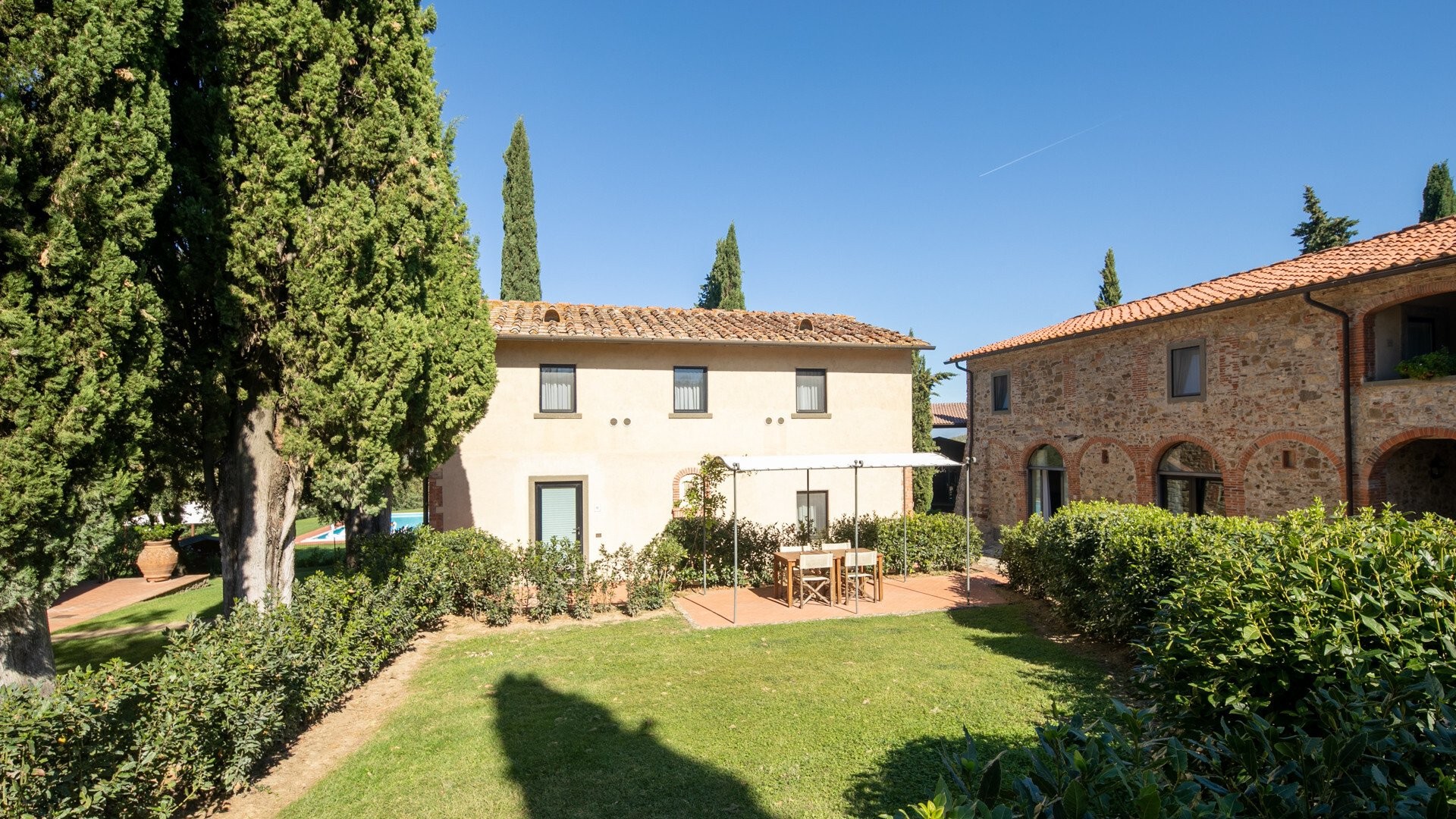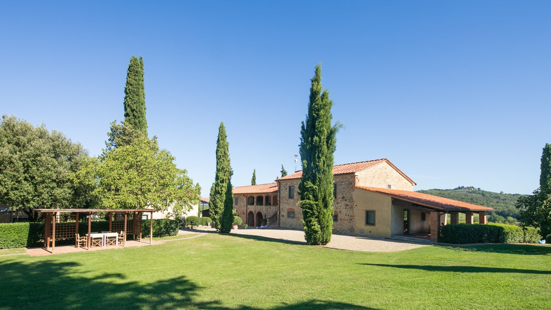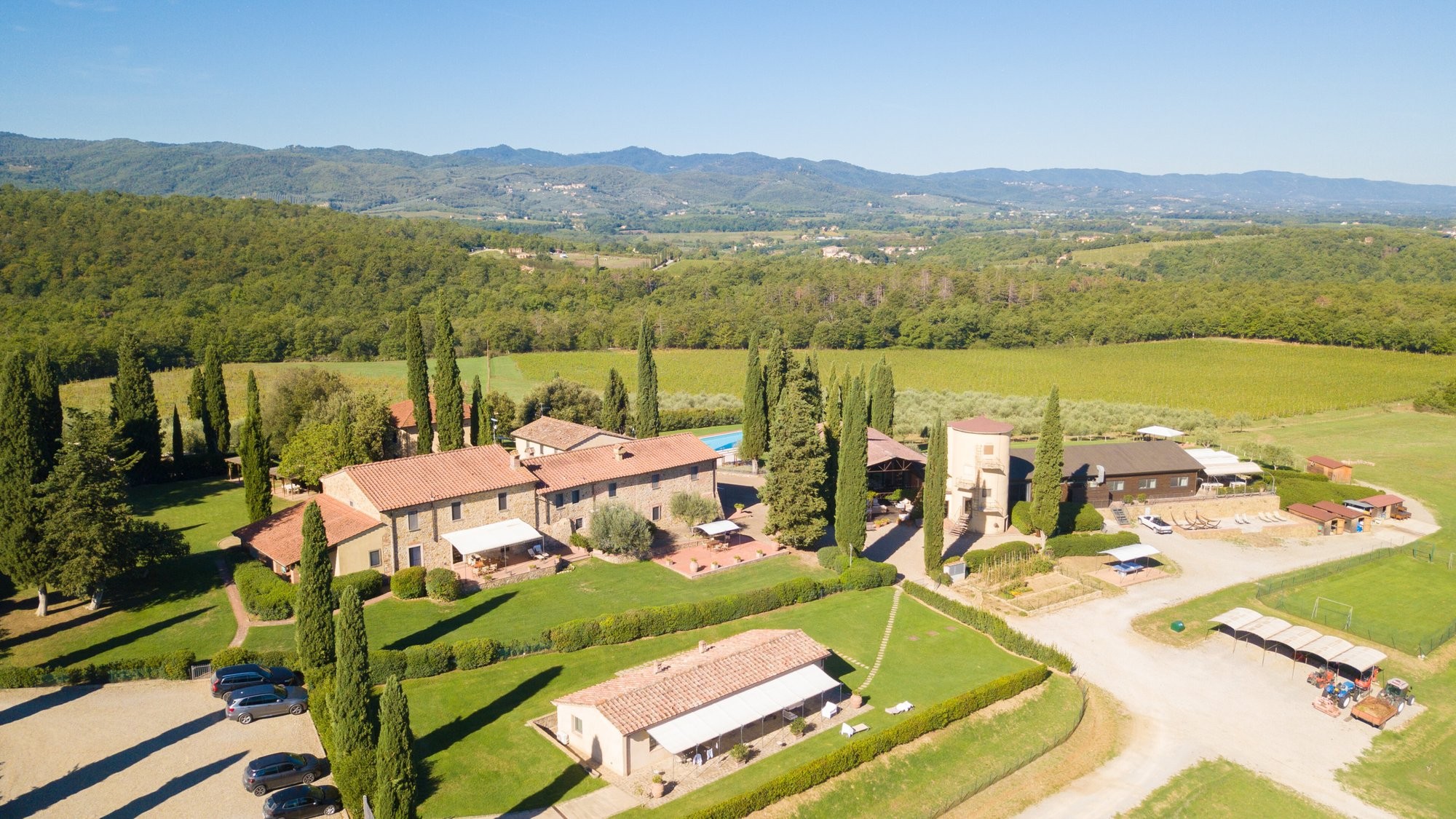 Borgo Veriliana si trova su una collina privata, a metà strada tra Firenze, Siena e Arezzo. La proprietà si estende su 93 ettari di terreno privato, offrendo totale privacy e viste su vigneti, uliveti, boschi e un lago alimentato da una sorgente.