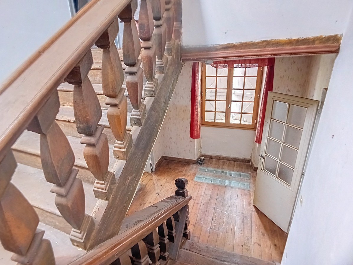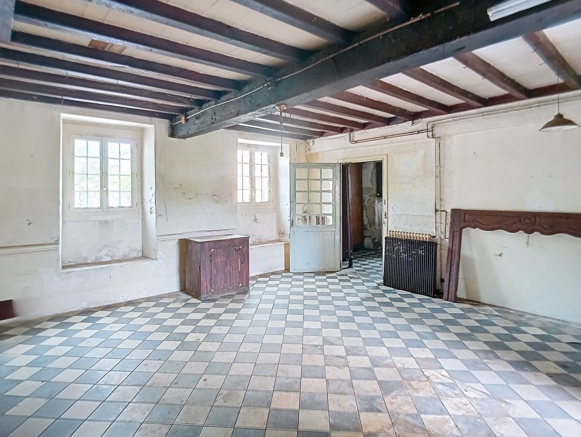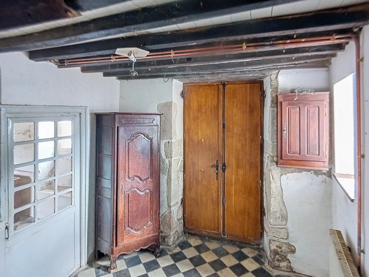 All’ingresso si nota il pavimento storico in pietra a scacchiera e una imponente scala in legno in stile Luigi XIII. A destra si apre un ambiente di 33 m² con camino e pavimento originale, che in passato era la cucina, ideale per creare un accogliente spazio living.