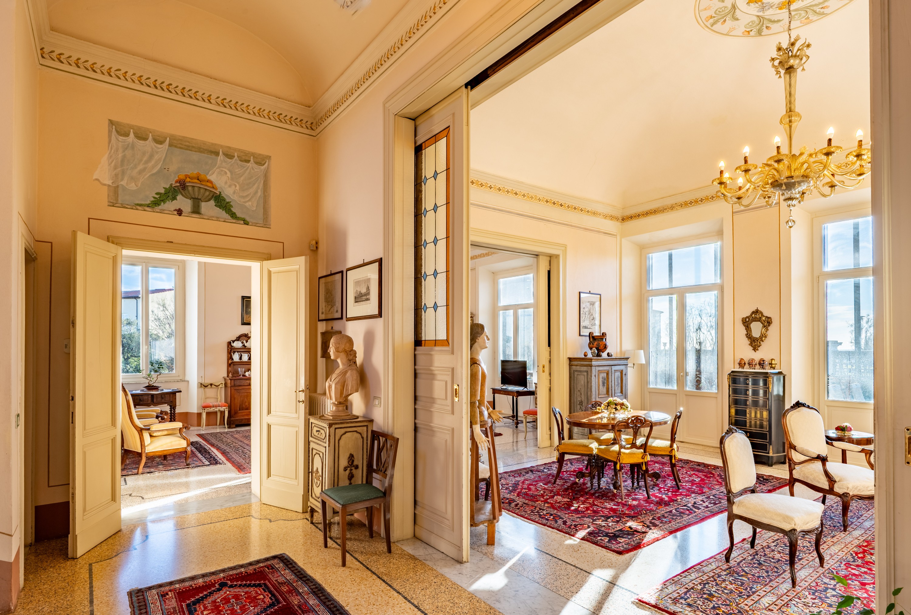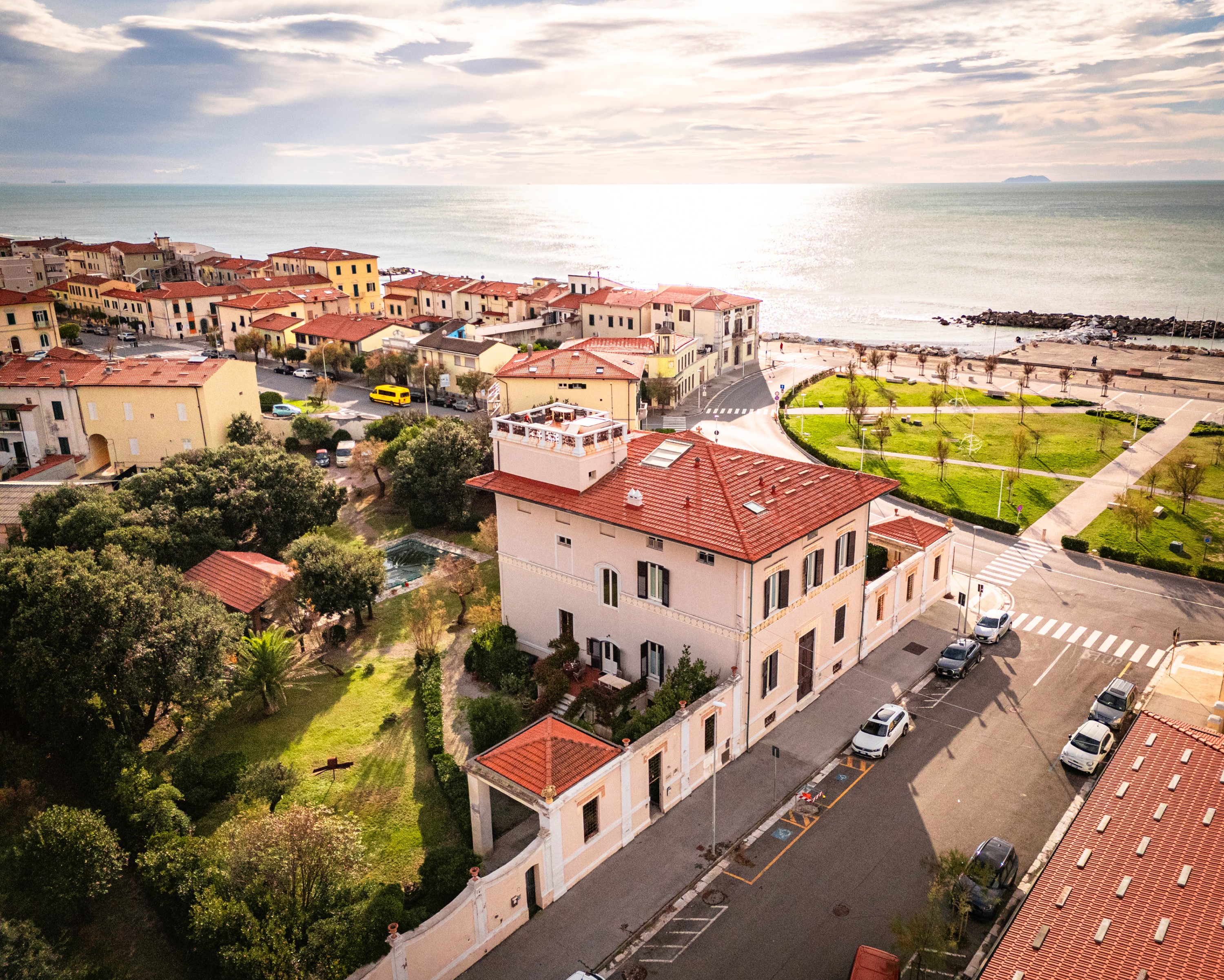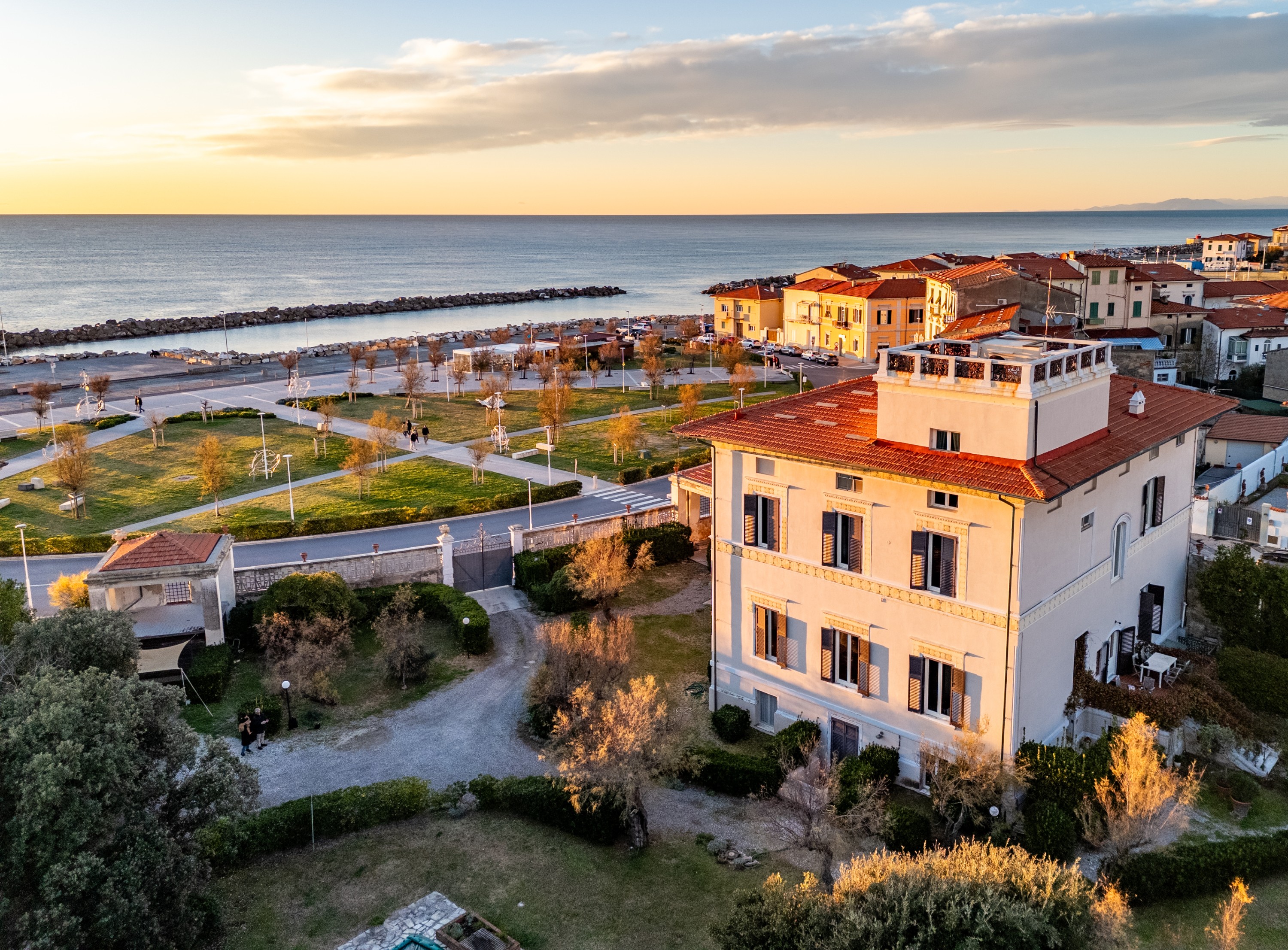 Villa Bondi appartiene alle Dimore Storiche D'Italia, è un esempio di eleganza senza tempo, immersa nella bellezza di Marina di Pisa. Qui ogni dettaglio è pensato per offrire comfort, privacy e relax, con spazi raffinati e una vista incantevole. La dimora conserva pregevoli decorazioni in maiolica attribuibili alla Manifattura di Signa, storica fabbrica ceramica attiva tra Otto e Novecento e legata alla famiglia proprietaria della Villa Bondi, che conferiscono alla residenza un particolare valore decorativo e testimoniano il gusto artistico dell’epoca. La Villa, di circa 1016 mq circondata da un giardino di 3.500 mq con piscina, fu edificata fra il 1905 e il 1909 dalla famiglia Bondi, commercianti fiorentini, fondatori nel 1888 della Manifattura di Signa a Firenze, da cui provengono le ceramiche che contornano le finestre della villa e i cornicioni. All'interno della villa e nel parco invece sono ancora conservati vasi decorati, bassorilievi e busti di ispirazione neoclassica. La proprietà è suddivisa in quattro unità immobiliari, ognuna dotata di ingresso indipendente, e si distingue per spazi generosi, funzionalità e massima privacy. L’unità principale, cuore della Villa, si sviluppa tra piano rialzato e primo piano e offre ambienti luminosi e perfettamente distribuiti. Al piano rialzato si trovano un’ampia cucina, una elegante sala da pranzo con camino, un luminoso soggiorno con patio esterno, uno studio e una camera ospiti con bagno privato. Il piano superiore ospita tre camere da letto, tre bagni, una funzionale stanza armadi, oltre a una pratica cucina di piano e una terrazza vista mare. La seconda unità, caratterizzata da un’atmosfera calda e riservata, si trova al livello mansardato ed è composta da cucina, una zona pranzo-soggiorno, due camere e due bagni. Infine il livello seminterrato ospita le restanti due unità, di cui una locata e adibita a studi medici, con ingresso indipendente, ideale per chi desidera coniugare abitazione e attività professionale, l’altra composta da cucina, camera e bagno, ideale come dépendance o alloggio di servizio. Allo stesso livello si trova poi un comodo locale tecnico. A completare la Villa, una torretta con vista panoramica che regala una prospettiva incantevole del mare, dei Monti Pisani e delle Alpi Apuane. L’accessibilità e comodità sono garantite dal pratico ascensore interno che collega tutti i piani principali. All’esterno, la proprietà è immersa in un giardino privato perfetto per relax, eventi e momenti di convivialità. La piscina, che misura 6x12 mq, è ideale per rinfrescarsi durante le calde giornate estive. Villa Bondi rappresenta una rara combinazione di lusso, funzionalità e versatilità, adatta sia a residenza privata che a utilizzo professionale o ricettivo. Ogni dettaglio della proprietà è studiato per offrire comfort, eleganza ed esclusività.