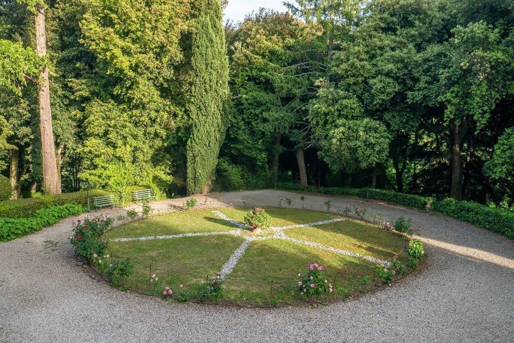La proprietà si sviluppa all’interno di un parco all’inglese, con alberi secolari e alcune specie rare. I giardini sono attraversati da sentieri e scalinate che conducono a grotte e fontane. Privacy e tranquillità sono elementi integranti del progetto.