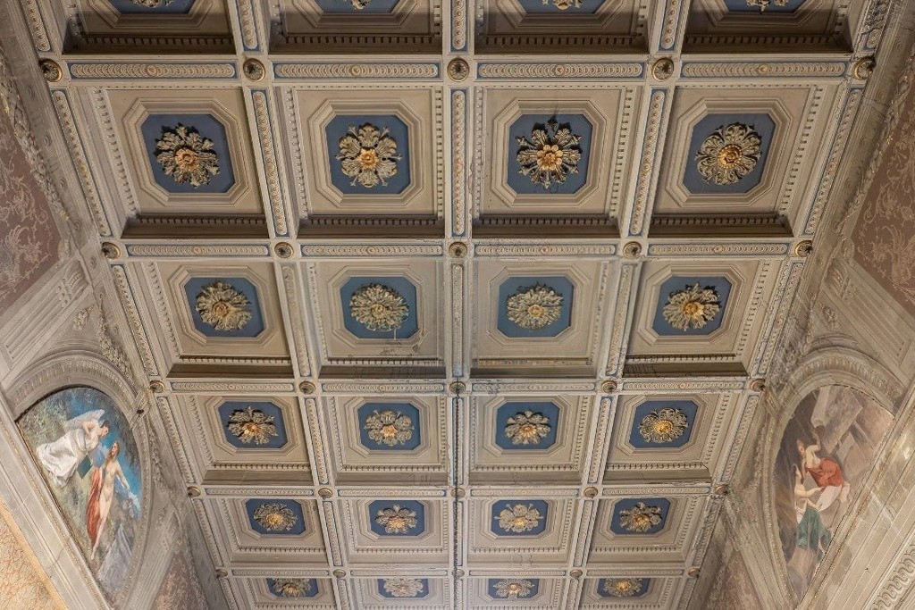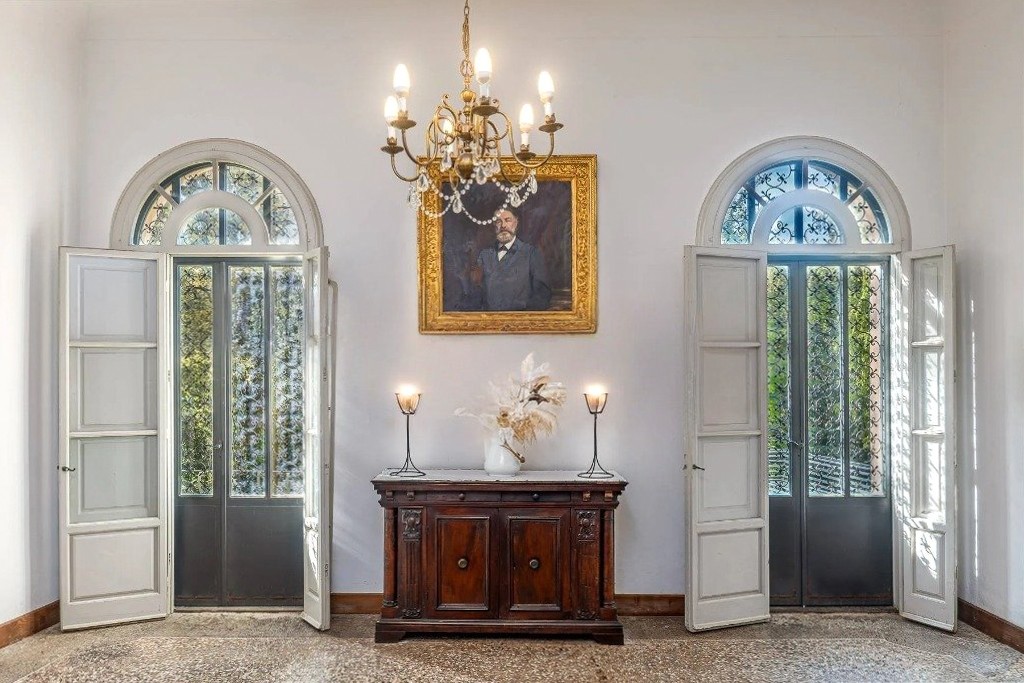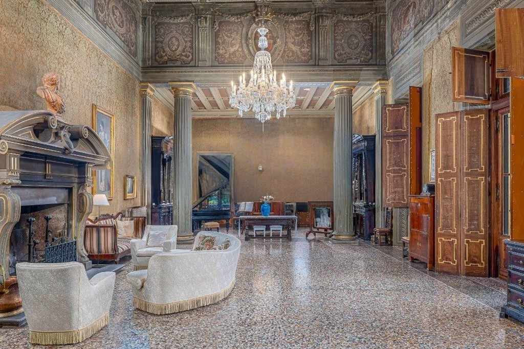 La villa principale, di circa 1.800 m², si articola su quattro piani ed è attualmente utilizzata come location per eventi. Il piano nobile costituisce il cuore della residenza, con otto sale ricevimento con soffitti alti, terrazze, logge, servizi per gli ospiti e due camere da letto. Il secondo piano comprende dieci camere, sette bagni e due salotti. Il terzo piano ospita altre dieci camere con tre bagni. Al piano terra e al semi-interrato si trovano due camere, un bagno e le aree di servizio: cucina, depositi, cantine, legnaia, garage e locali di supporto.
