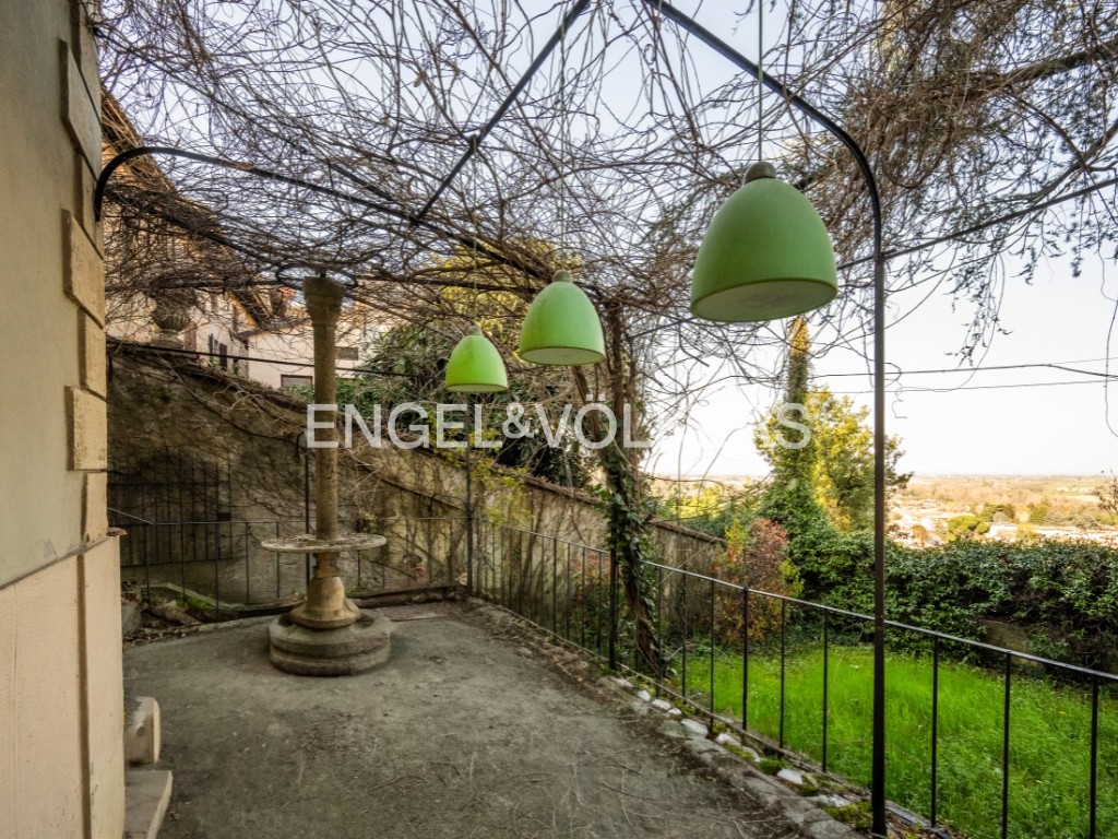 Gli spazi esterni sono altrettanto suggestivi: un cortile si prolunga in una balconata panoramica affacciata sul giardino, perfetta per godere della frescura estiva. Scendendo alcuni gradini si raggiunge il giardino, riservato e ricco di vegetazione, dove trova spazio una zona relax con vasca idromassaggio. Un piccolo percorso conduce infine a una scenografica grotta naturale in roccia, che ospita una Madonnina, aggiungendo un tocco poetico e contemplativo alla proprietà.