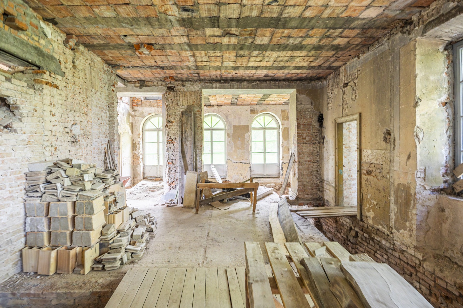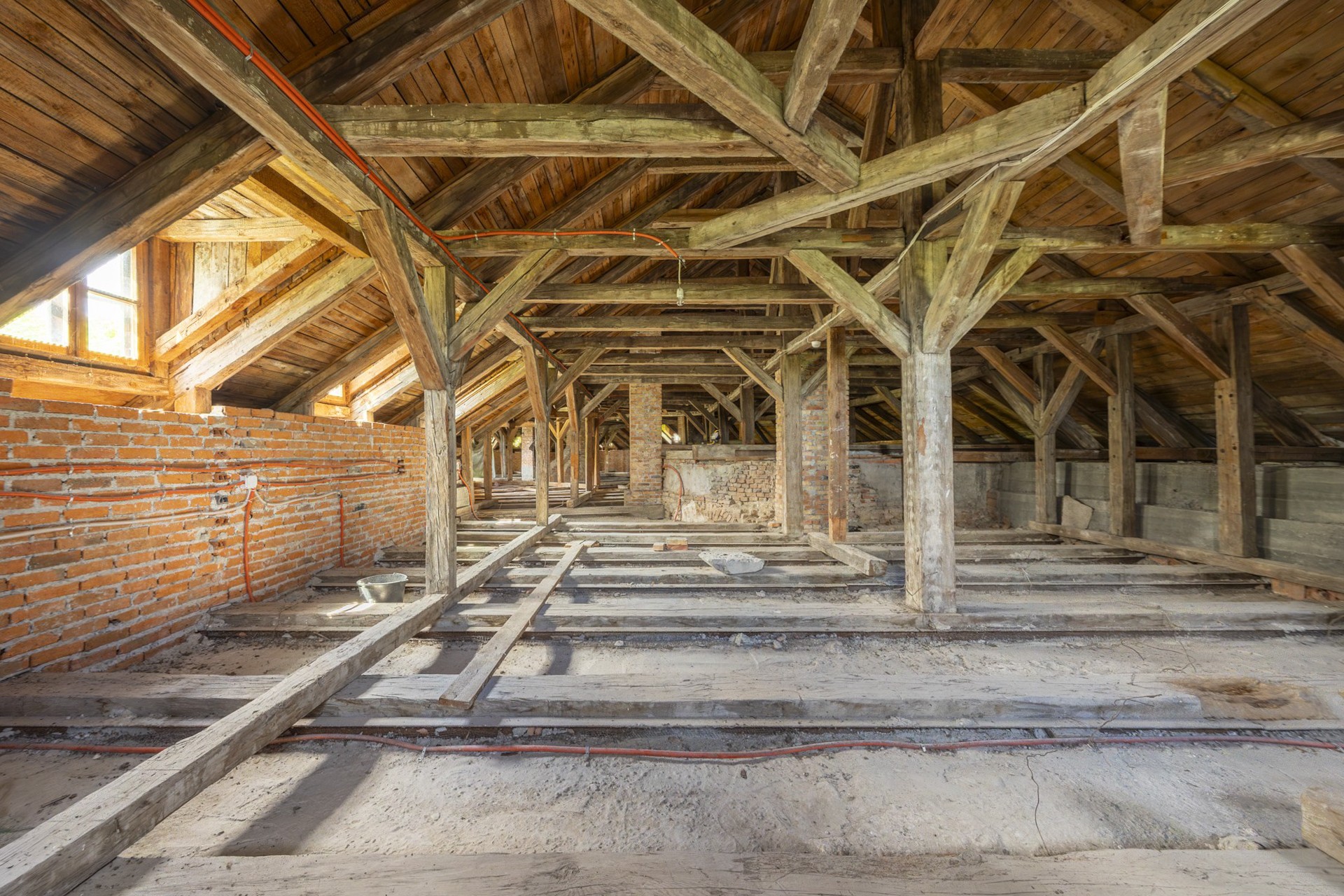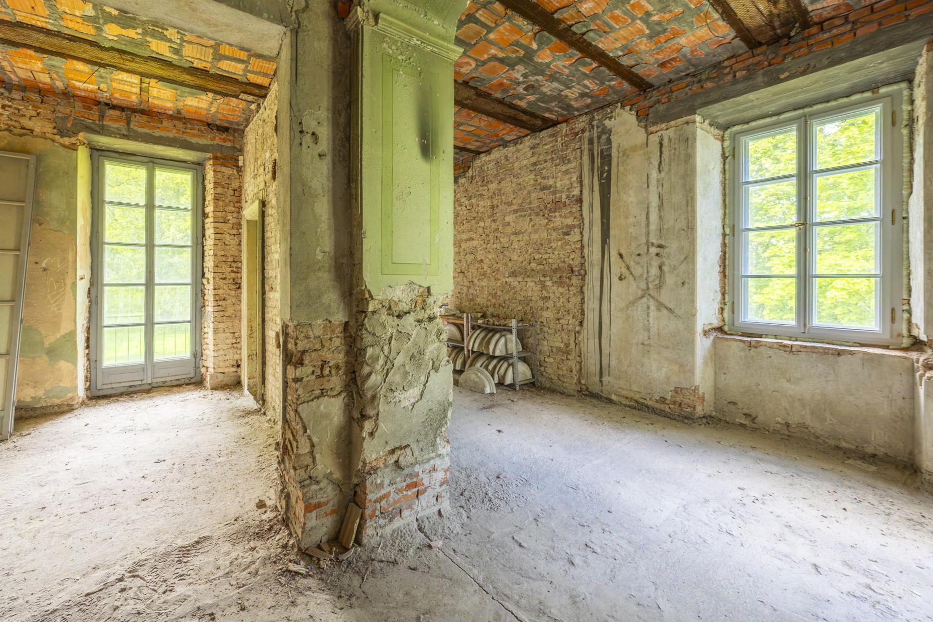 La struttura è complessivamente stabile e rappresenta una solida base per gli interventi di restauro da eseguire. I soffitti originali in travi di legno sono stati sostituiti da solai in cemento moderni, dieci finestre sono state rinnovate secondo lo stile originario con il consenso delle autorità per la tutela dei beni culturali. Il tetto è stato riparato e conservato. Inoltre, l’immobile dispone di allacciamento elettrico e di approvvigionamento idrico autonomo tramite un pozzo.