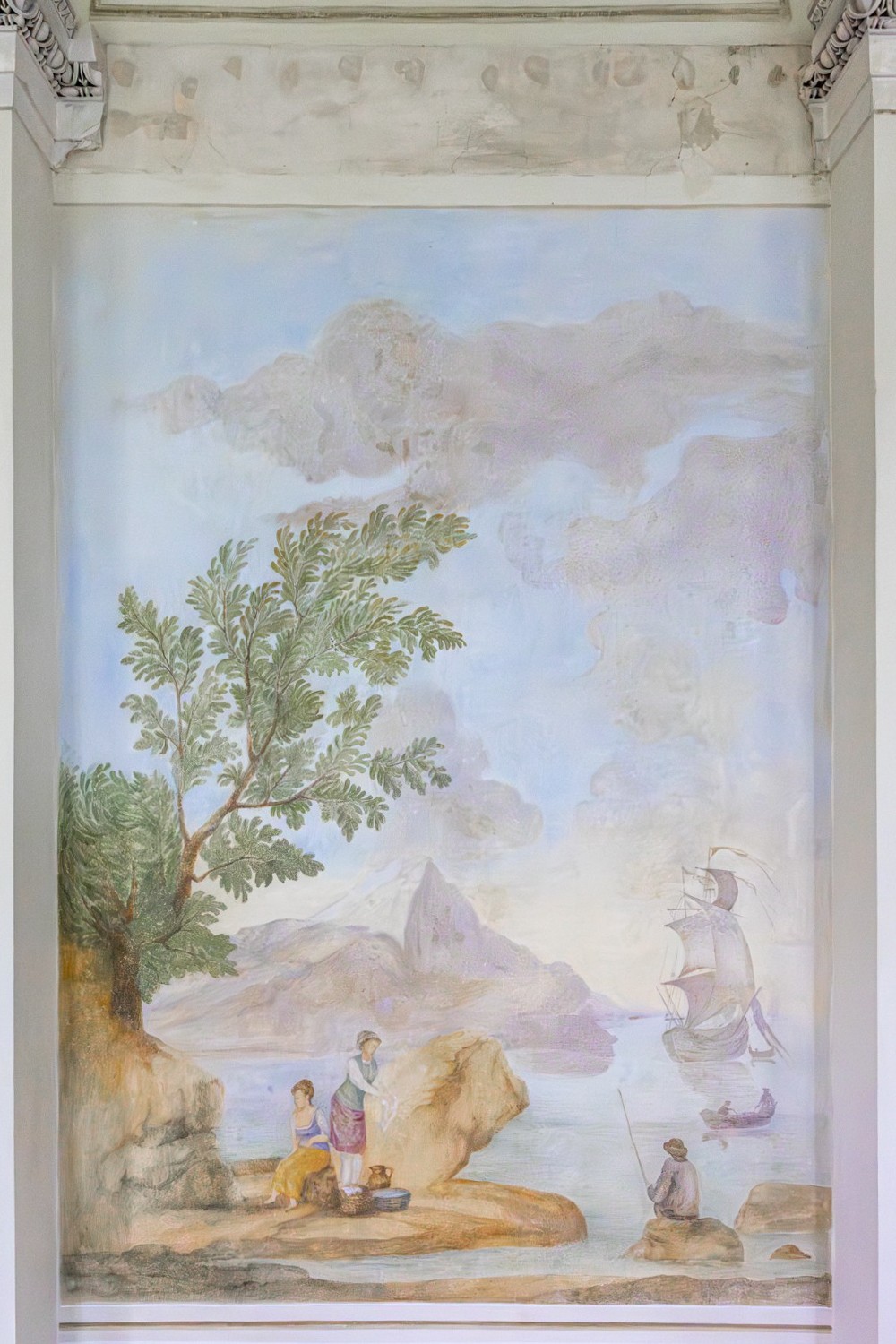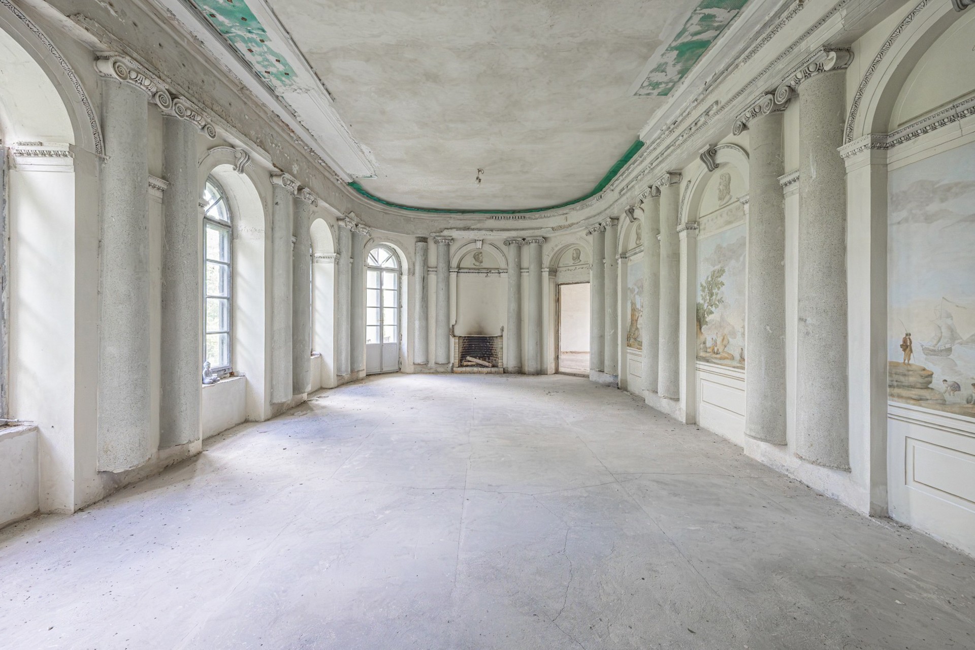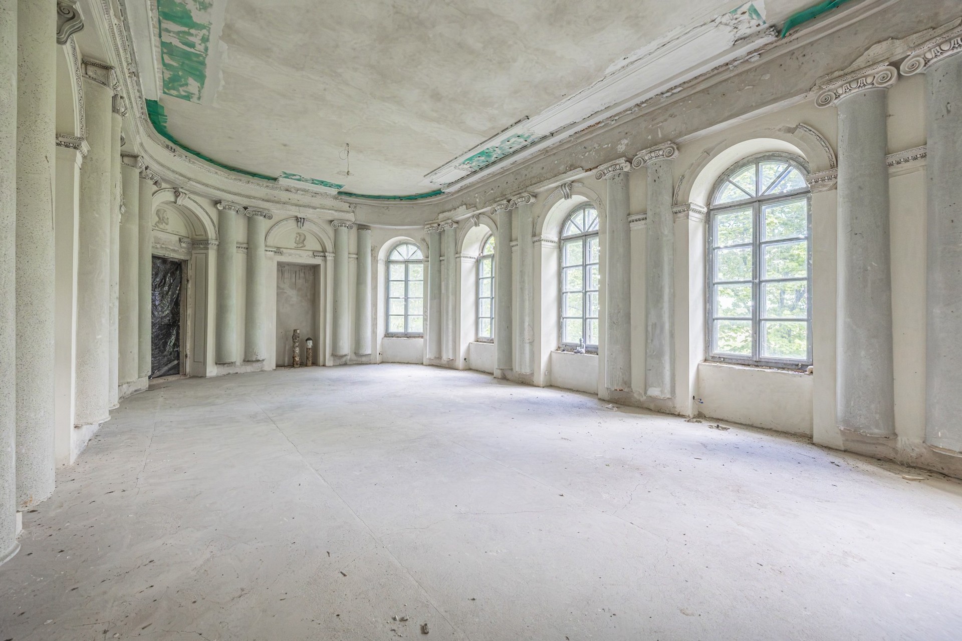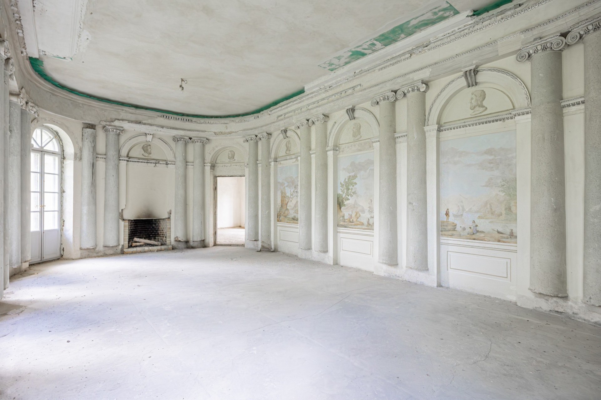Al piano superiore si trovavano gli ambienti rappresentativi, tra cui una grande sala da pranzo e una sala da ballo con colonne semicircolari in mosaico. La sala da ballo è stata parzialmente restaurata, con interventi sulle pitture murali e sostituzione delle finestre.
