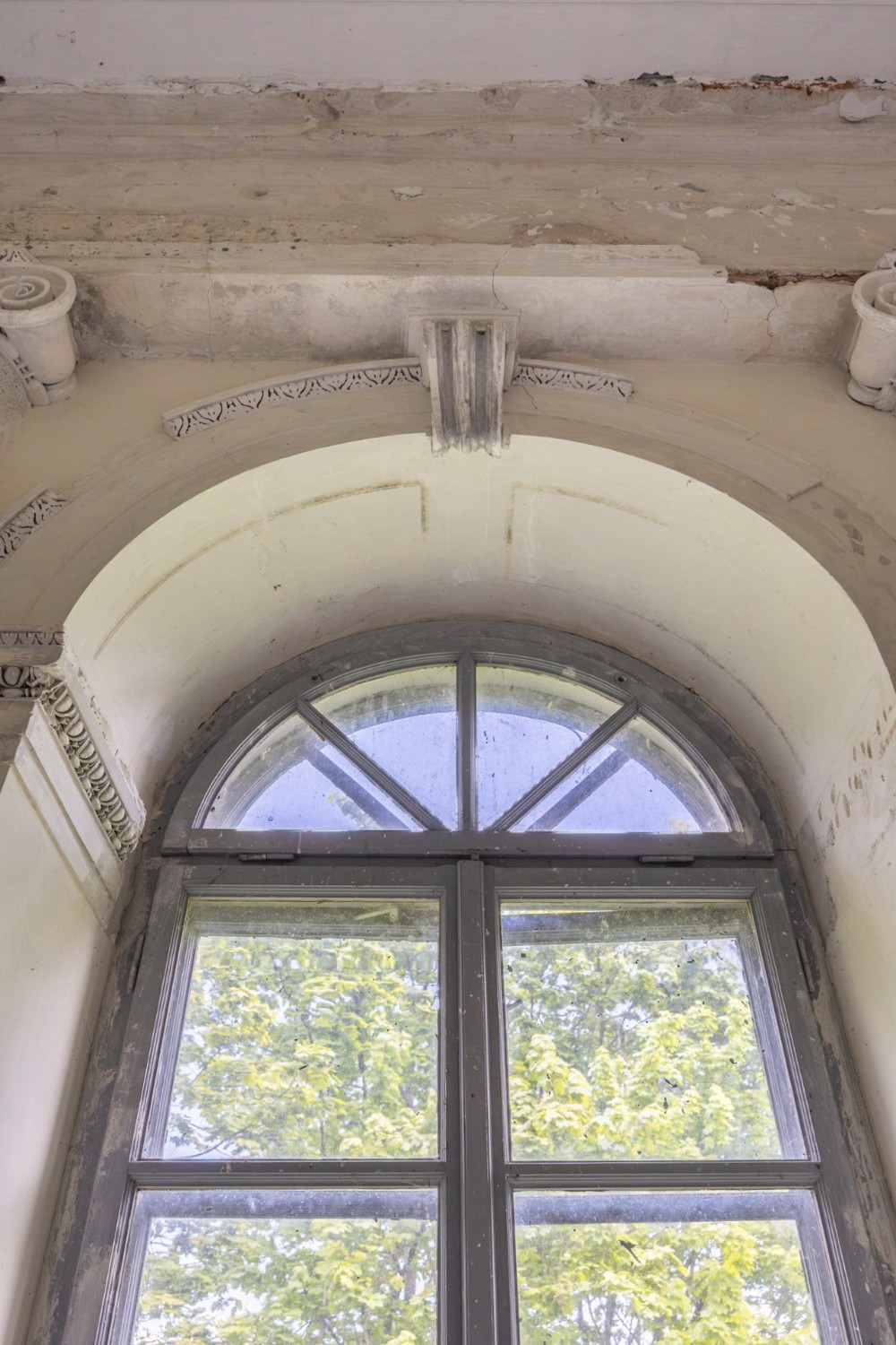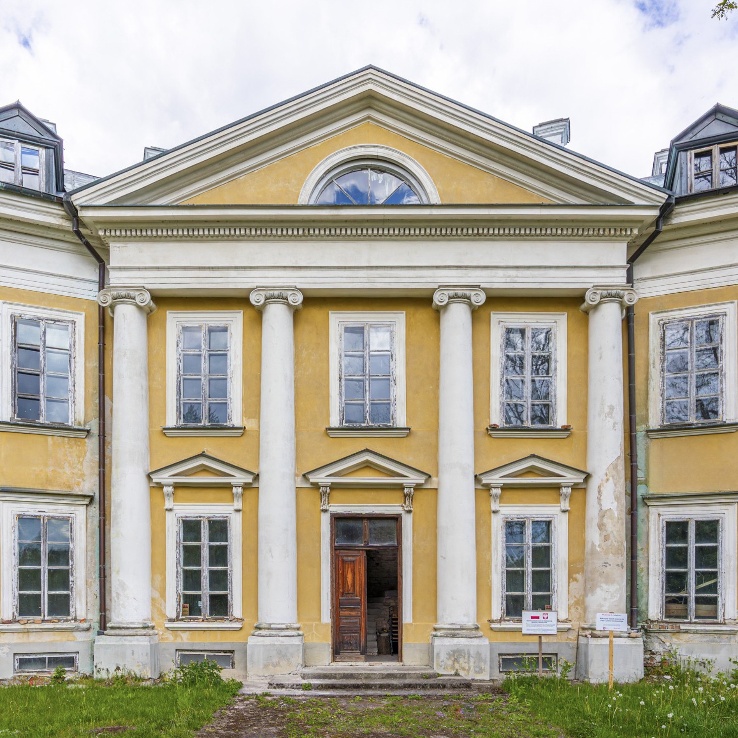 L’ingresso conduce a un ampio spazio interno. Al piano terra si trovavano le camere da letto e una sala da pranzo decorata con affreschi «al fresco» raffiguranti vedute del parco Łazienki di Varsavia e un monumento al re Giovanni III Sobieski. Questi affreschi sono oggi solo parzialmente visibili, ma potrebbero essere restaurati da esperti di conservazione artistica.