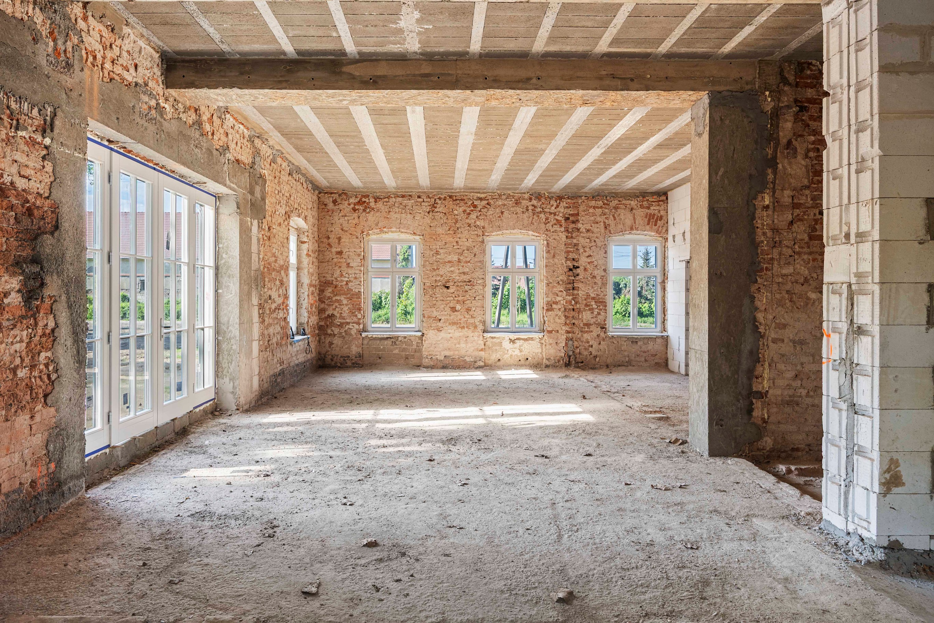 L’edificio principale ha una superficie utile di circa 720 m². Sono stati eseguiti interventi importanti come la completa sostituzione della struttura del tetto, la ristrutturazione dei pavimenti in tutti i piani, l’installazione di nuove finestre e porte esterne, l’impermeabilizzazione e l’abbassamento della cantina con fondamenta rinforzate, oltre alla creazione di drenaggio periferico. L’infrastruttura è completa, con allacciamenti a elettricità, acqua e fognature.