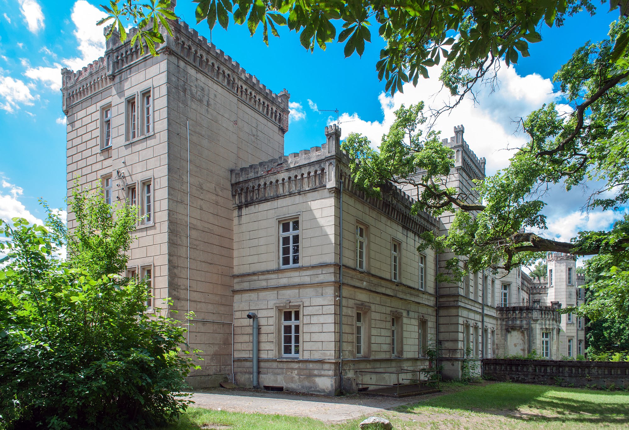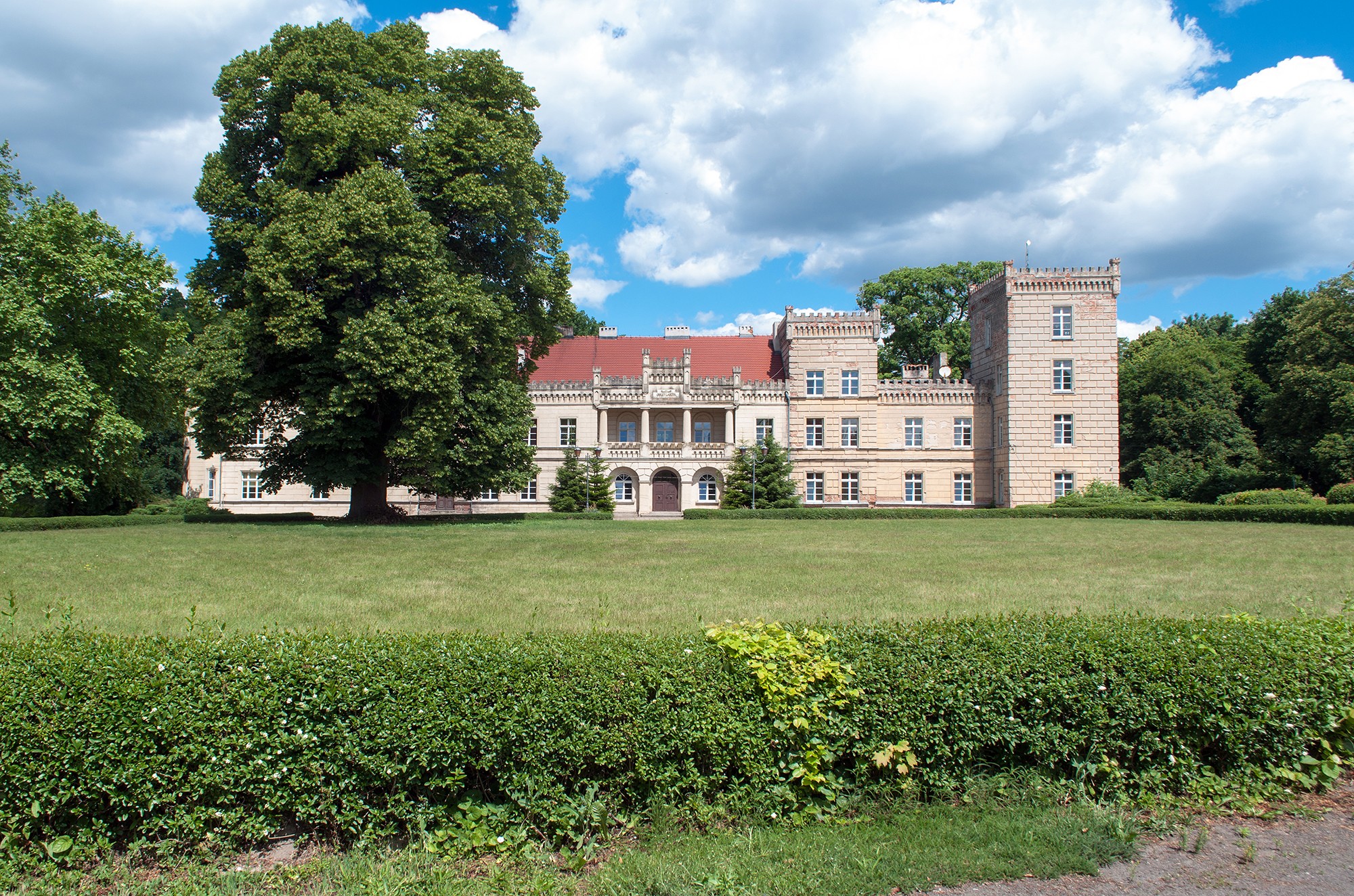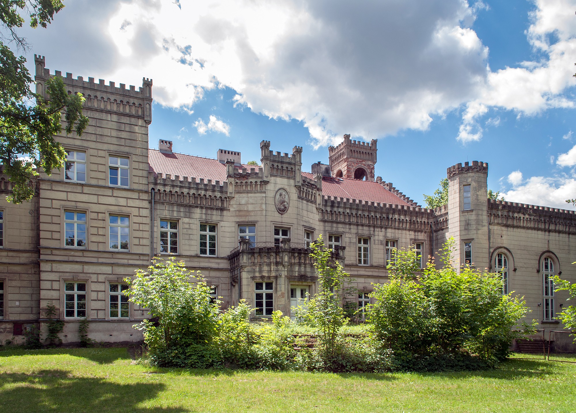 A livello locale, la residenza è conosciuta come „Pałac Kurnatowskich”, in onore della famiglia Kurnatowski, che tra il 1904 e il 1911 ristrutturò l'edificio originale del XVIII secolo in stile neogotico. Il castello completato all'inizio del XX secolo era considerato una delle residenze più moderne nella provincia prussiana di Posen e disponeva di riscaldamento centralizzato, elettricità, bagni moderni e telefoni.