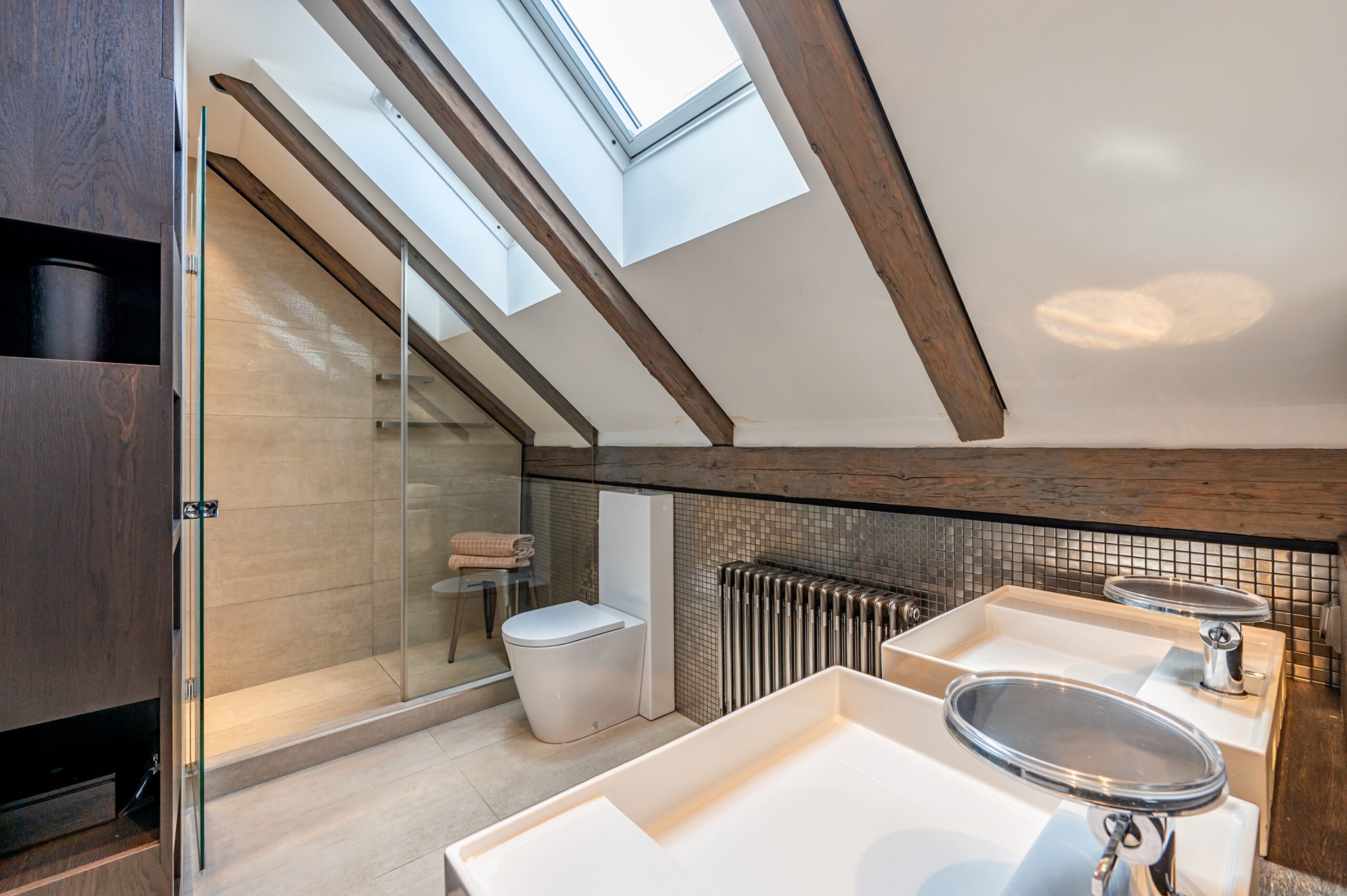 La disposizione comprende 9 bagni, una elegante scala centrale, un ascensore e un prestigioso studio situato nella torre iconica con finestre circolari e una vista mozzafiato.