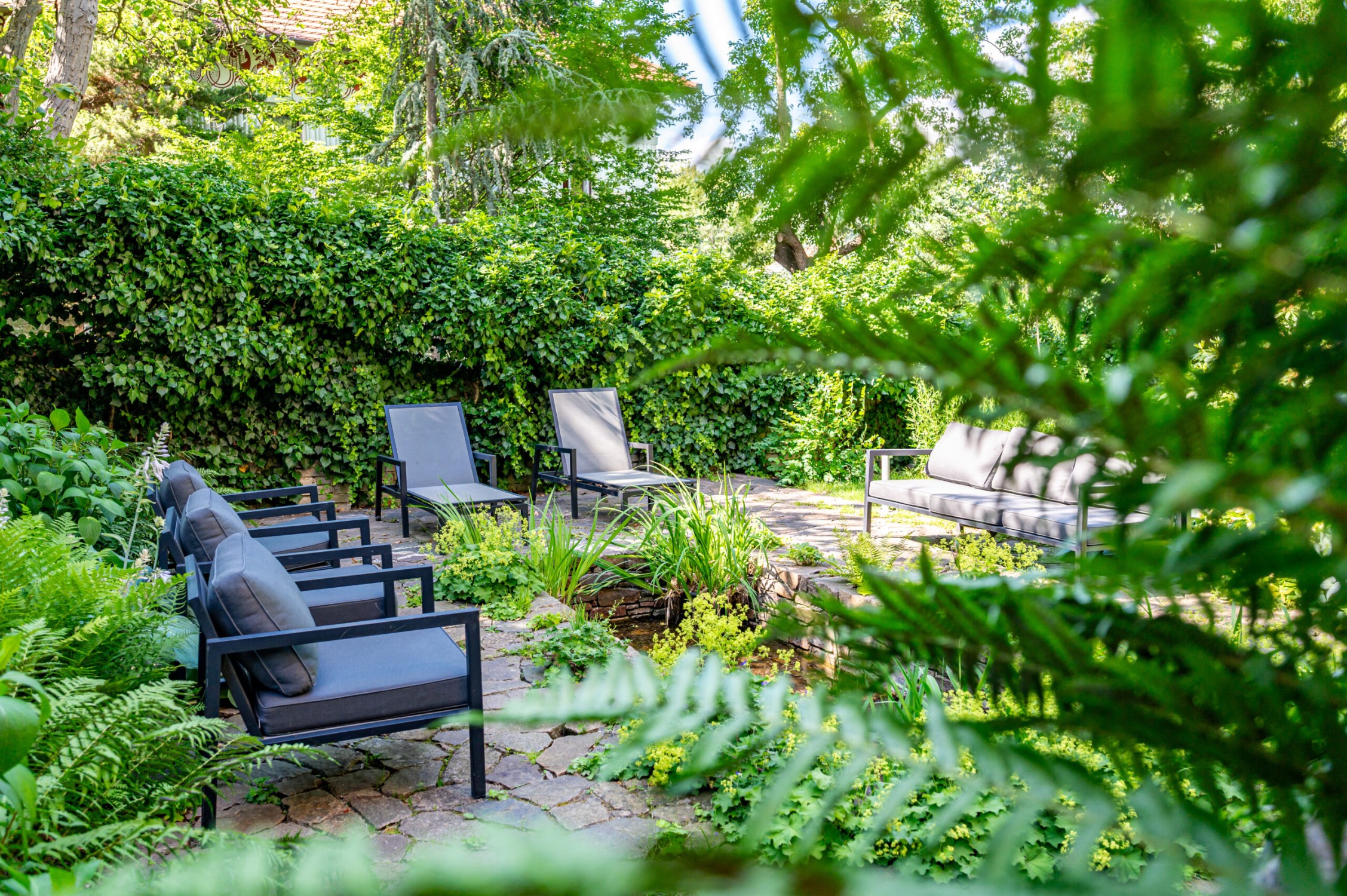 La proprietà comprende un terreno privato con vegetazione matura, uno stagno e un’area tranquilla per il relax, che garantisce completa privacy e un’atmosfera intima.