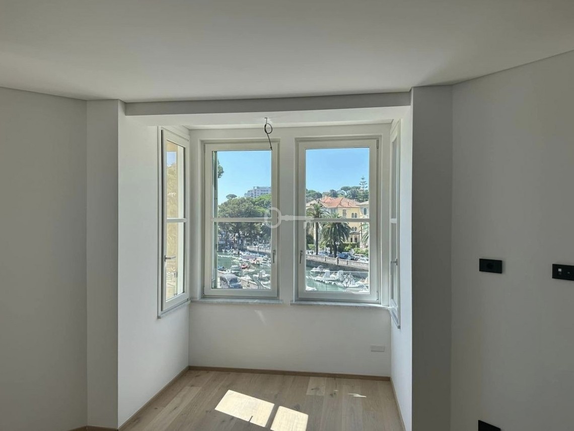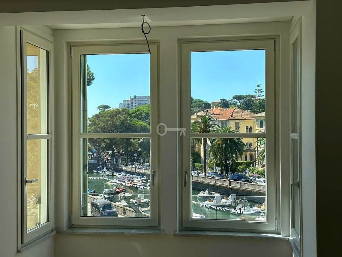 Appartamento di circa 80 m² in una villa Liberty completamente restaurata a Rapallo, con vista aperta sul mare e sul porto turistico. Il restauro ha preservato il carattere architettonico originario integrando al contempo impianti moderni, tra cui isolamento e soluzioni acustiche di alto livello.