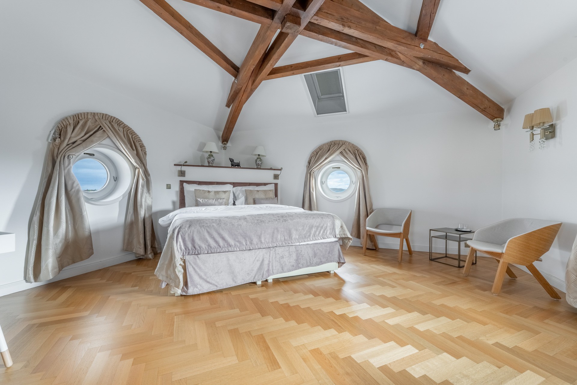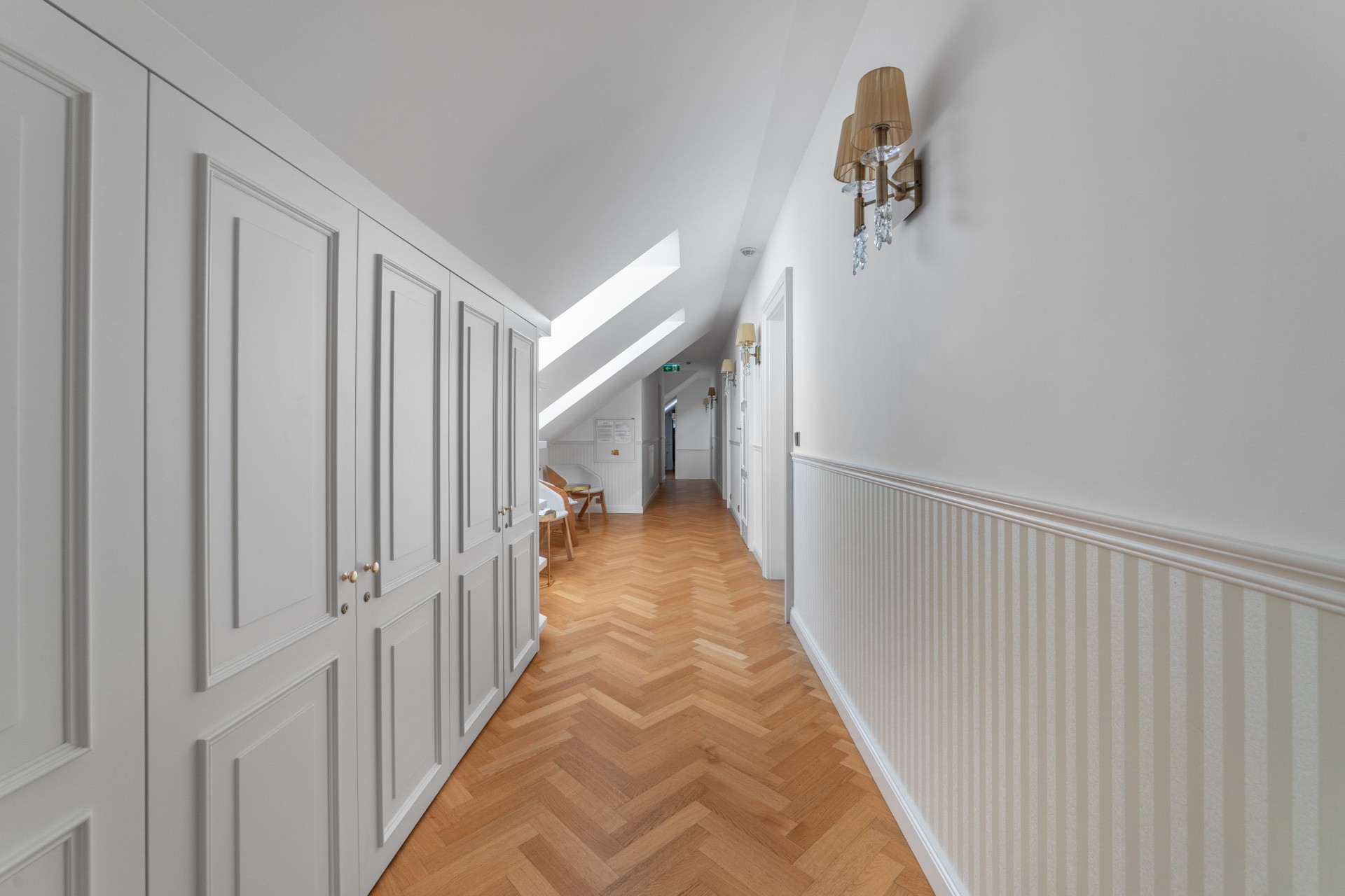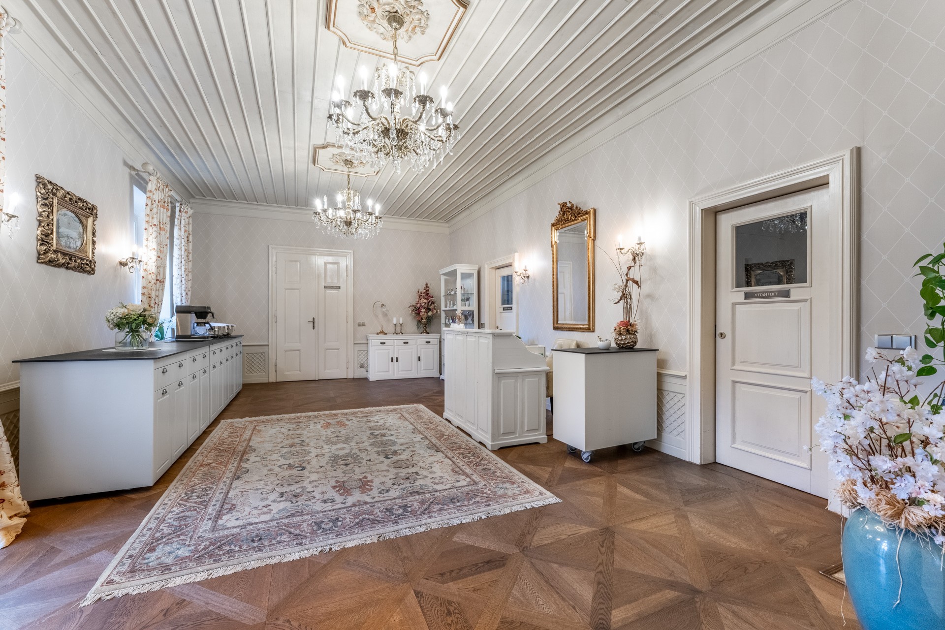 Riscaldamento con pompe di calore aria-acqua, materiali di pregio – parquet in rovere, pavimenti in ceramica, illuminazione Wranovsky e Mantra, arredi TON e BoConcept, cucina professionale Redfox ed Electrolux. Sistema di sicurezza con telecamere incluso.
