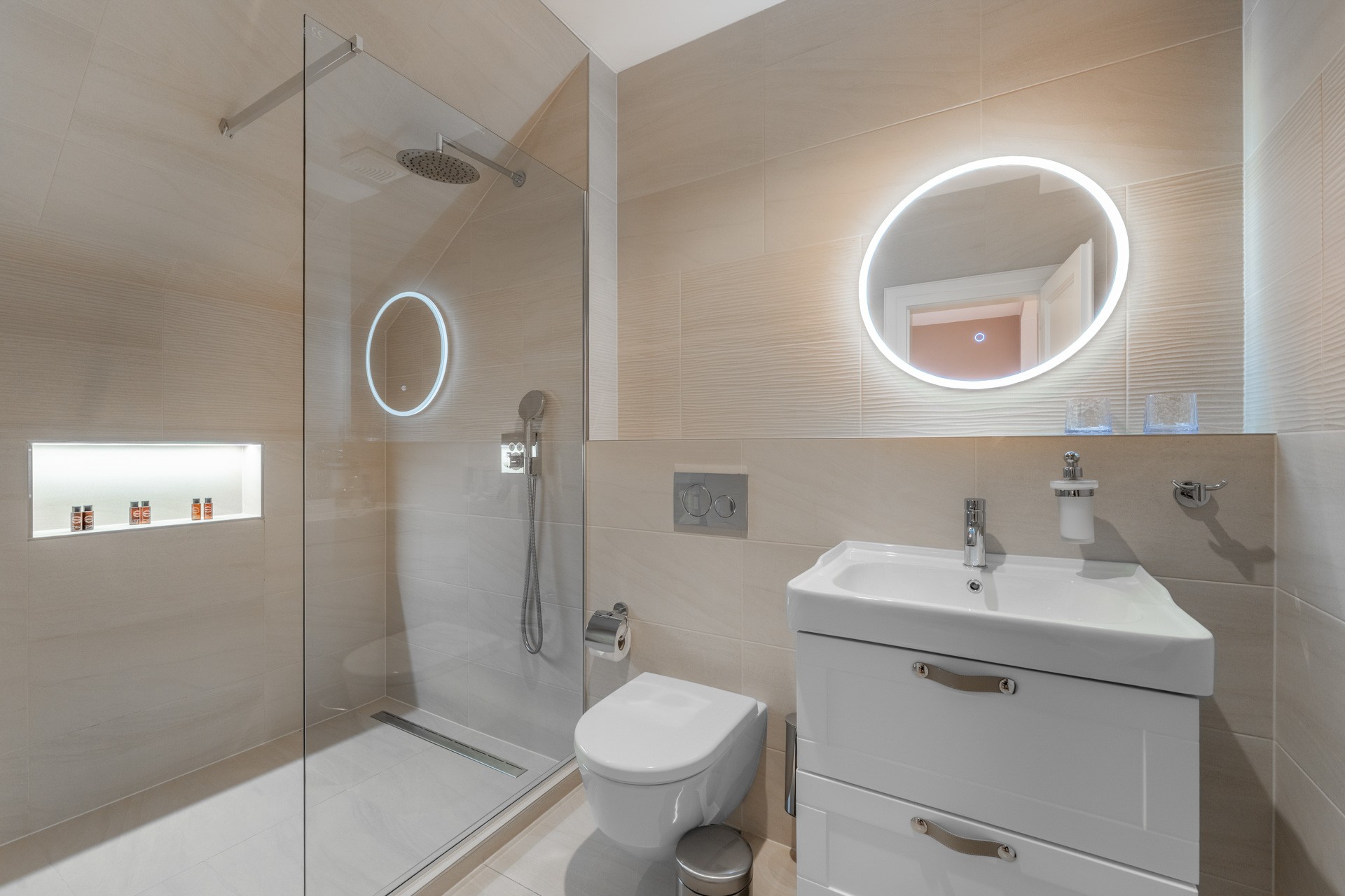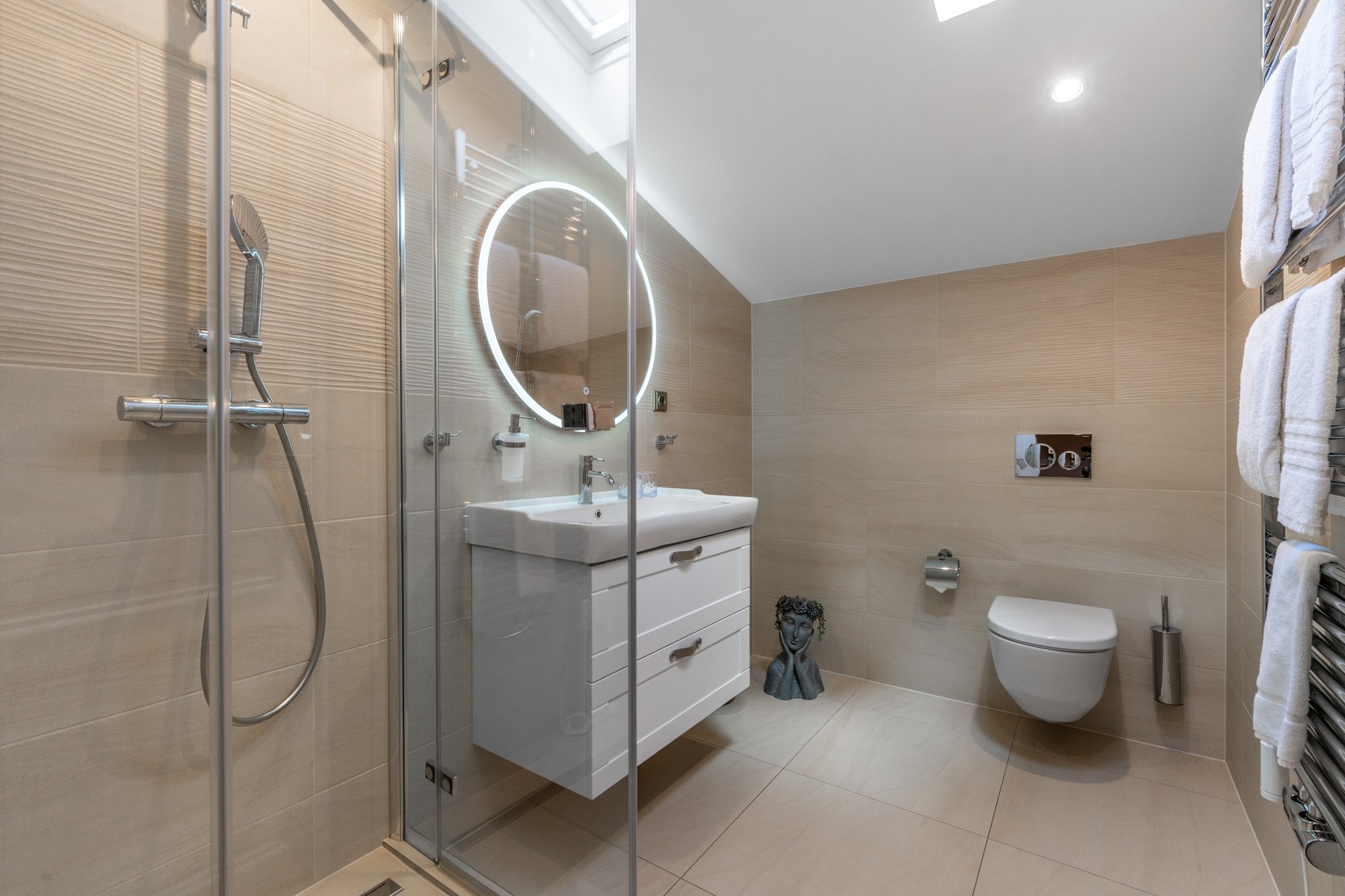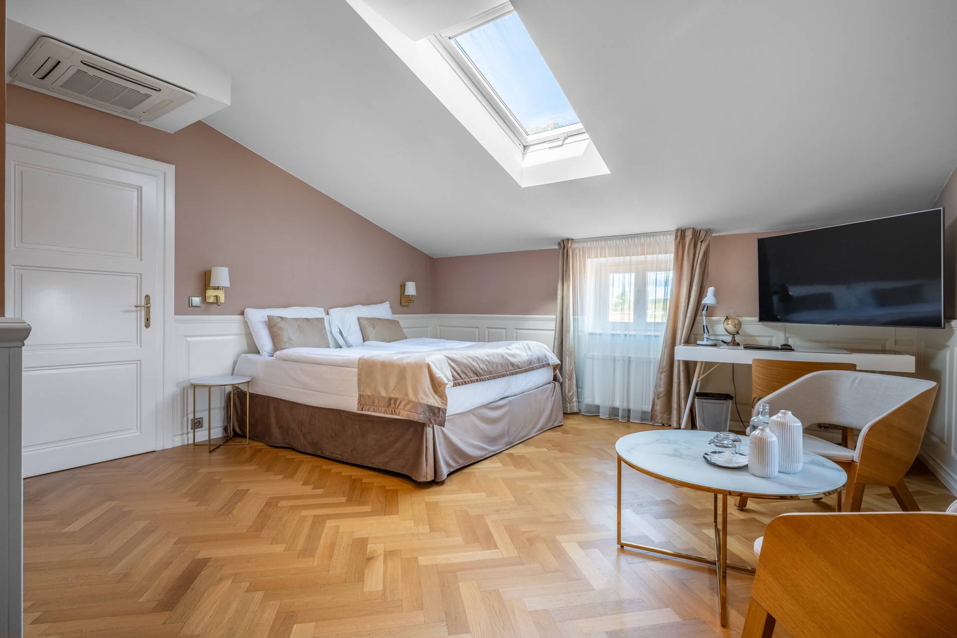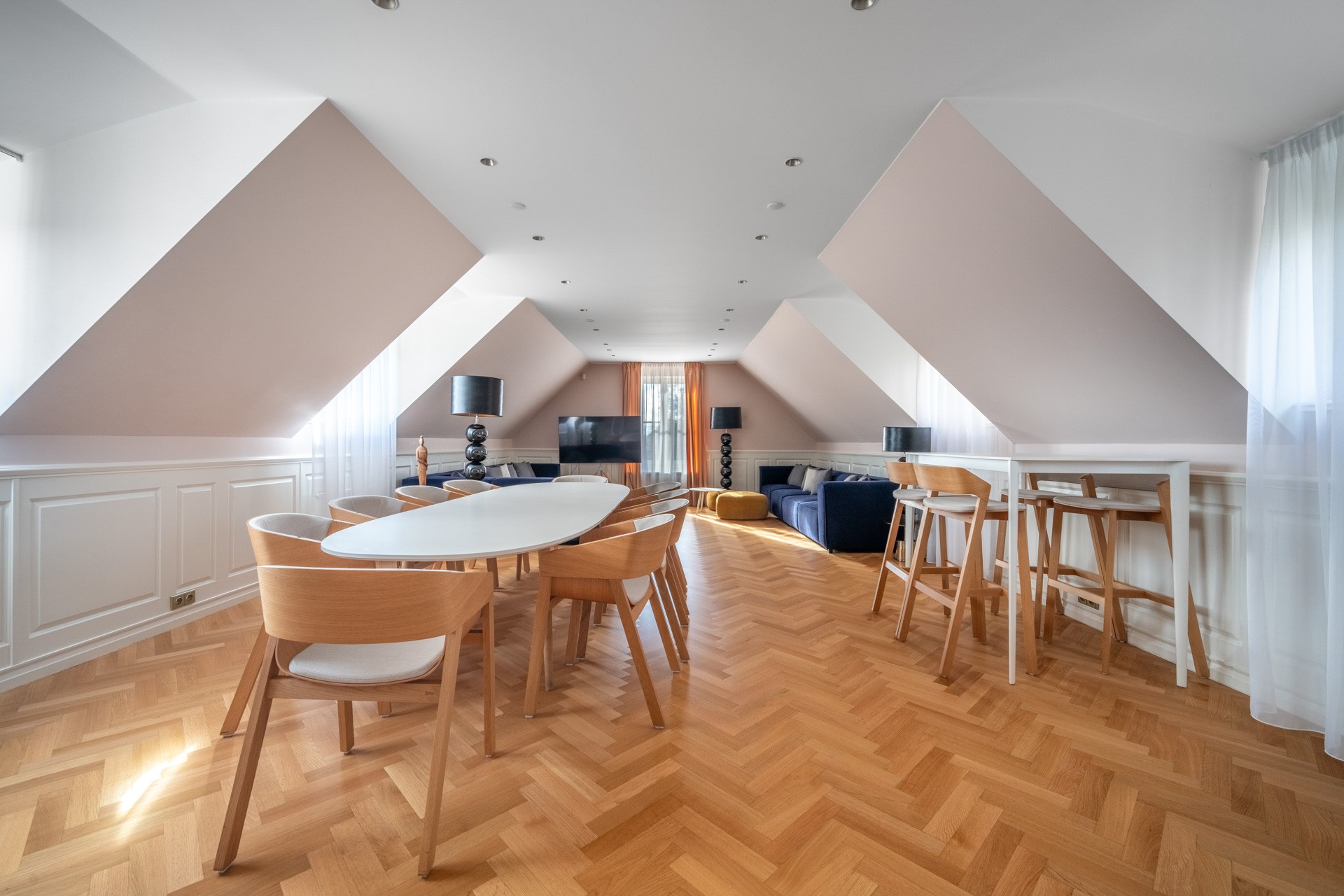 Riscaldamento con pompe di calore aria-acqua, materiali di pregio – parquet in rovere, pavimenti in ceramica, illuminazione Wranovsky e Mantra, arredi TON e BoConcept, cucina professionale Redfox ed Electrolux. Sistema di sicurezza con telecamere incluso.