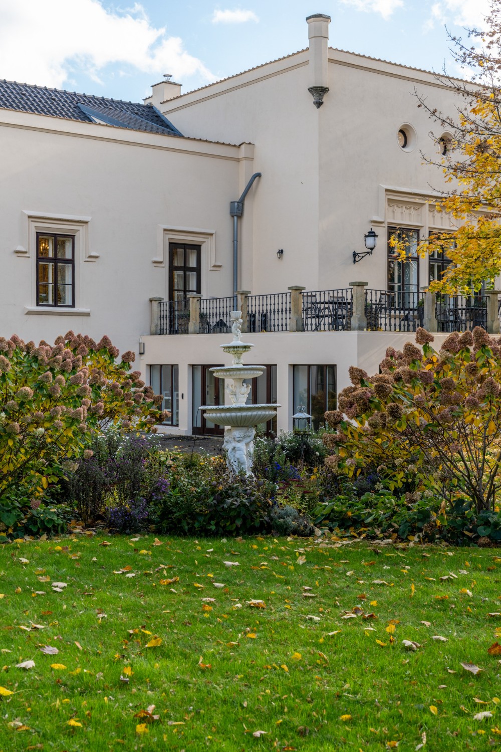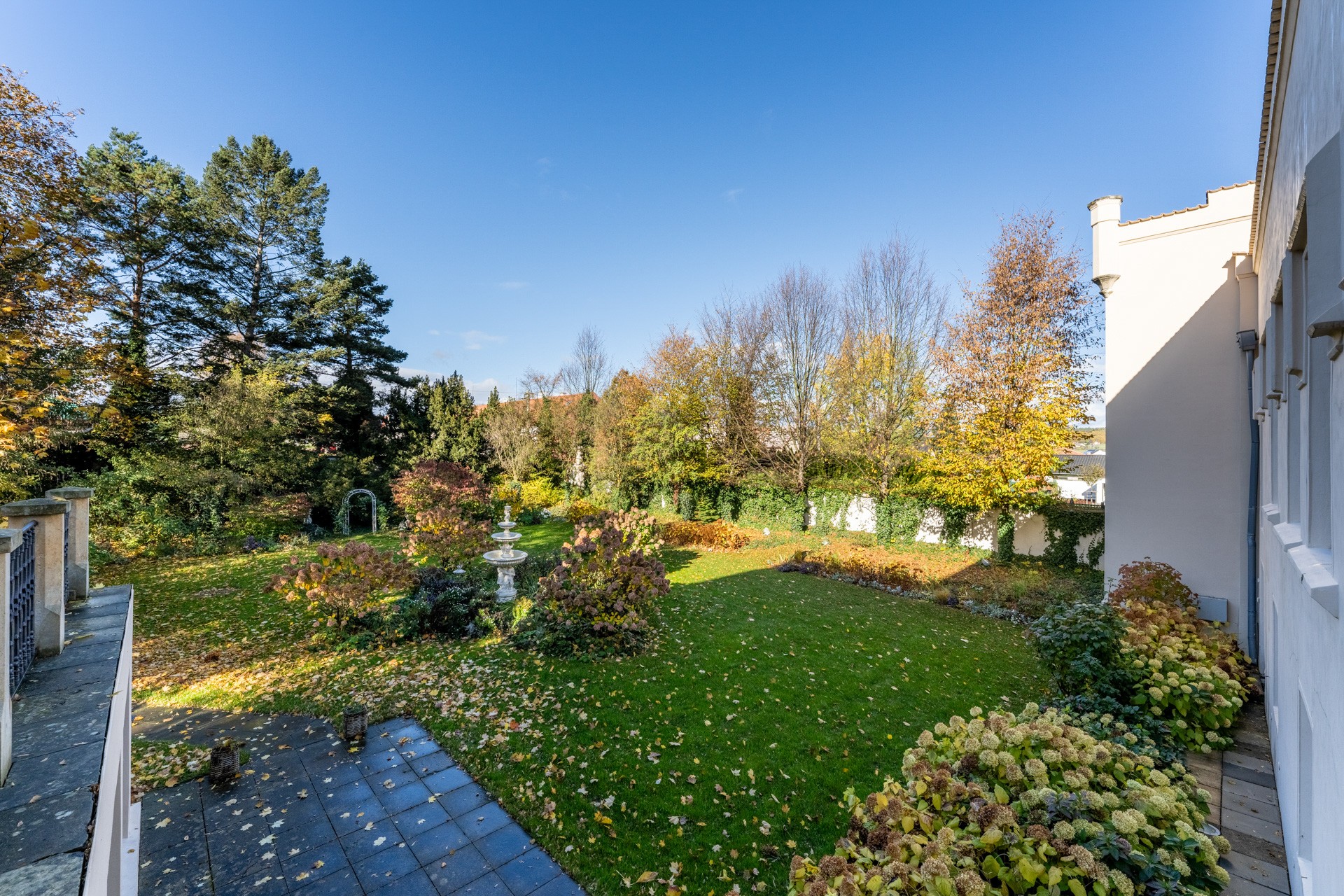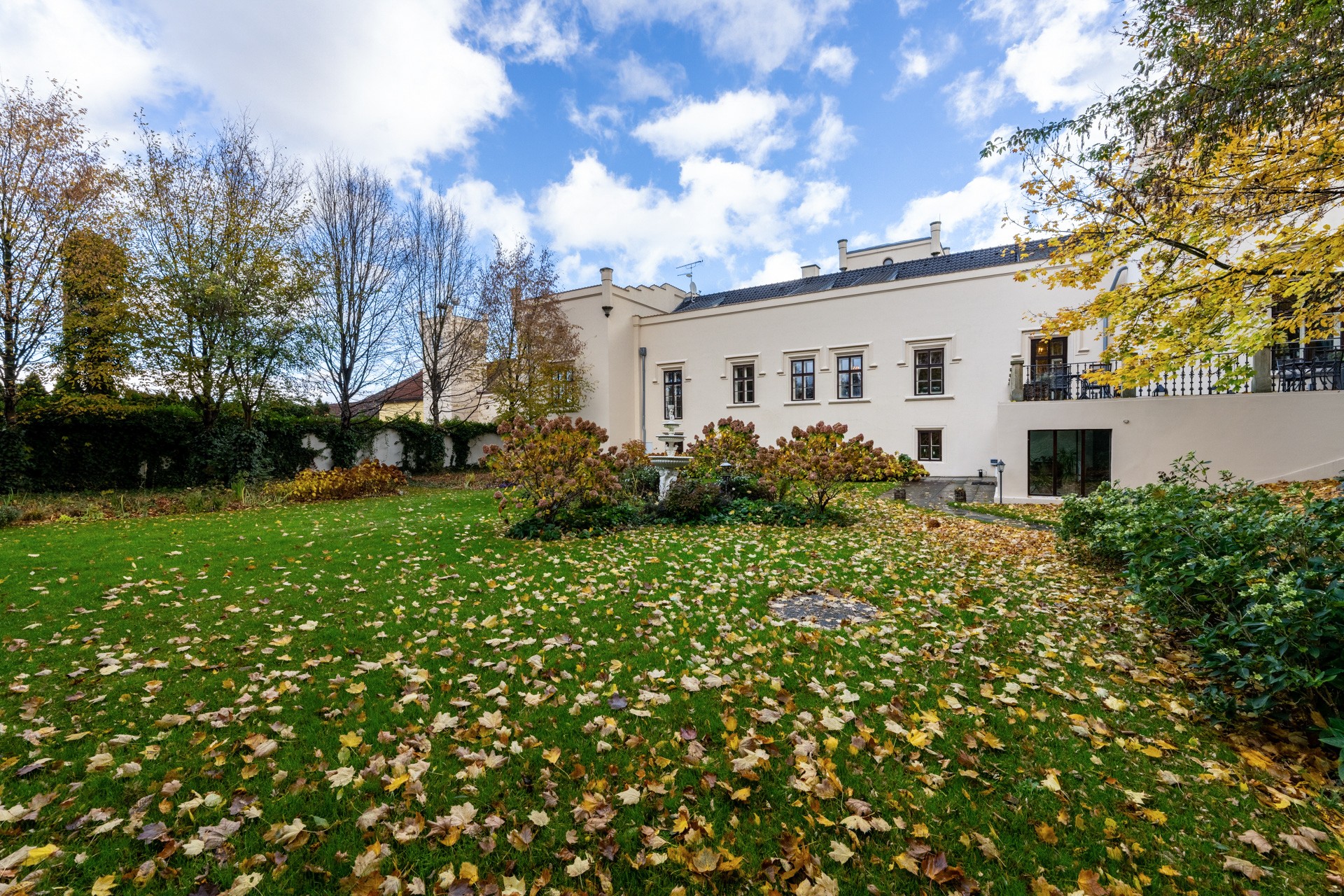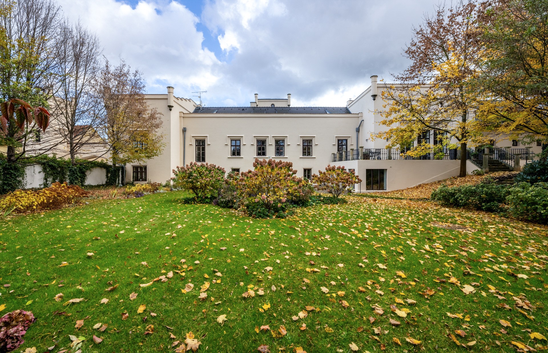 Al centro si trova un ampio salone con camino, elegante e accogliente, perfetto per ricevere ospiti. Il salone si apre su una grande terrazza e su un parco di 4.253 m², con stagno, padiglione e fontana. Il giardino combina uno stile paesaggistico inglese con la simmetria dei giardini francesi.