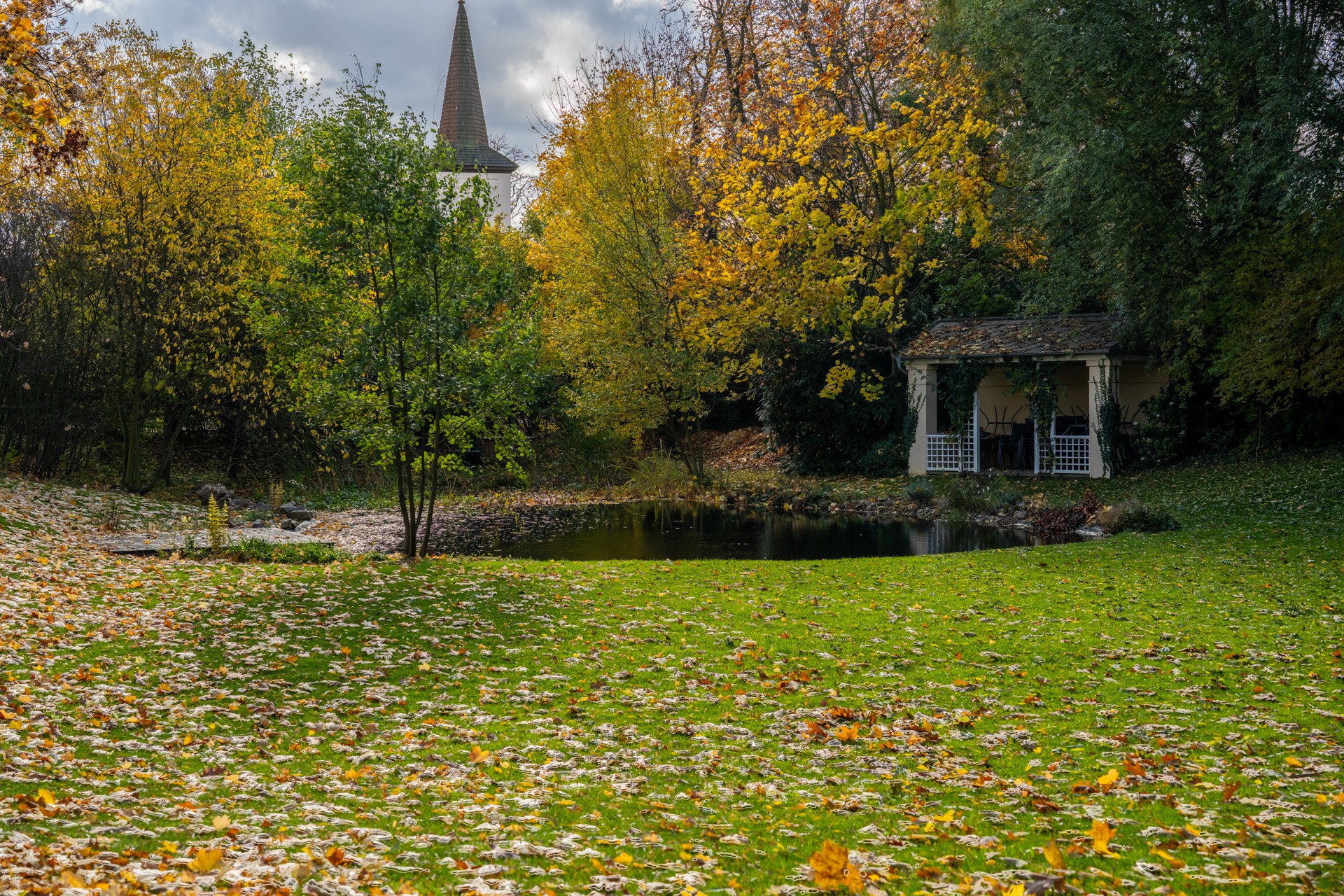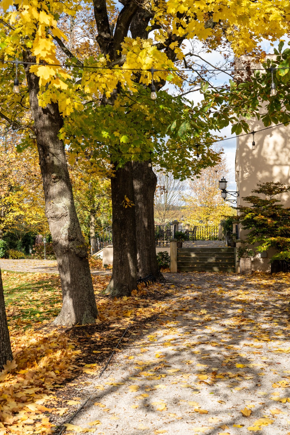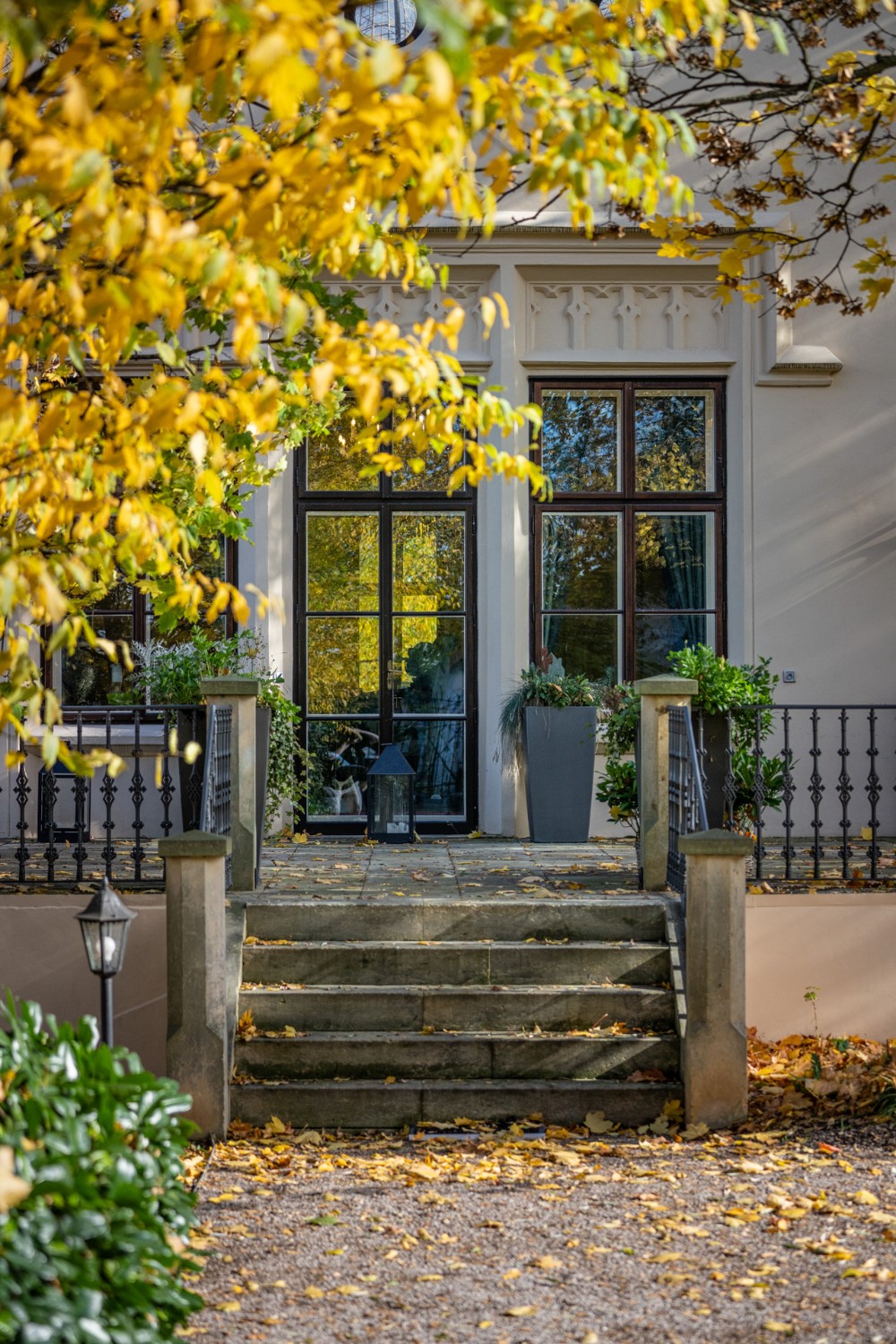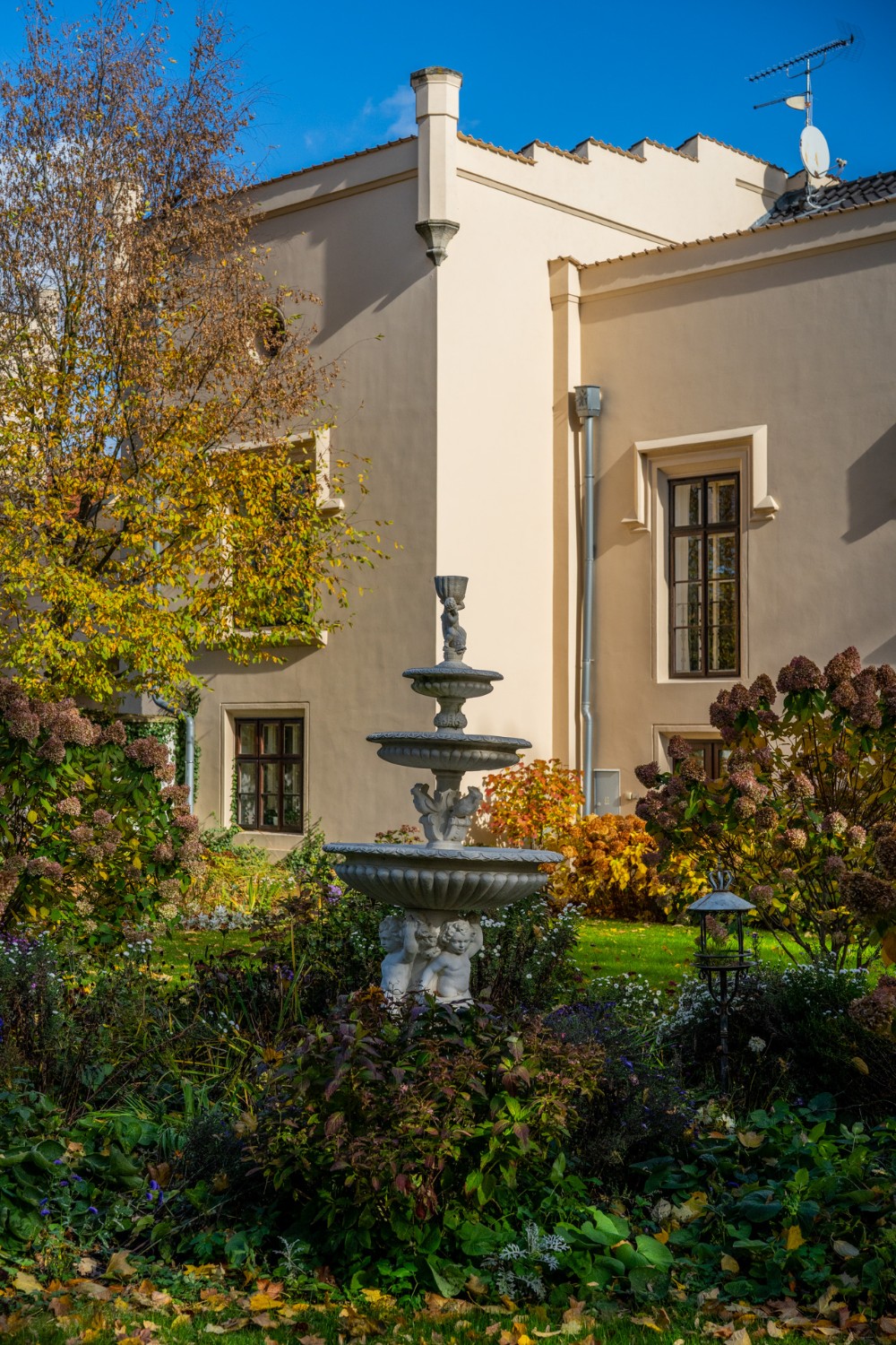 Al centro si trova un ampio salone con camino, elegante e accogliente, perfetto per ricevere ospiti. Il salone si apre su una grande terrazza e su un parco di 4.253 m², con stagno, padiglione e fontana. Il giardino combina uno stile paesaggistico inglese con la simmetria dei giardini francesi.
