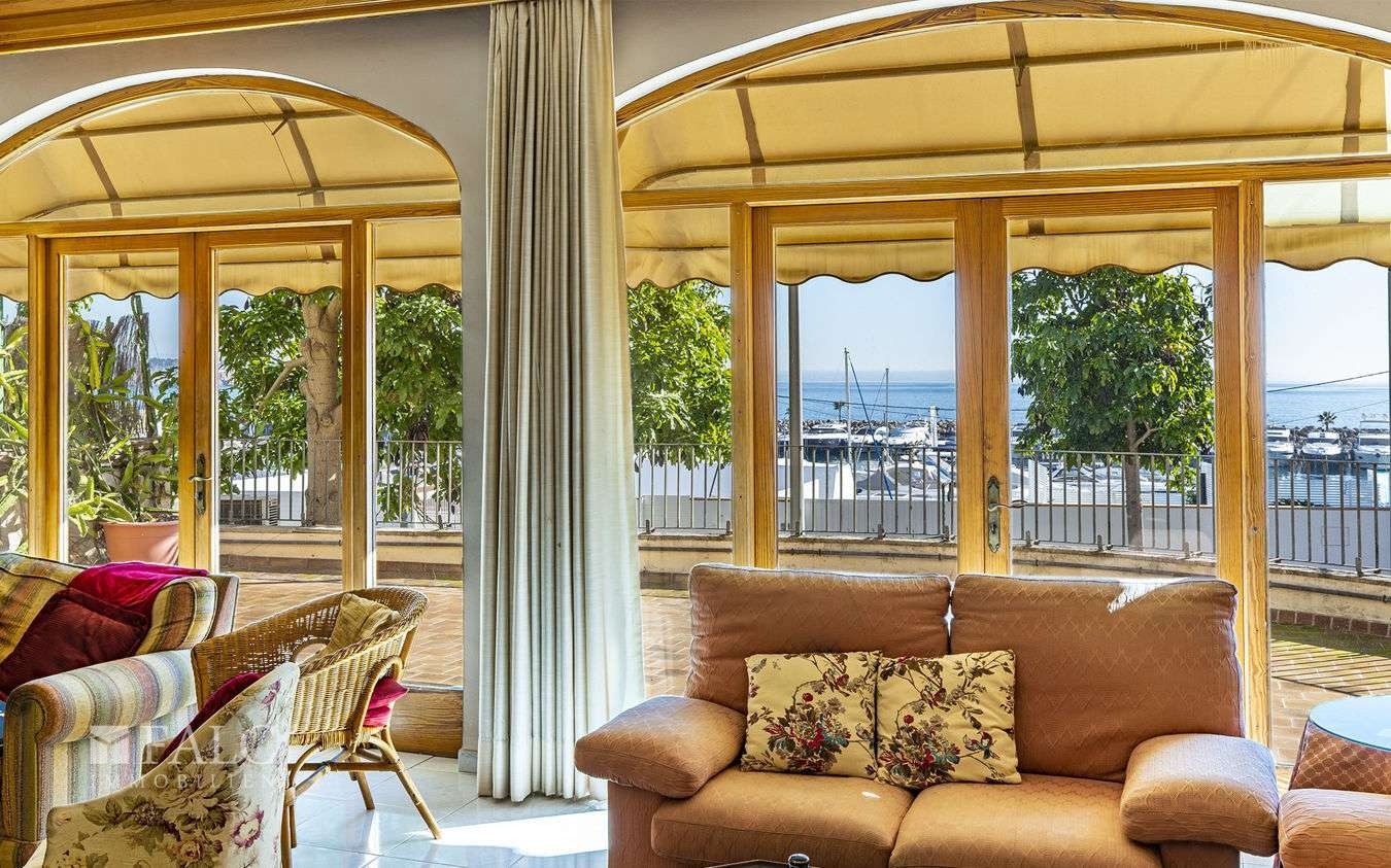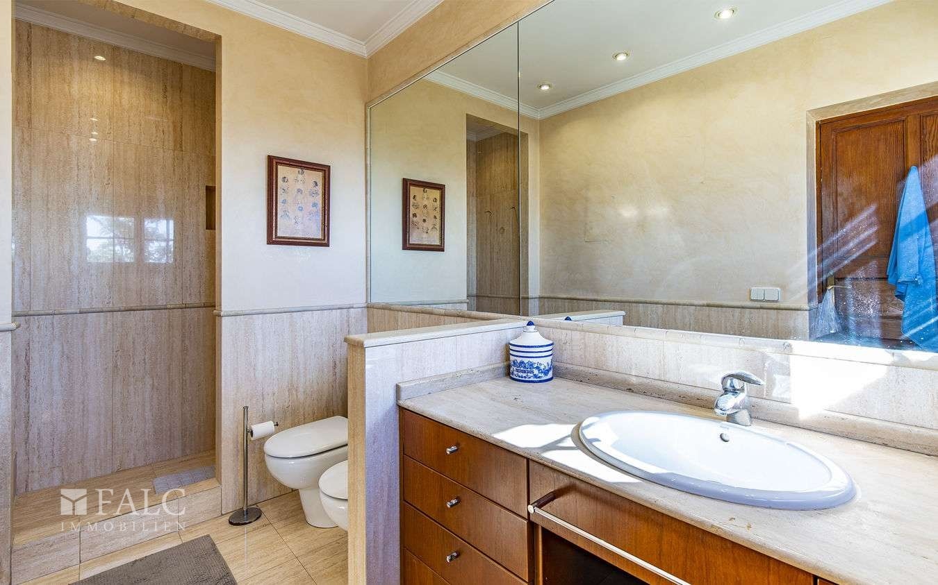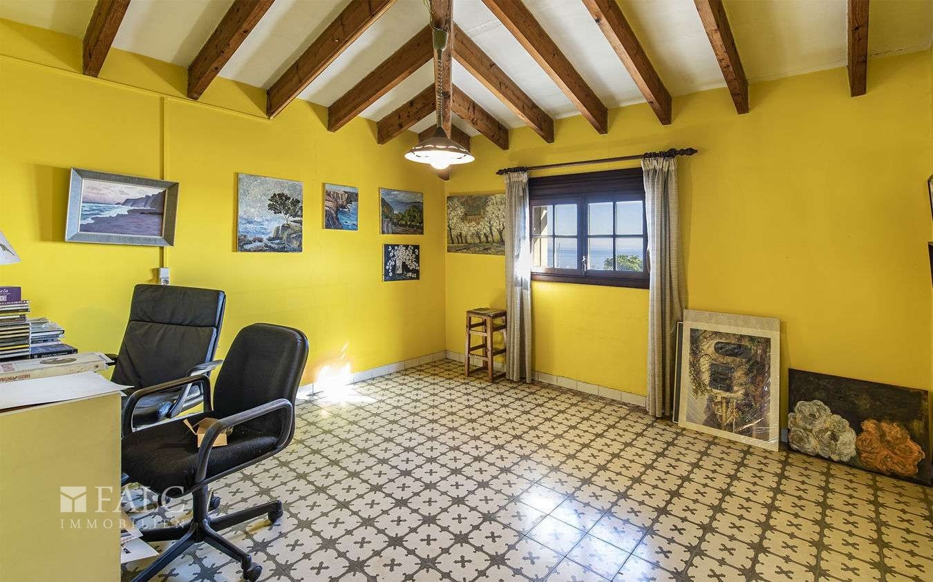 La distribuzione della proprietà è la seguente: al piano terra si trovano un’area barbecue con cucina esterna e veranda, una terrazza e un garage di circa 59 m². Il primo piano dispone di quattro camere matrimoniali e due bagni. Il secondo livello abitativo offre ulteriori cinque camere matrimoniali. Dal terzo piano si accede a una torre con terrazza e vista sul mare, sulle montagne e sul porto di Port Calanova. Un edificio annesso completa la proprietà con due camere da letto, un soggiorno e una cucina.