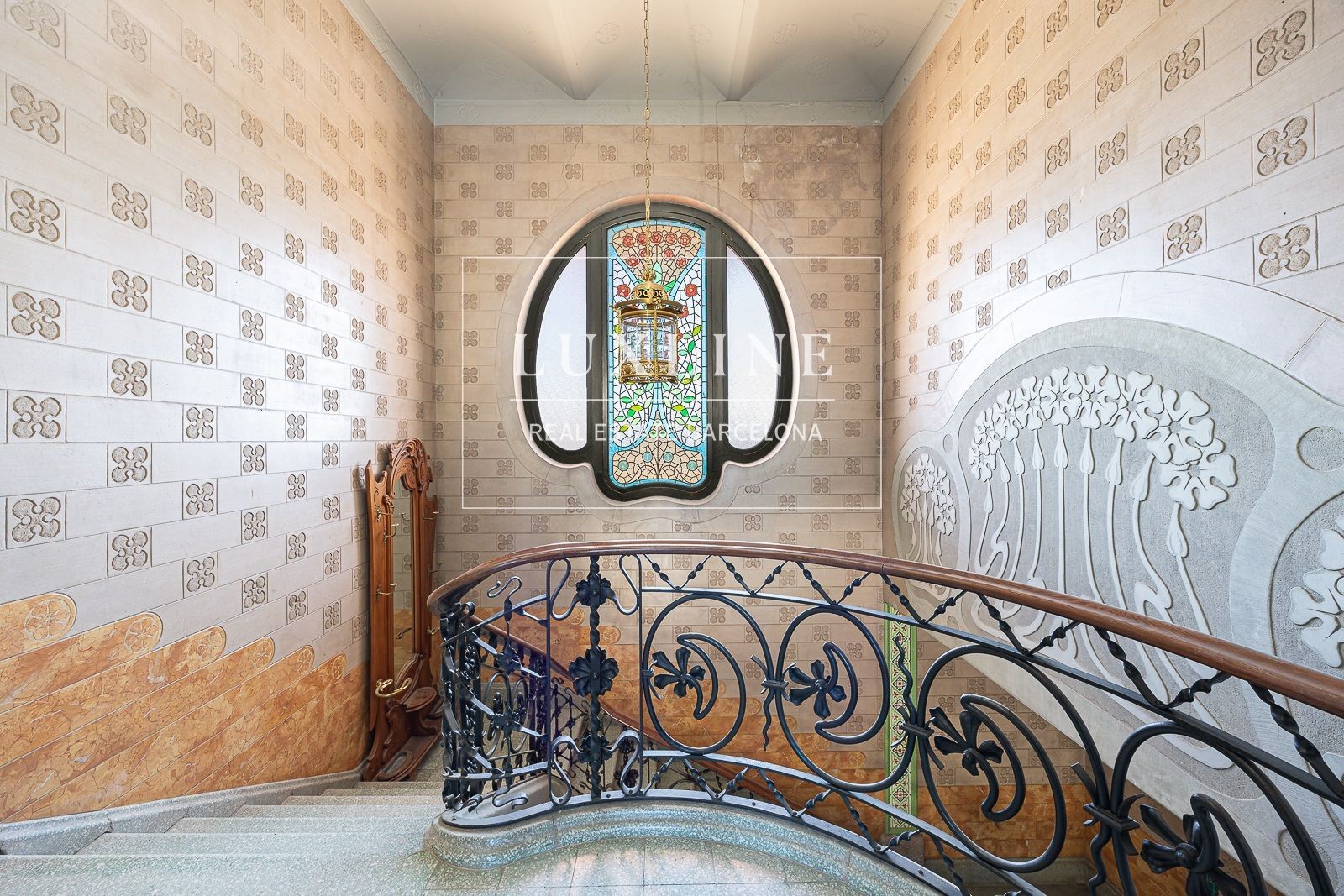 L’edificio rappresenta un esempio di modernismo catalano, progettato dall’architetto Ignasi Oms i Ponsa, contemporaneo di Antoni Gaudí. Le forme neoclassiche si combinano con dettagli modernisti, mentre le facciate, le decorazioni in marmo, le volte in pietra e i mosaici mostrano grande cura artigianale. All’interno, spazi generosi, soffitti alti ed elementi storici conservati mantengono il carattere dell’epoca, offrendo allo stesso tempo comfort moderno.