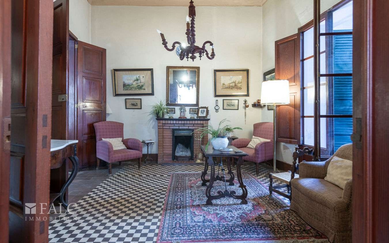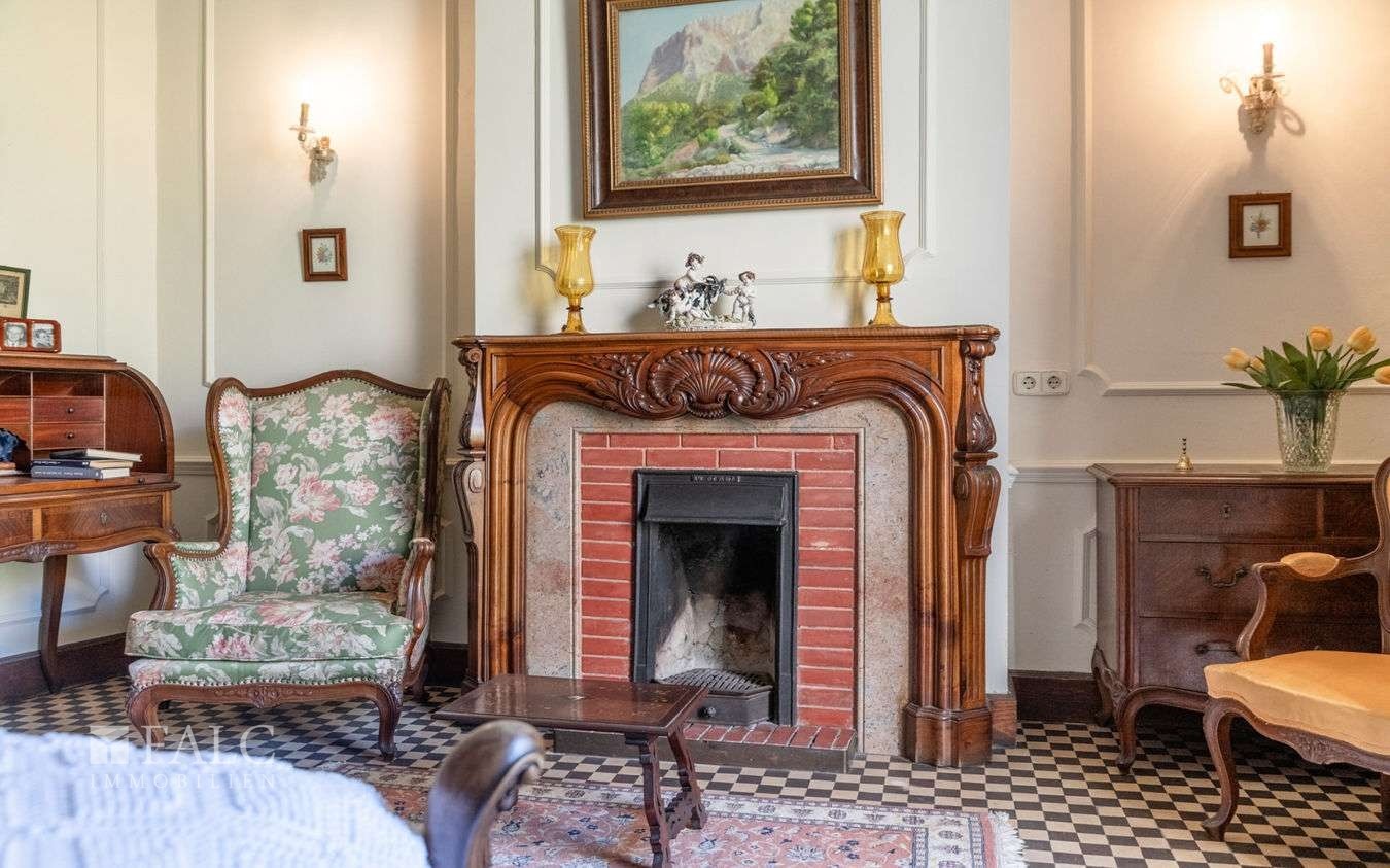 La superficie abitabile di circa 550 m² si sviluppa su tre piani e un seminterrato. Dall’imponente hall d’ingresso al foyer aperto con dettagli storici, la grandiosità di questa imponente casa padronale è evidente fin dal primo momento.