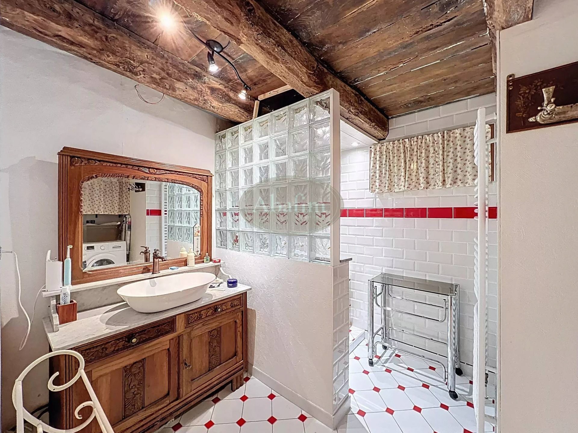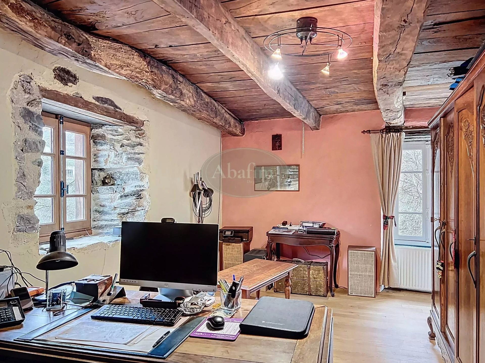 Al piano giardino si trovano laboratorio, garage e un ambiente quasi completamente ristrutturato con vista sul fiume. Il tetto in ardesia è stato rinnovato nel 2010. Una sorgente privata, riscaldamento centralizzato a gasolio e a legna, nonché un montacarichi interno garantiscono l’autonomia della proprietà. La zona abitativa principale è protetta dal rischio di inondazioni.