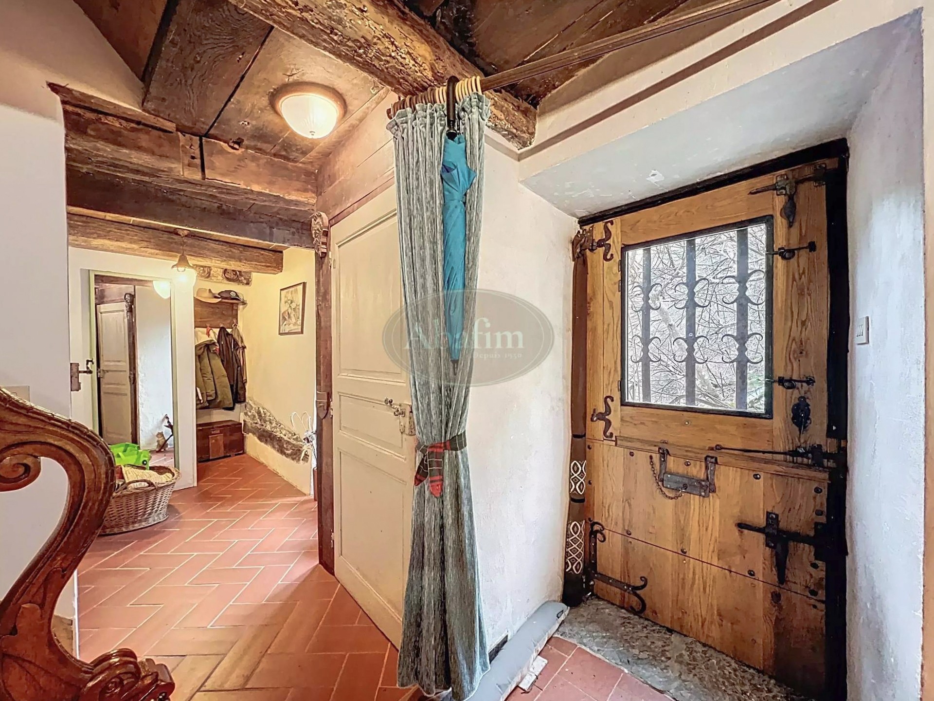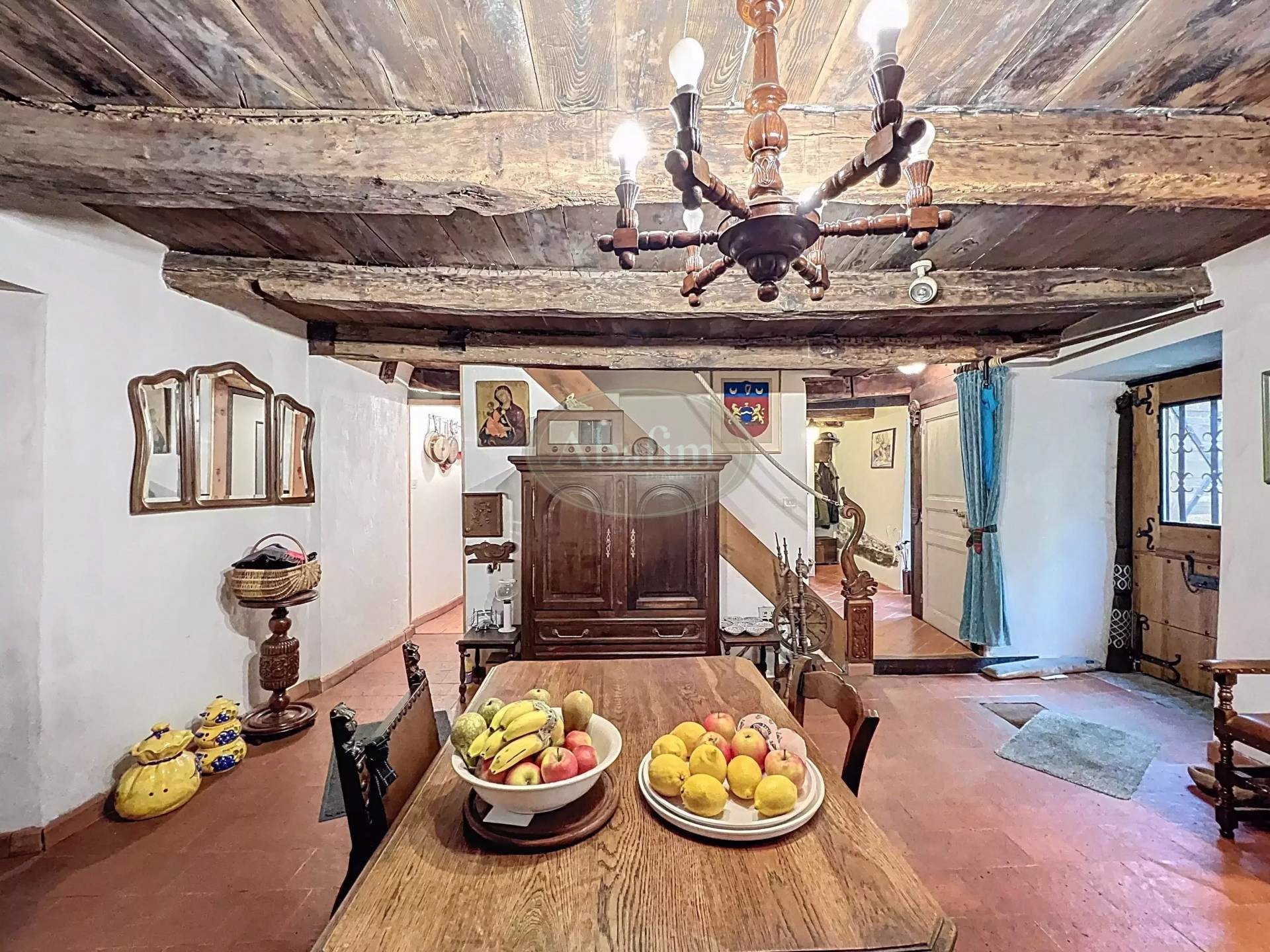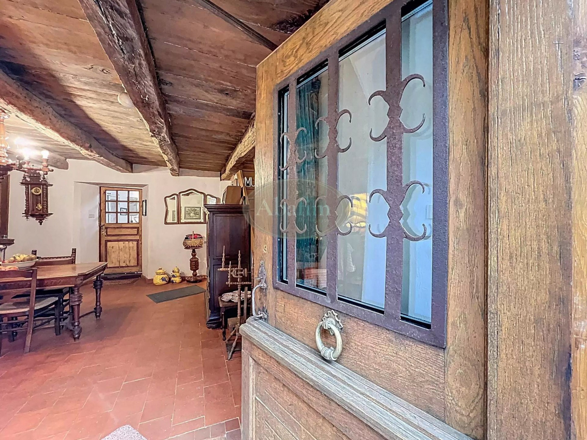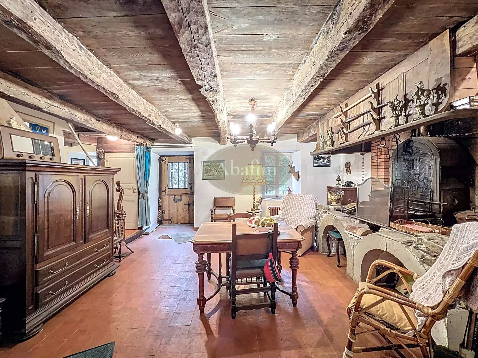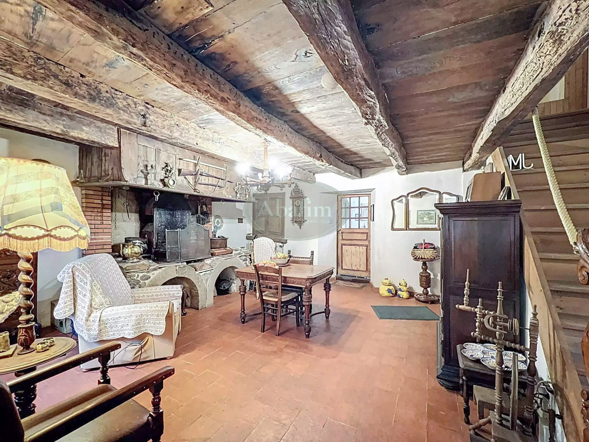 Il livello principale offre un ampio soggiorno con camino aperto e piastra originale decorata con lo stemma di Carlo V. Travi a vista, pavimenti originali in cotto e una luminosa cucina abitabile con zona pranzo e accesso diretto alla terrazza panoramica conferiscono carattere e autenticità all’ambiente. Sulla terrazza si trova una cucina estiva con barbecue e tradizionale forno a legna.