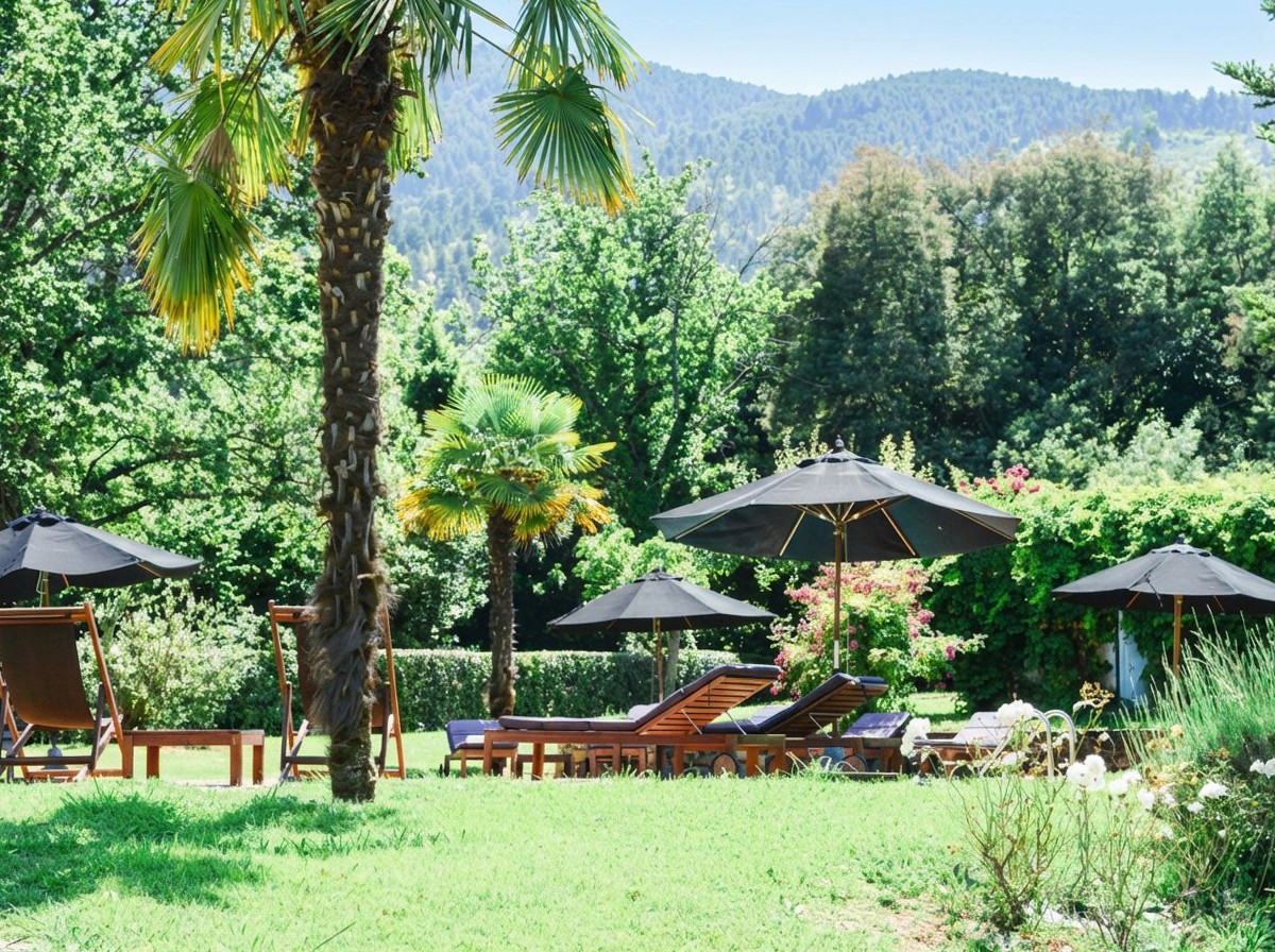 Gli spazi esterni e il terreno si estendono per circa cinque ettari. Oltre al giardino all’italiana e al parco, la proprietà dispone di una piscina con terrazza e doccia esterna, un cortile con fontana e area barbecue, un piccolo boschetto con limoneti e zone d’ombra per il relax, oltre a un orto con erbe aromatiche e prodotti biologici. La proprietà comprende anche uliveti e un vigneto privato.