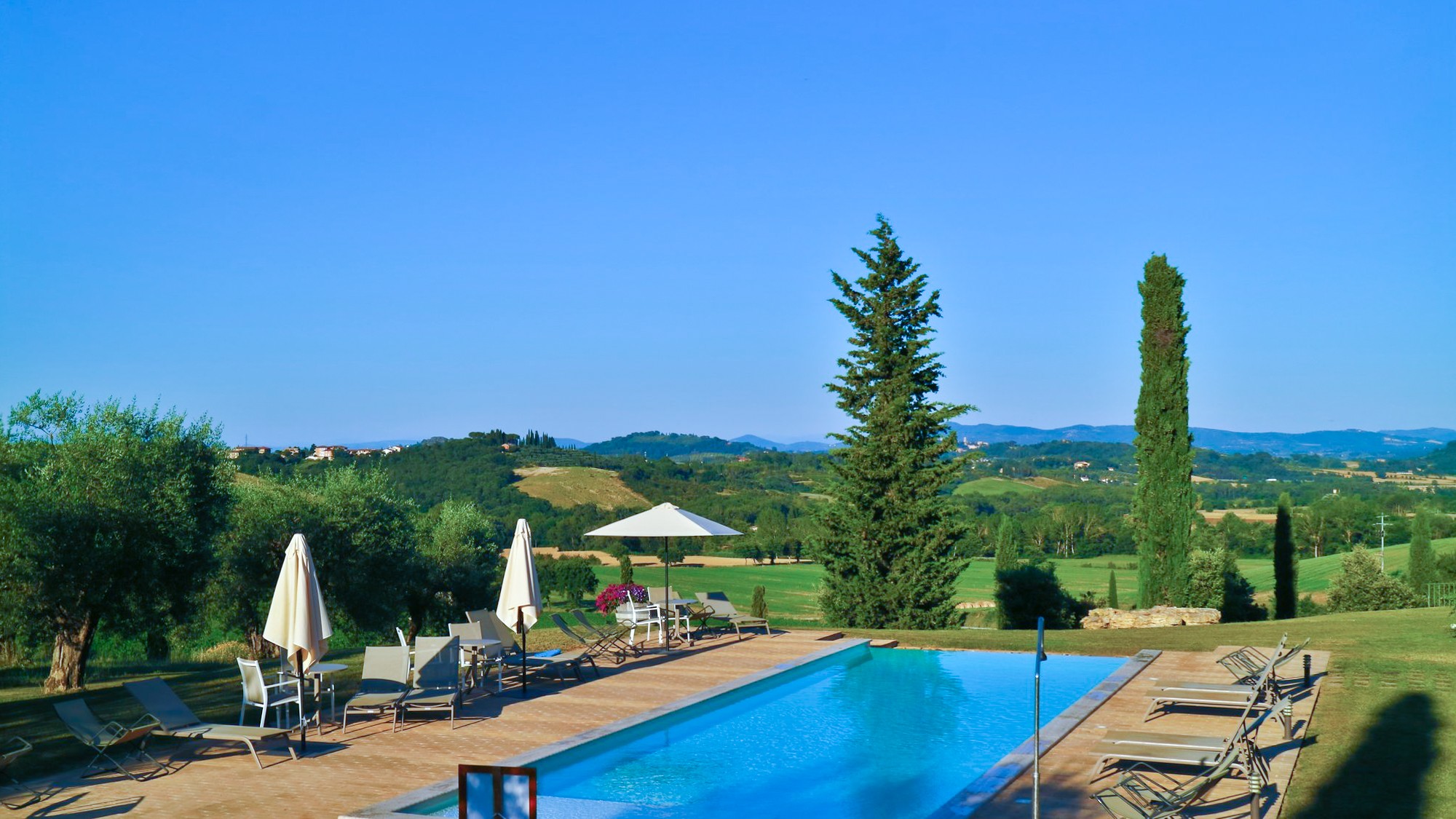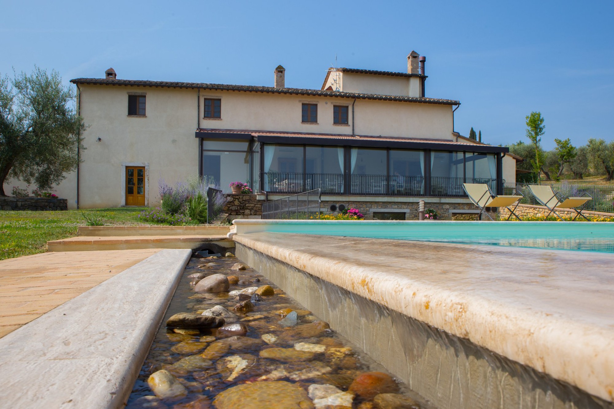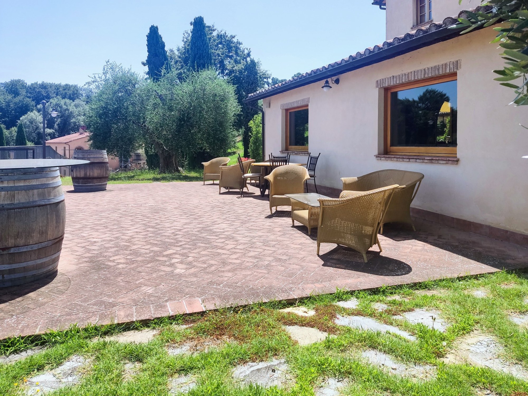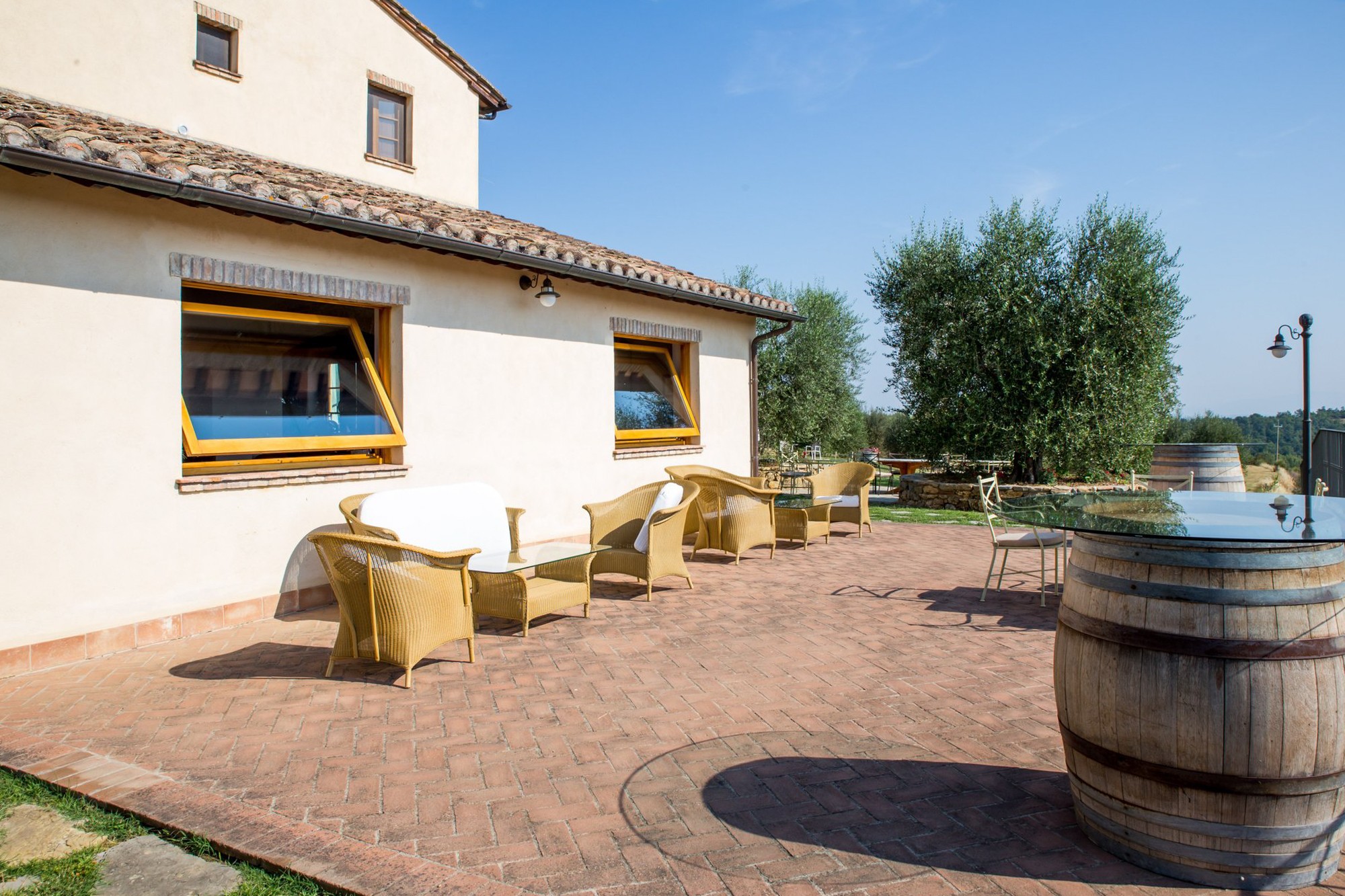 Situata al confine tra Toscana e Umbria, la tenuta consente di raggiungere Montalcino, Pienza, Montepulciano e Cortona tramite strade di campagna. Il Lago Trasimeno dista 30 km, mentre Firenze e Roma sono facilmente raggiungibili grazie alle infrastrutture di trasporto esistenti.