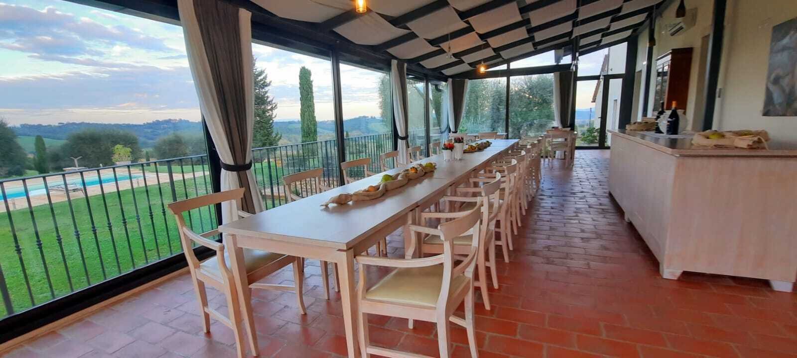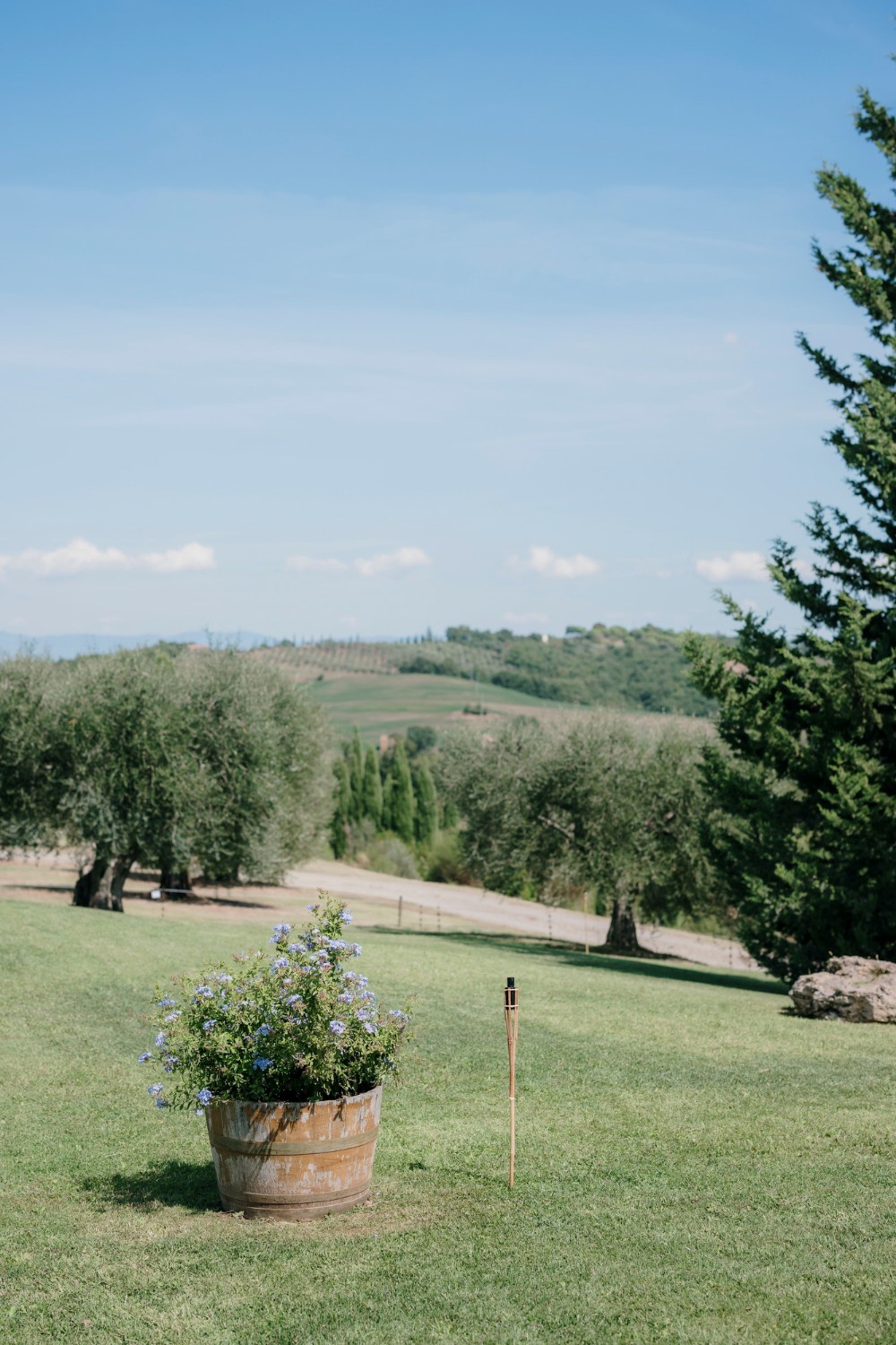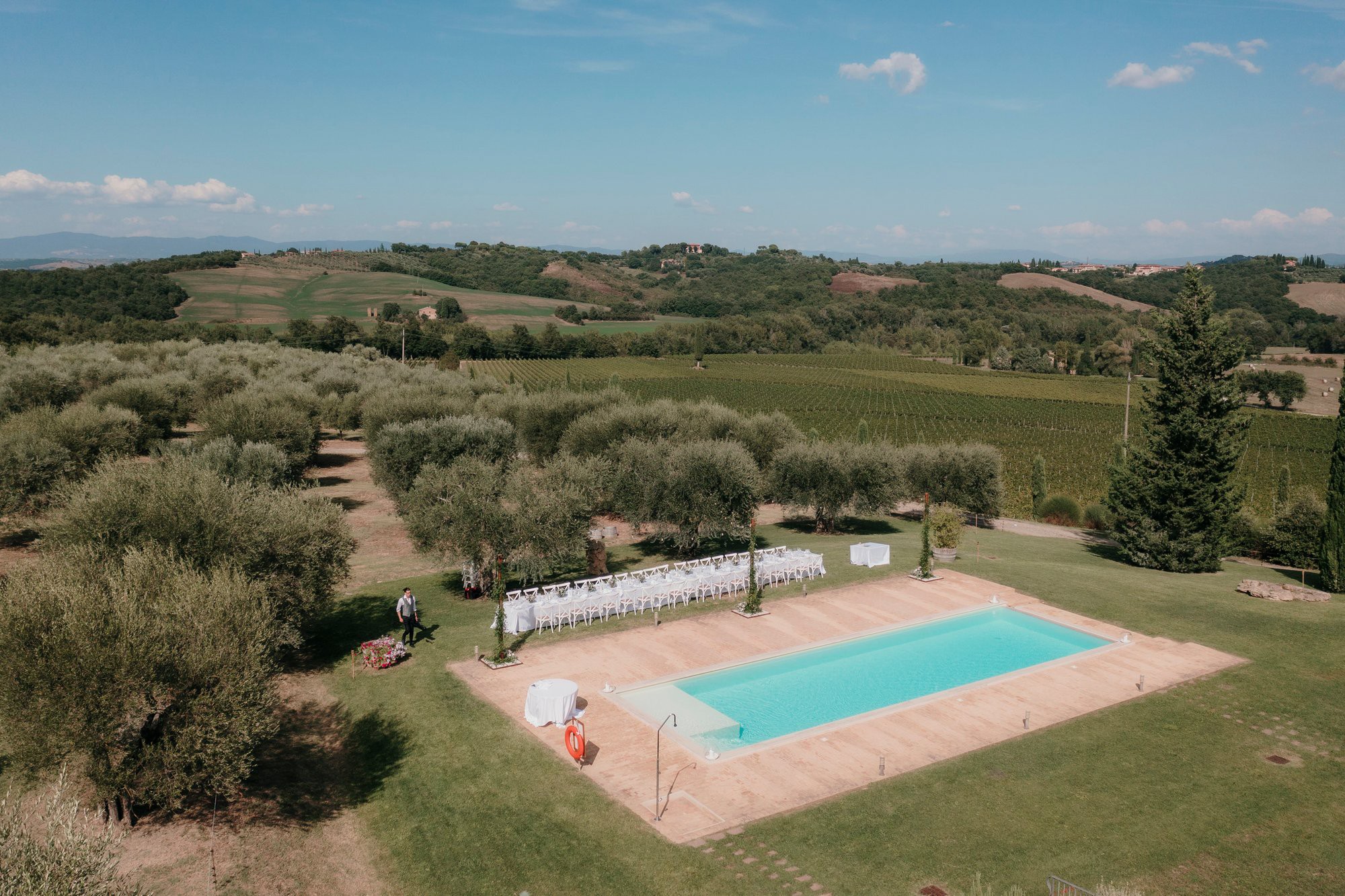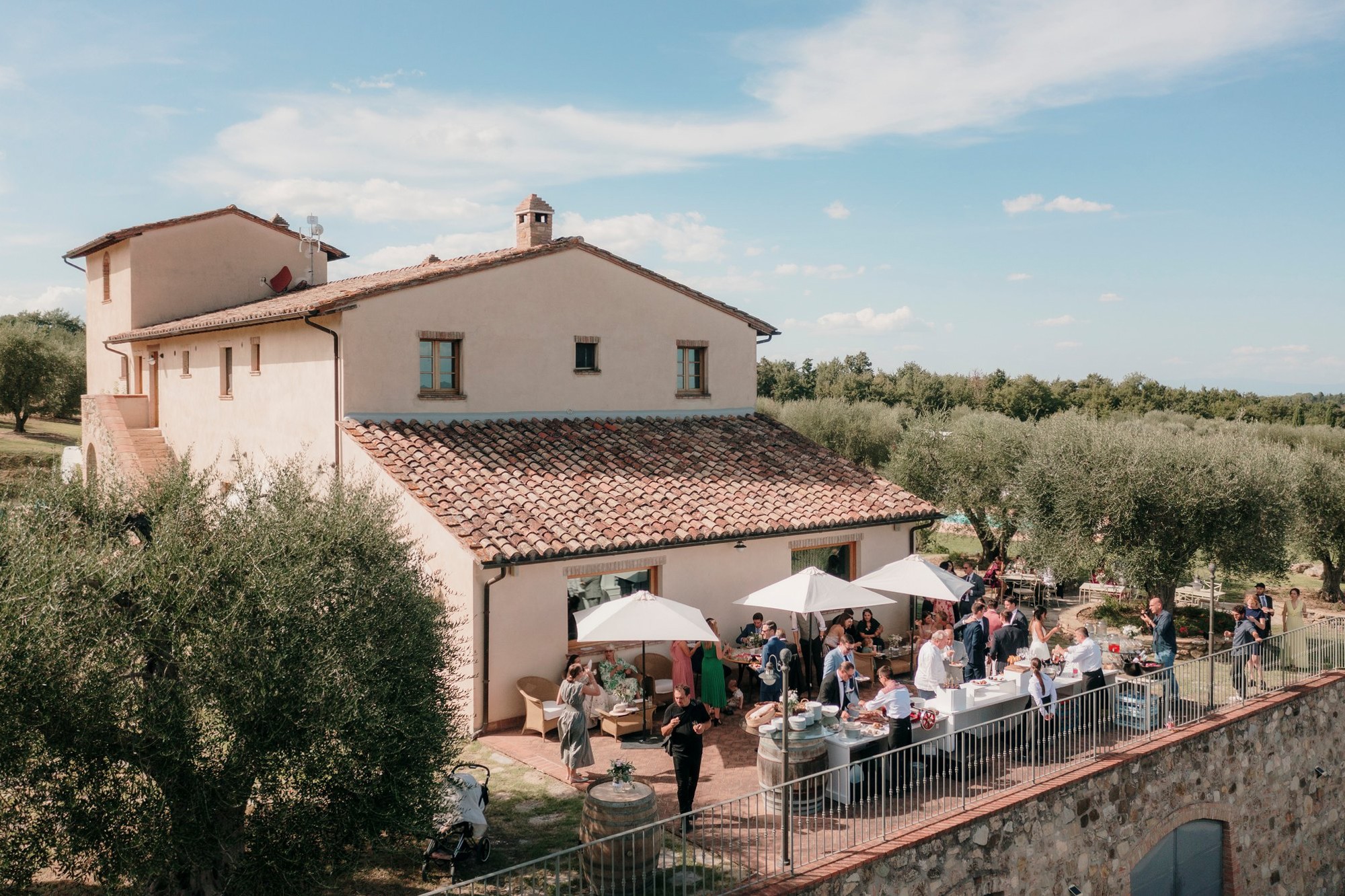Situata al confine tra Toscana e Umbria, la tenuta consente di raggiungere Montalcino, Pienza, Montepulciano e Cortona tramite strade di campagna. Il Lago Trasimeno dista 30 km, mentre Firenze e Roma sono facilmente raggiungibili grazie alle infrastrutture di trasporto esistenti.