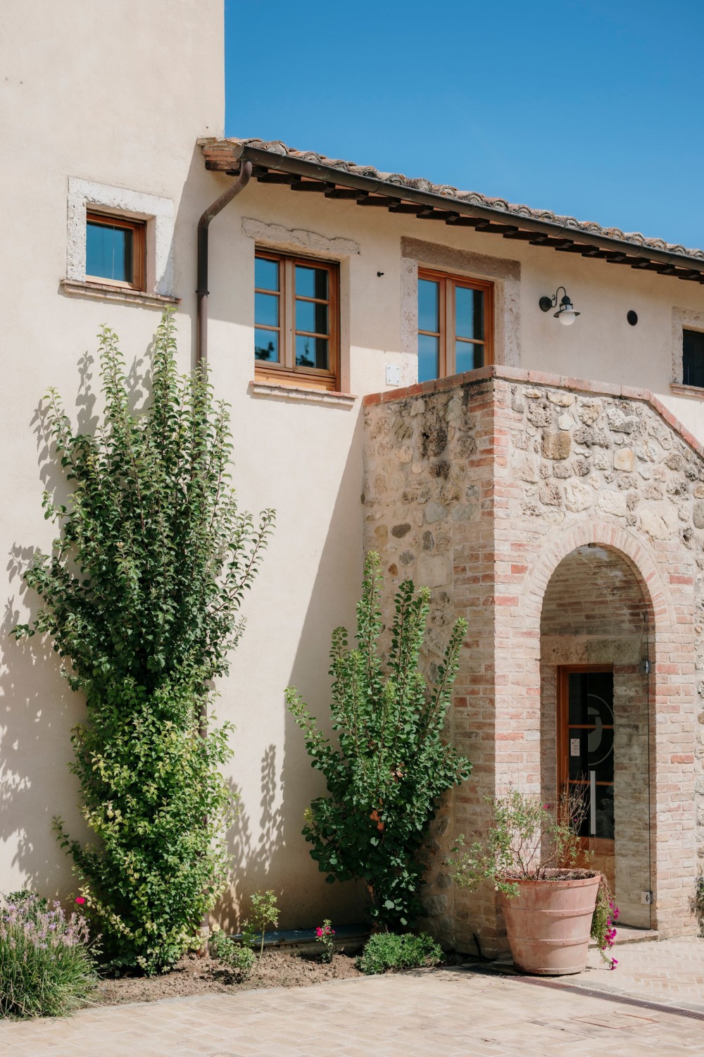 Originariamente realizzato come villaggio nel XVIII secolo, il complesso è stato trasformato in un hotel boutique. La villa offre 13 camere doppie con bagno, distribuite tra l’edificio principale (otto camere) e un annesso (cinque camere). Gli interni presentano pavimenti in cotto, travi in legno a vista e arredi storici.