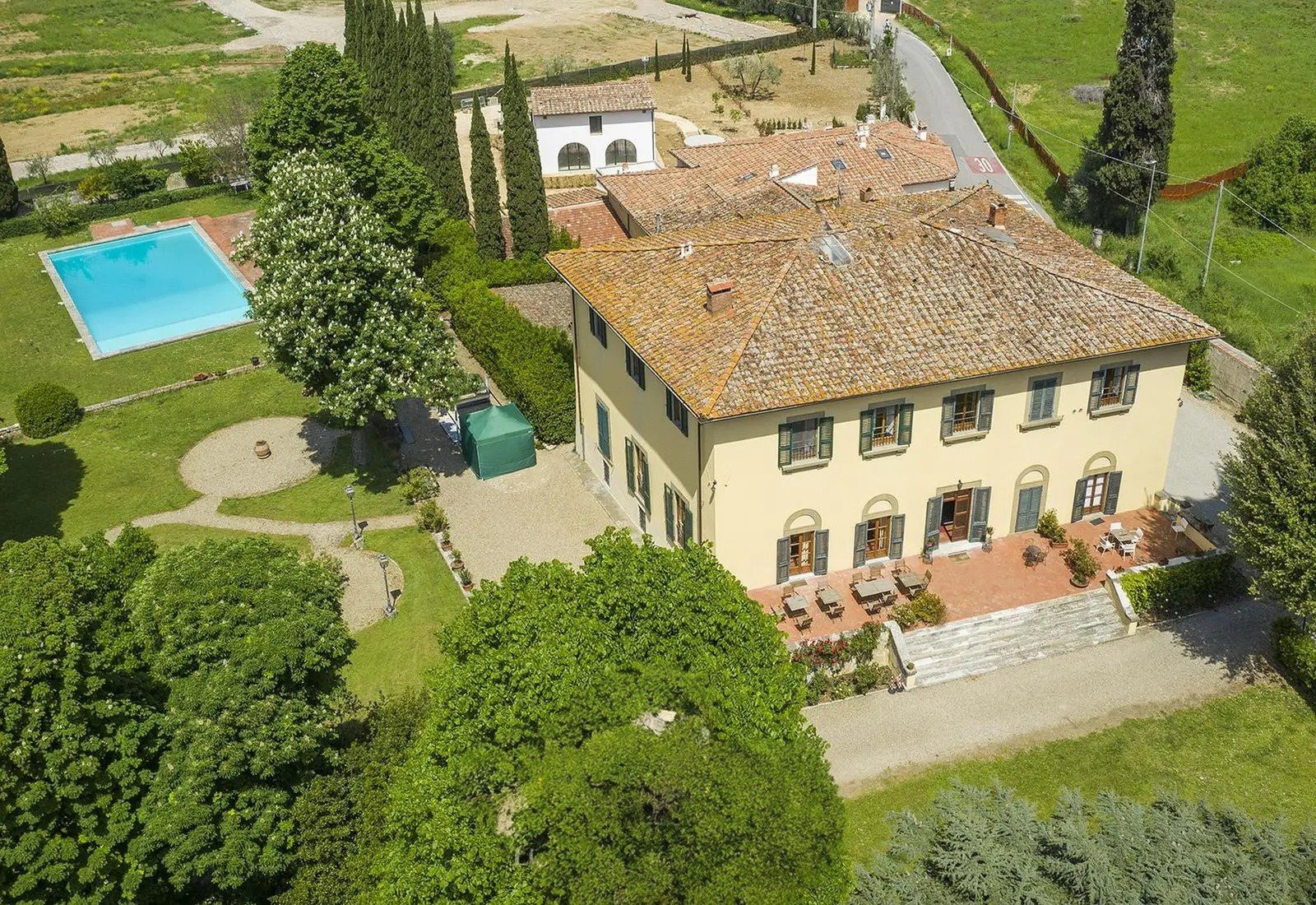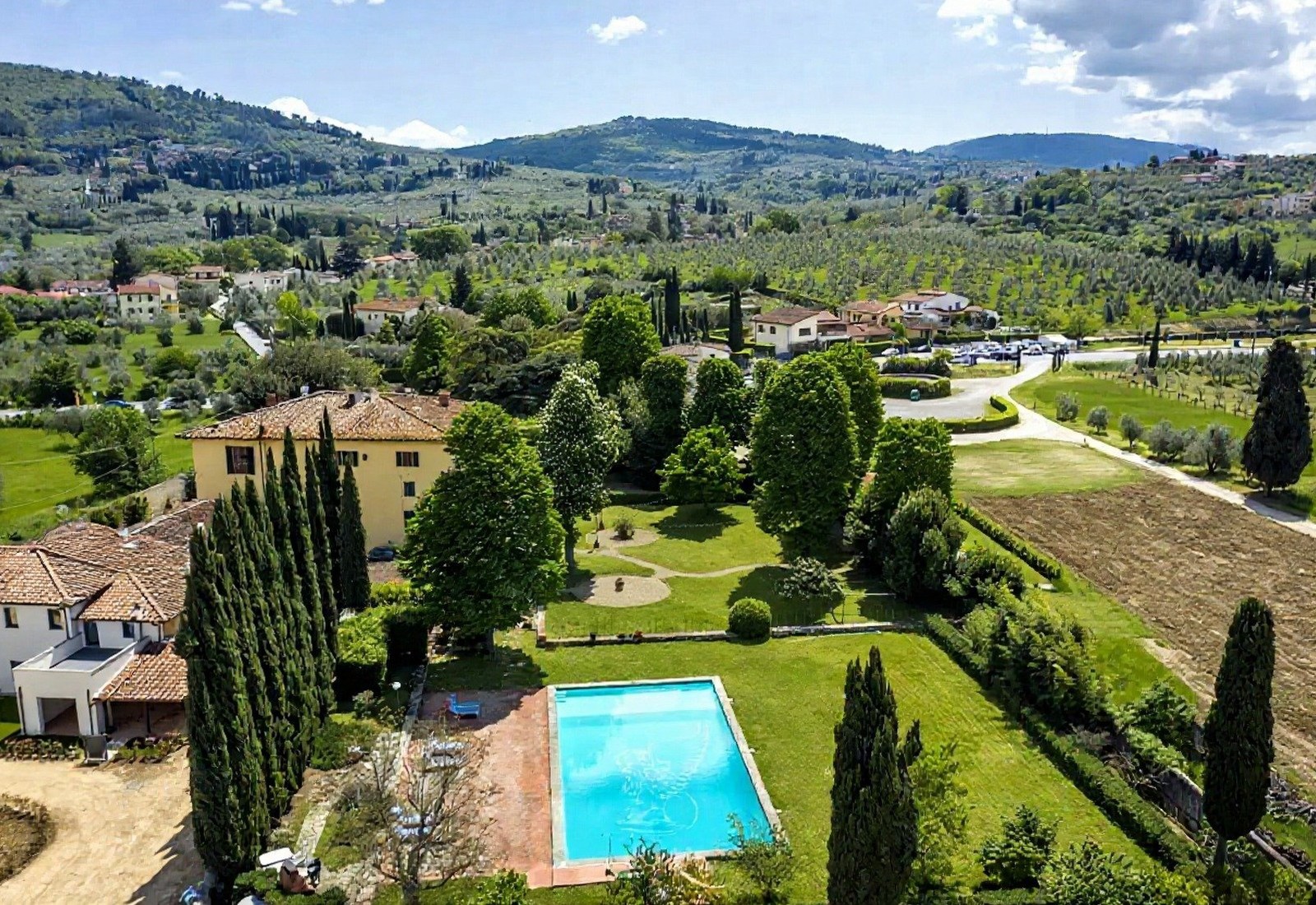 La proprietà Pelletti si trova su un’altura tra Firenze e la regione vinicola del Chianti, con vista sui tetti storici della città e sui vigneti circostanti. Siepi consolidate e alberi maturi garantiscono privacy, pur mantenendo il centro città a pochi minuti di distanza.