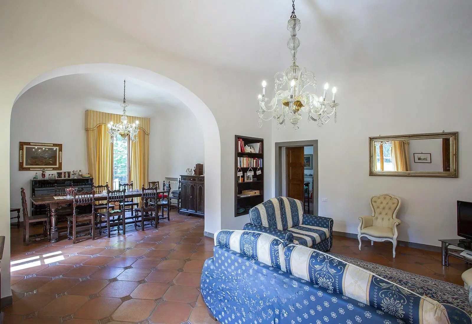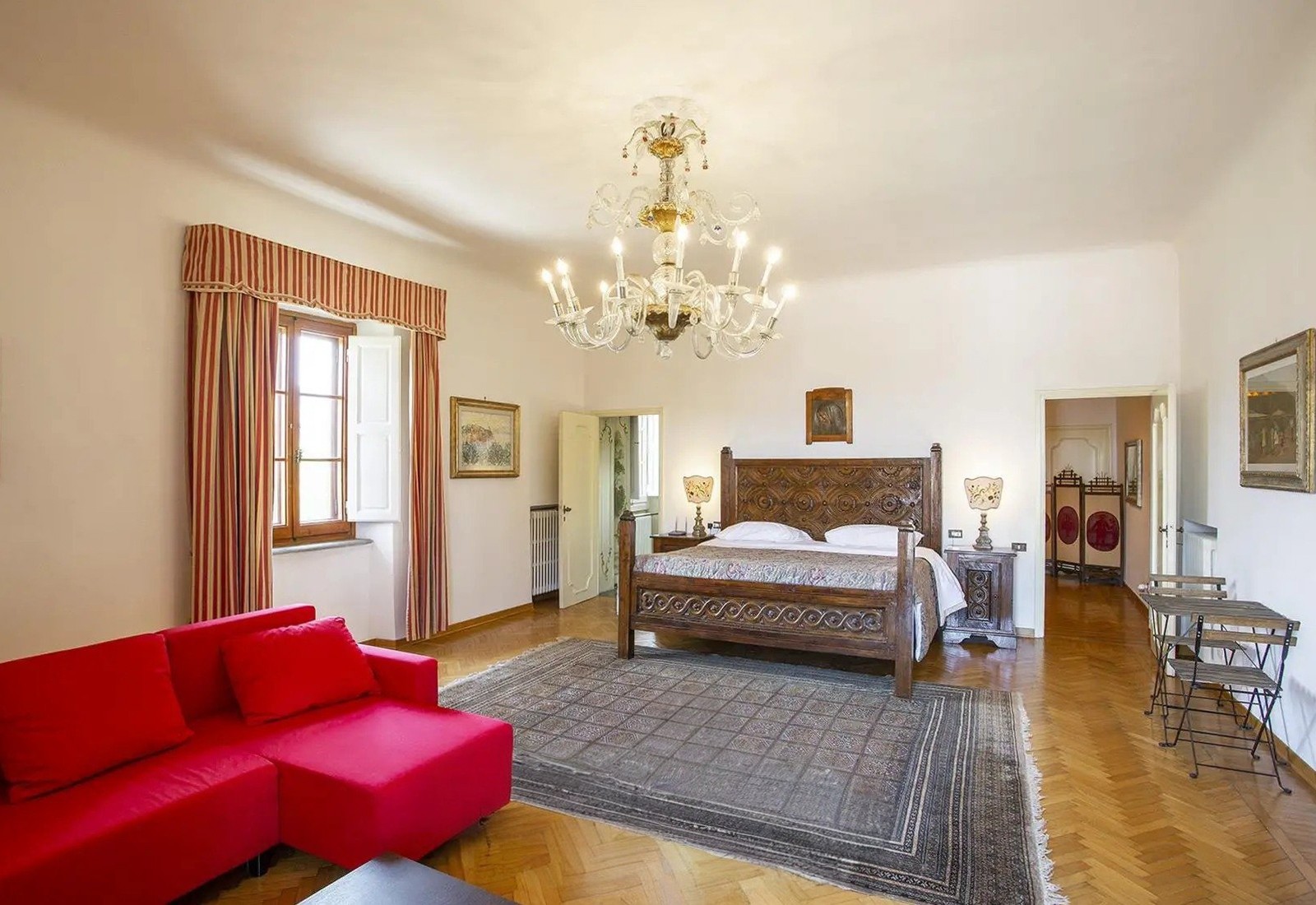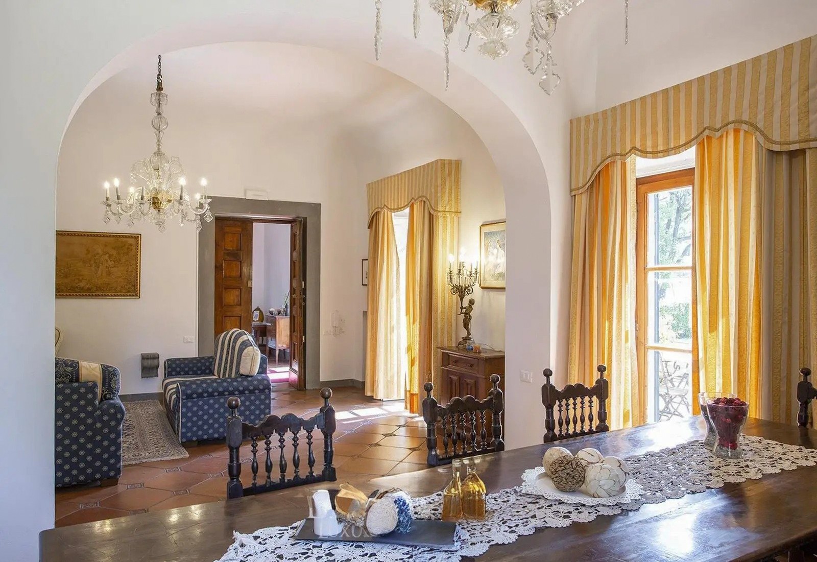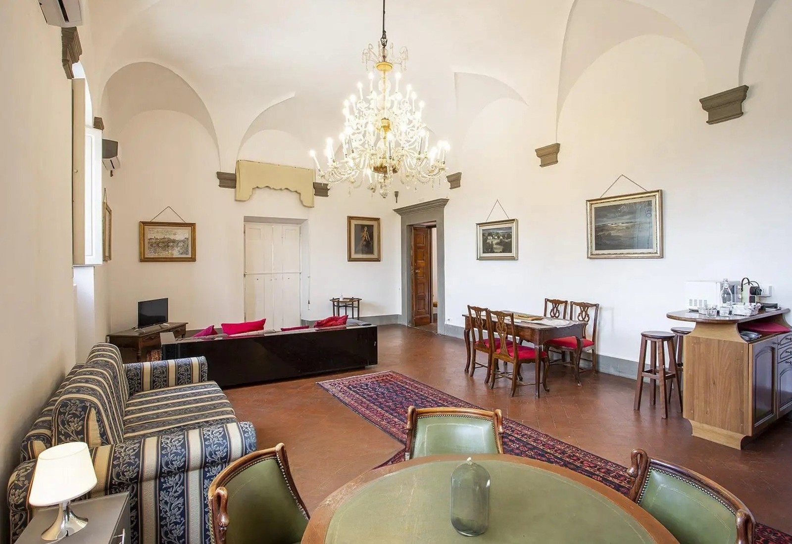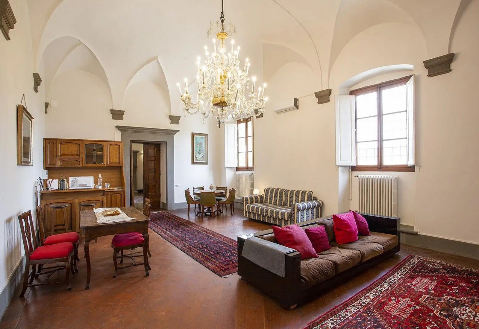 Gli interni coprono circa 980 metri quadrati. La suite principale misura 70 m² e comprende bagno, cabina armadio e affaccio su Firenze; la seconda camera è di 35 m² con vista sul parco; tre appartamenti indipendenti misurano rispettivamente 80, 150 e 220 m². L’unità più grande dispone di una terrazza privata con zona pranzo esterna coperta. Tutti gli appartamenti sono dotati di cucina, bagni e climatizzazione indipendente. La distribuzione degli spazi consente un utilizzo unificato o modulare per ospiti, senza interventi strutturali.