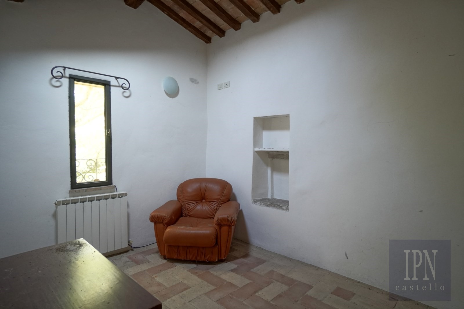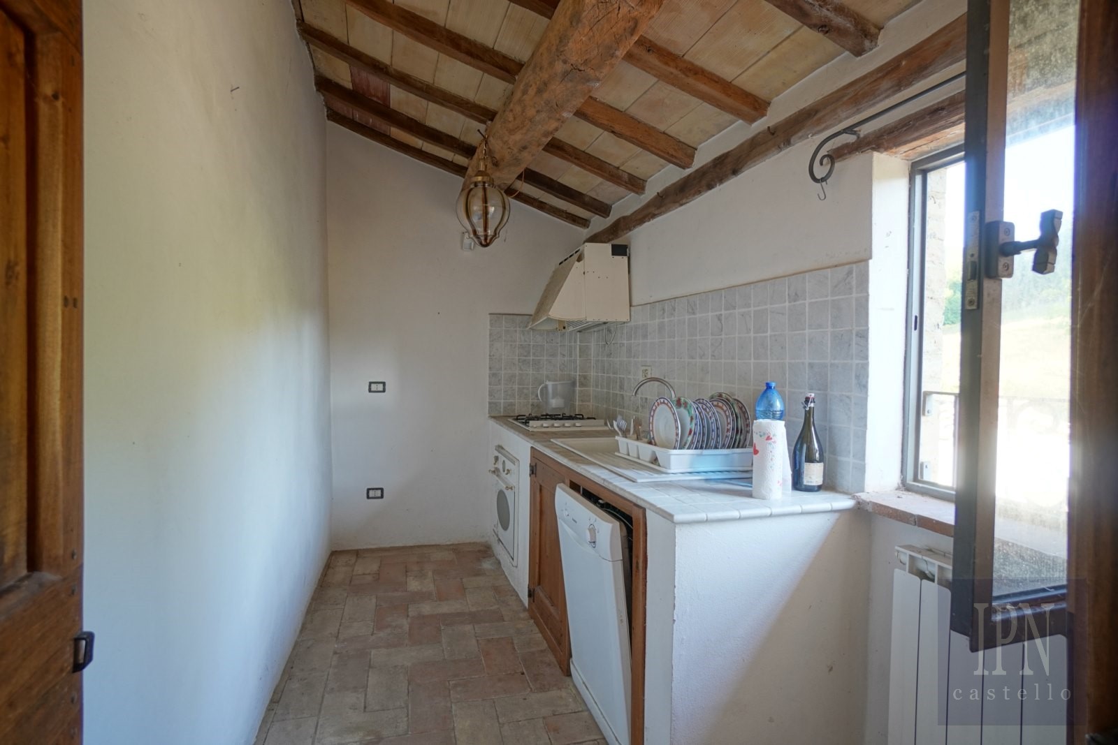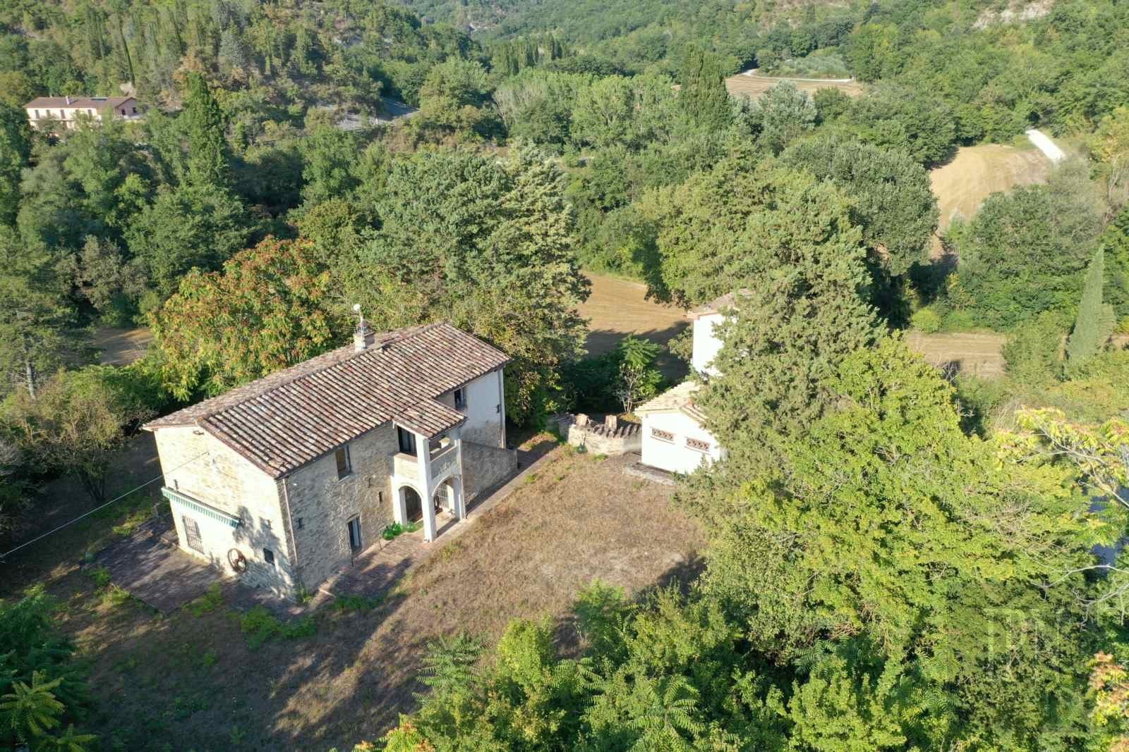 Casale dei primi anni del 1800, situato tra le verdi colline umbre a pochi chilometri da Montone. La proprietà comprende un piccolo fienile e un terreno di circa un ettaro, con ciliegi, glicini, antiche querce, noci, siepi di rosmarino, orchidee selvatiche e anche un terreno ricco di tartufi. Il parco, interamente recintato, si estende lungo un piccolo fiume ed è dotato di un cancello.