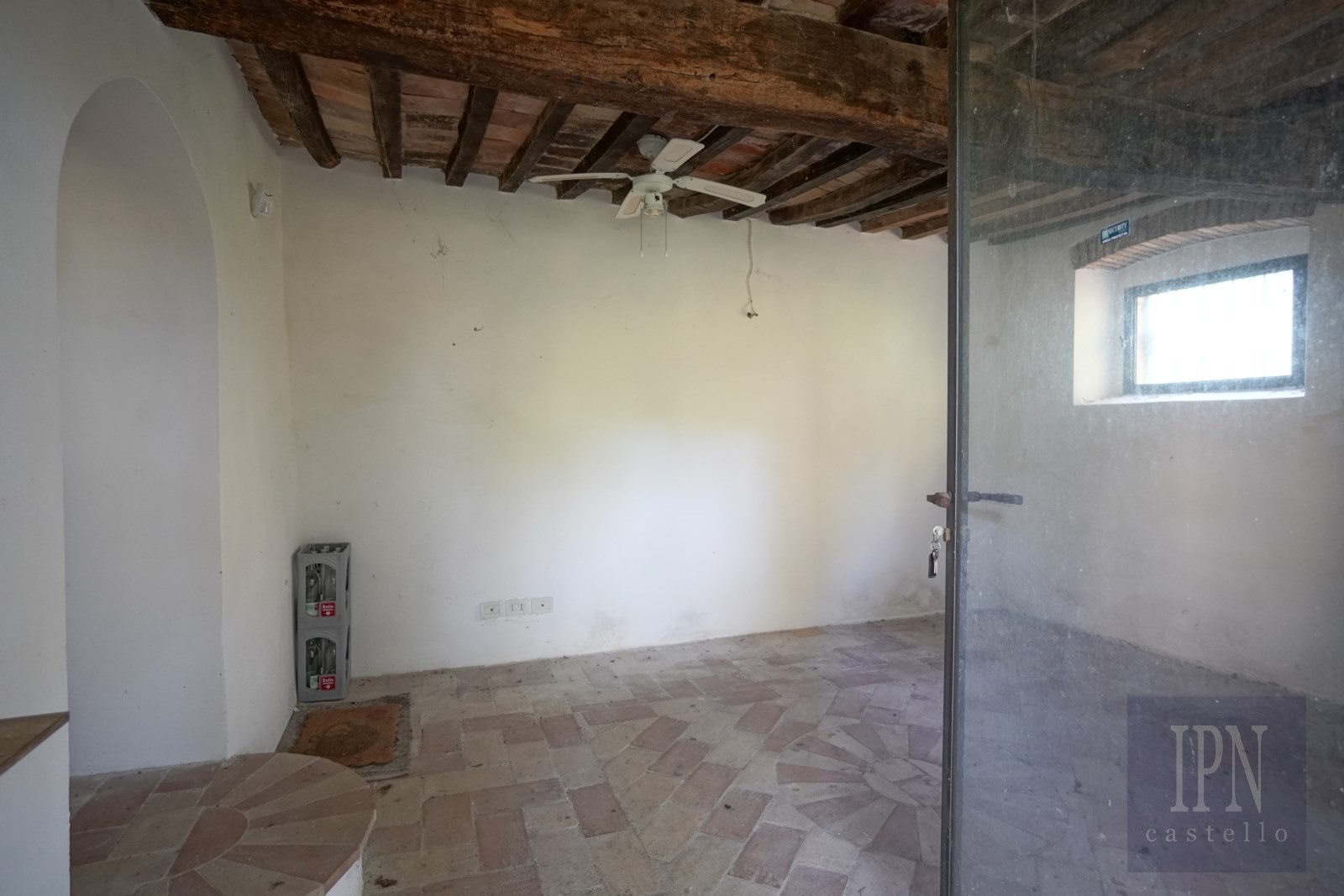 Circa 80 mq, accessibile da una scala esterna con loggia, con un ampio soggiorno di 35 mq con camino antico, tre camere da letto, un bagno e una cucina.